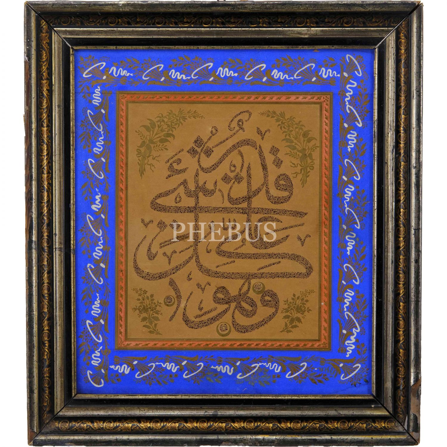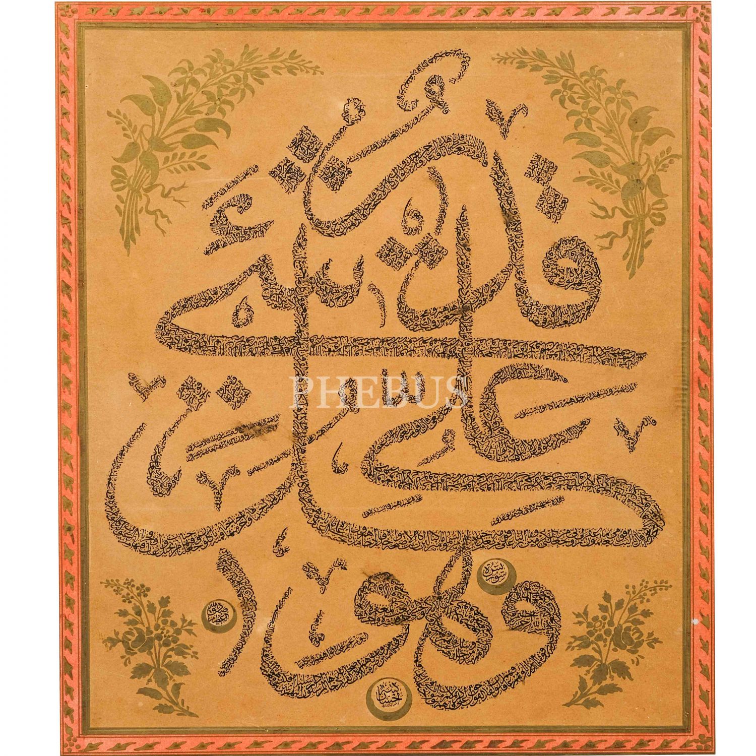 İhsan (Efendi) ketebeli sülüs ve gubari levha, dönemine ait tezhipli, 1311 tarihli, yazı ölçü: 26x33 cm, çerçeve içi ölçü: 42x49 cm...