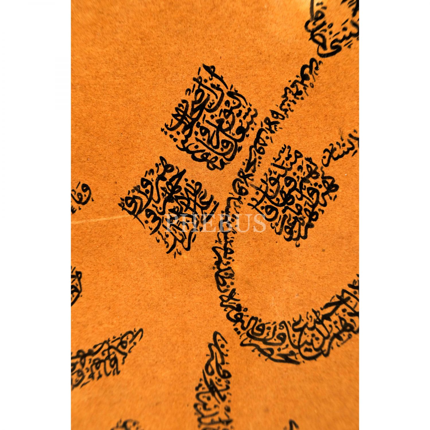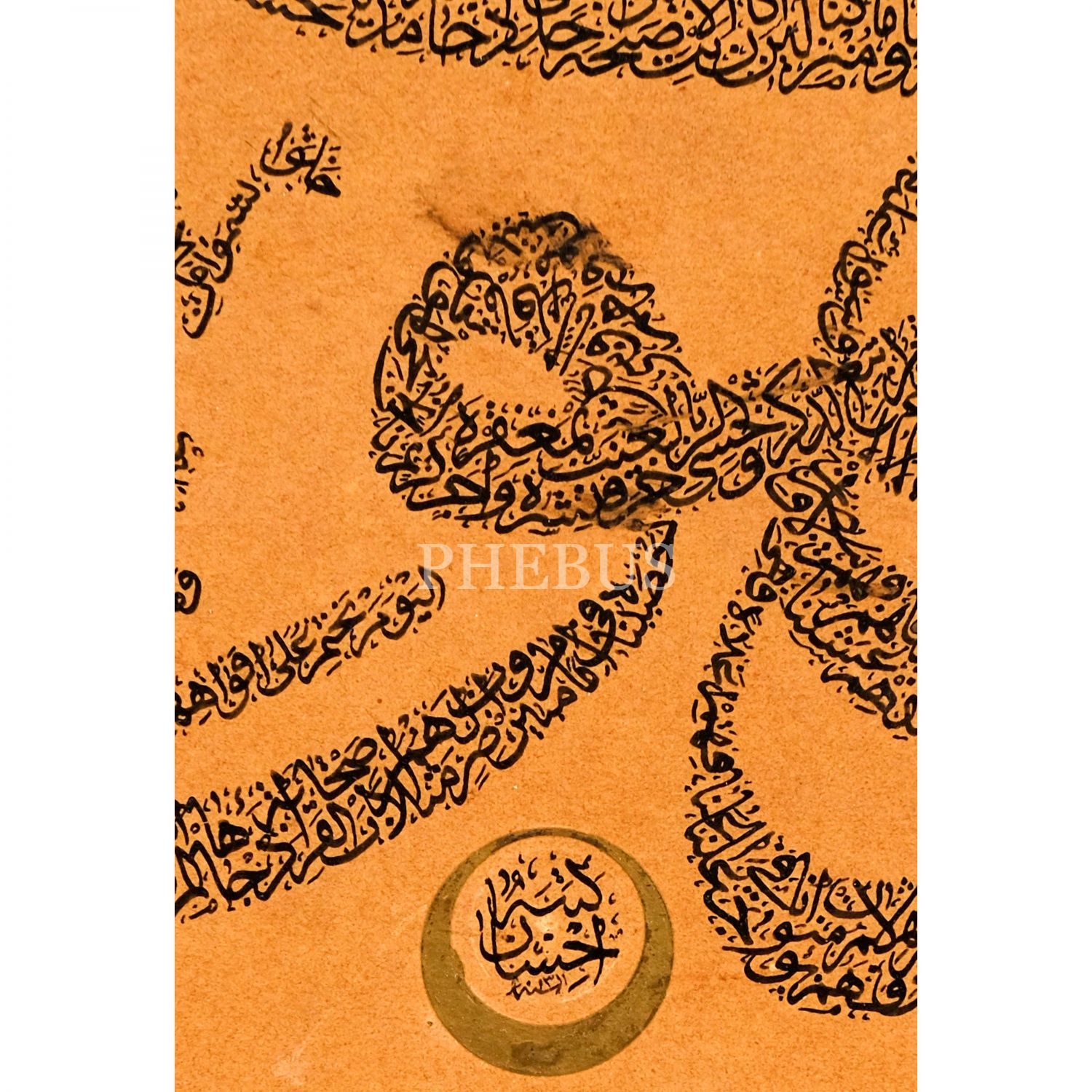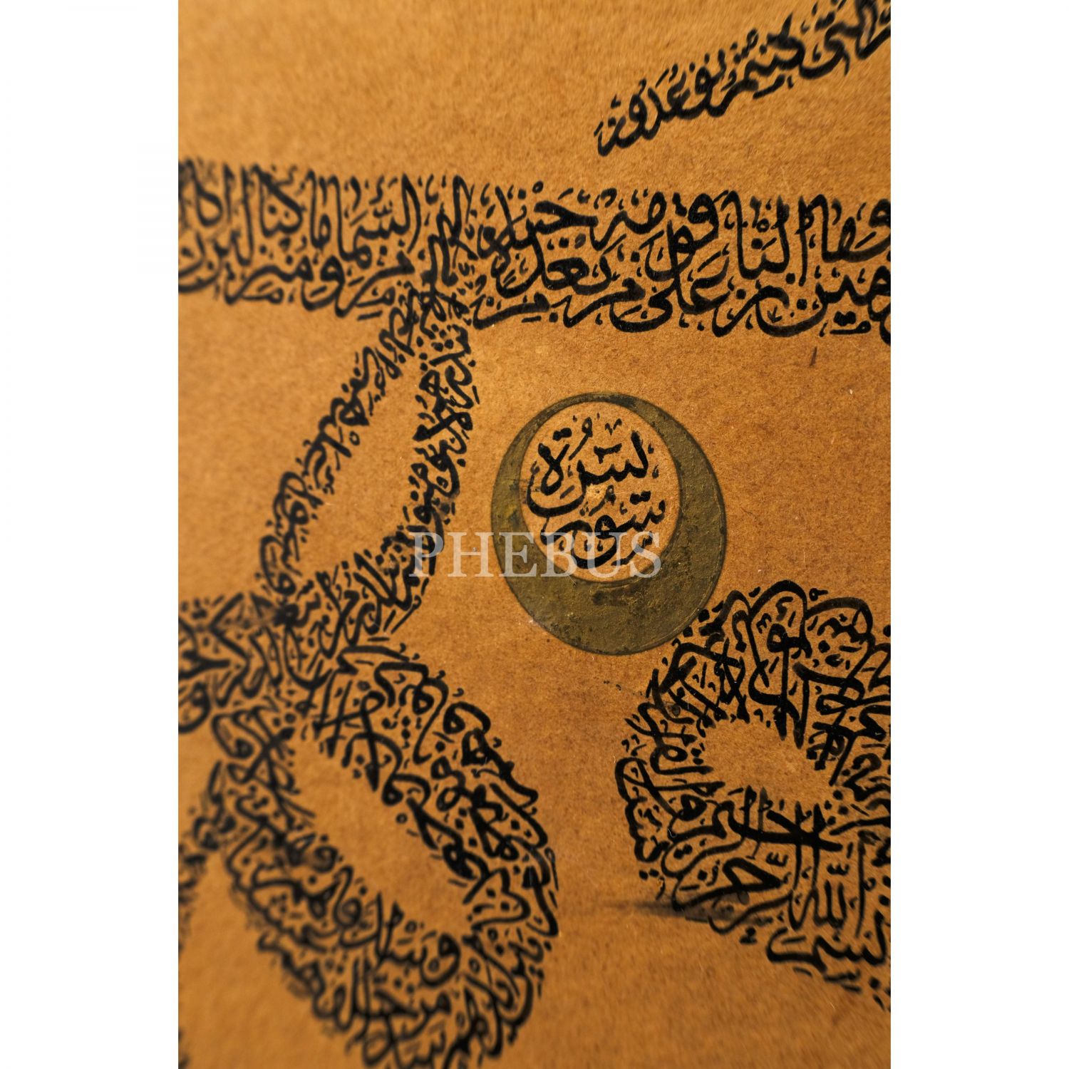 Sülüs istifin içinde gubârî yazı ile Yasin suresi yazılıdır.