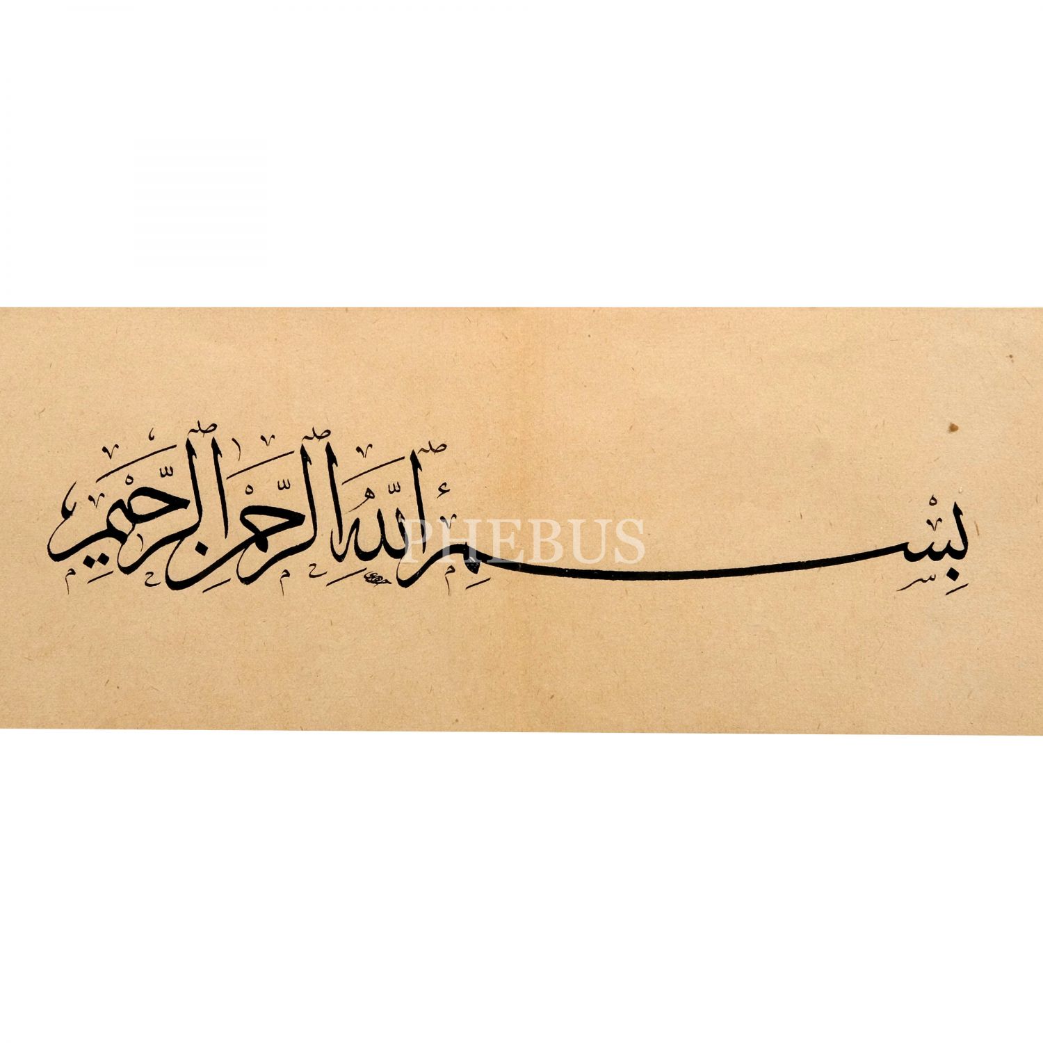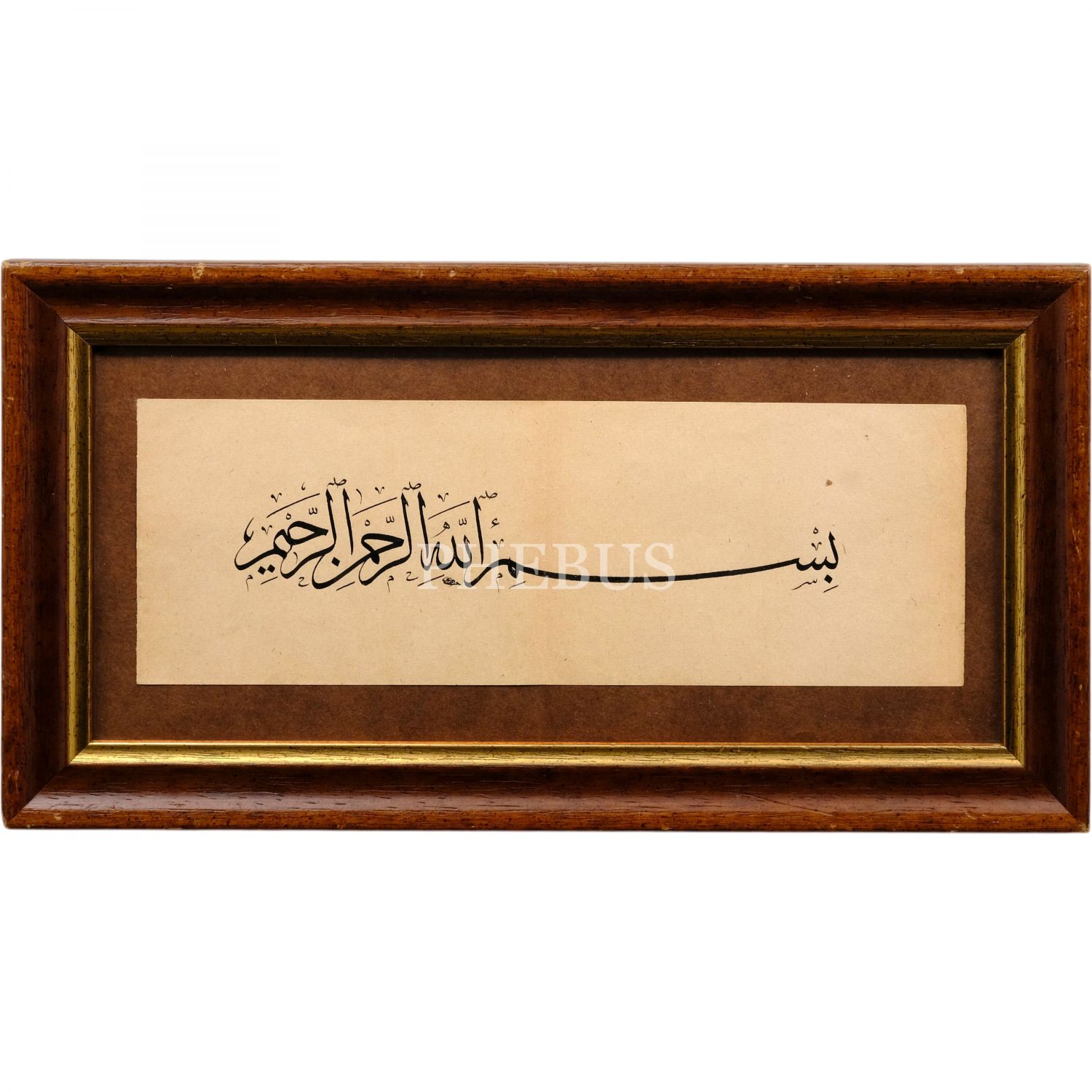 İsmail Hakkı Altunbezer ketebeli sülüs oklu besmele, yazı ölçü: 26x9 cm