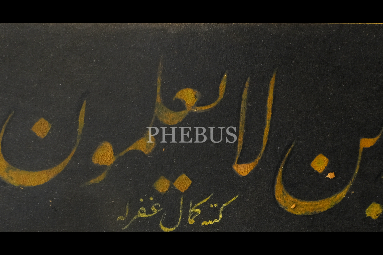 Kemal (Batanay) ketebeli celi talik âyet, 1362 tarihli, yazı ölçü: 36x5 cm, çerçeve içi ölçü: 46x15 cm...