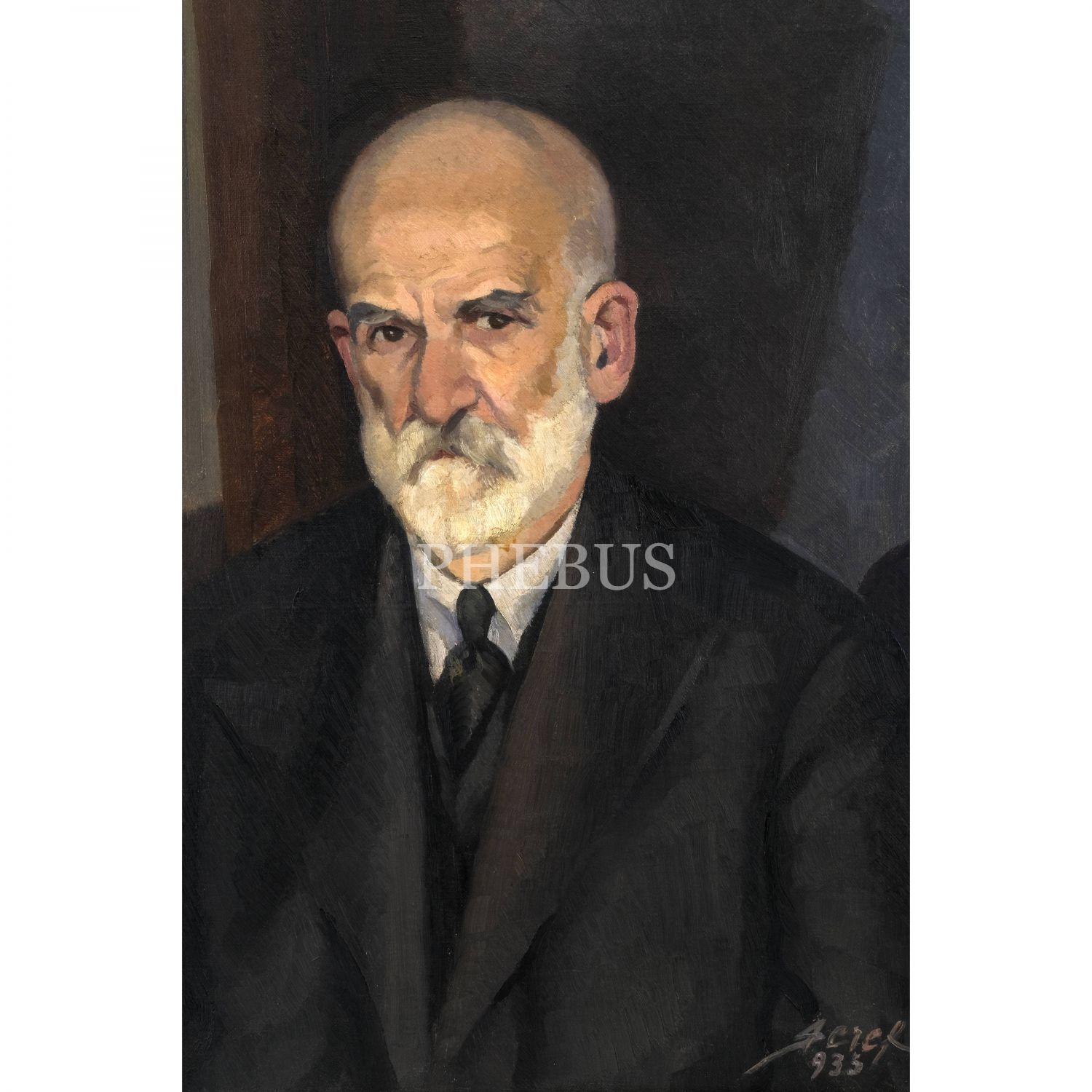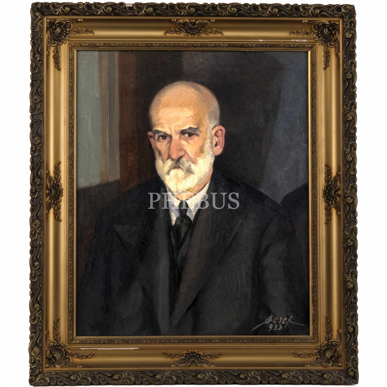 Şeref Akdik imzalı Hacı Kâmil Akdik portresi, tuval üzerine yağlı boya, 1935 tarihli, çerçeve içi ölçü: 58x71 cm, çerçeve kalınlığı: 11 cm...
