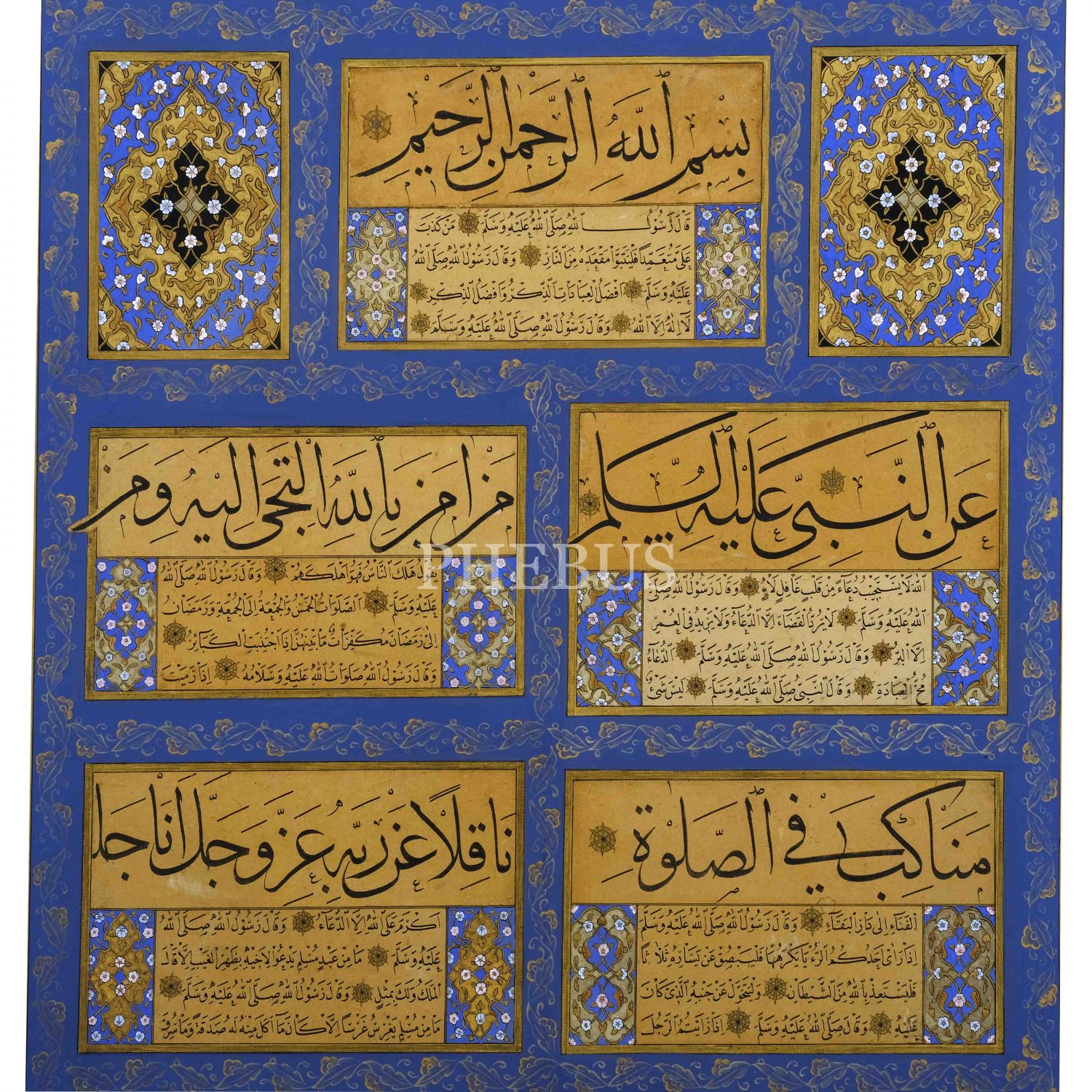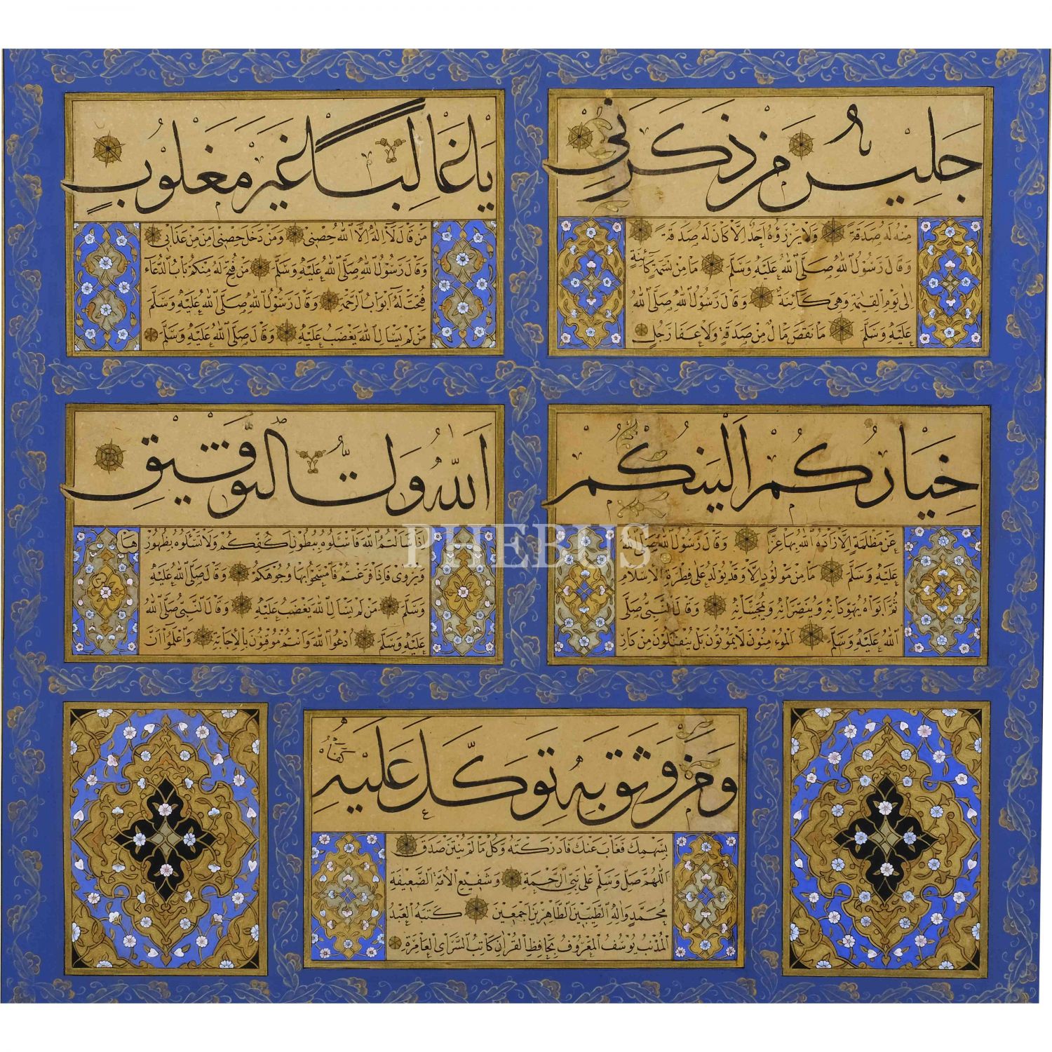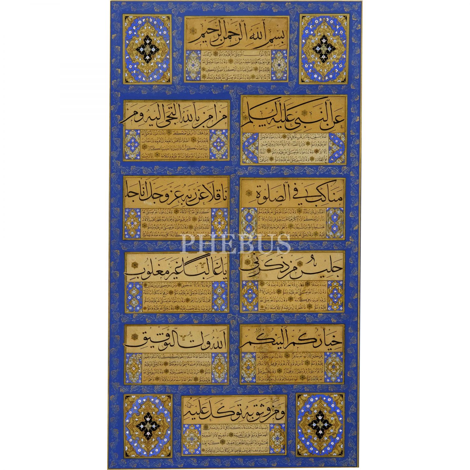 Hâfız Yusuf ketebeli 10 adet koltuklu kıtadan mürekkep levha, yazı ölçü: 37x71 cm, çerçeve içi ölçü: 56x87 cm...