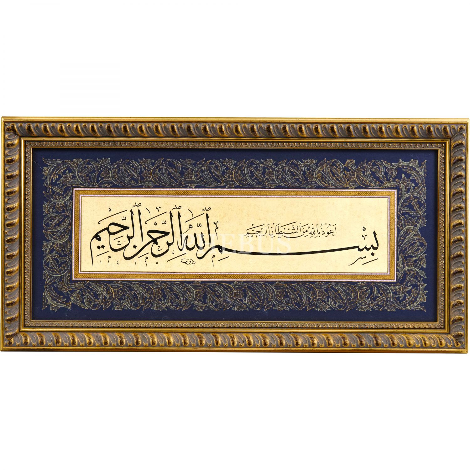 Davut (Bektaş) ketebeli sülüs oklu besmele, 1415 tarihli, altın tezhipli, yazı ölçü: 52x13 cm, çerçeve içi ölçü: 69x29 cm...