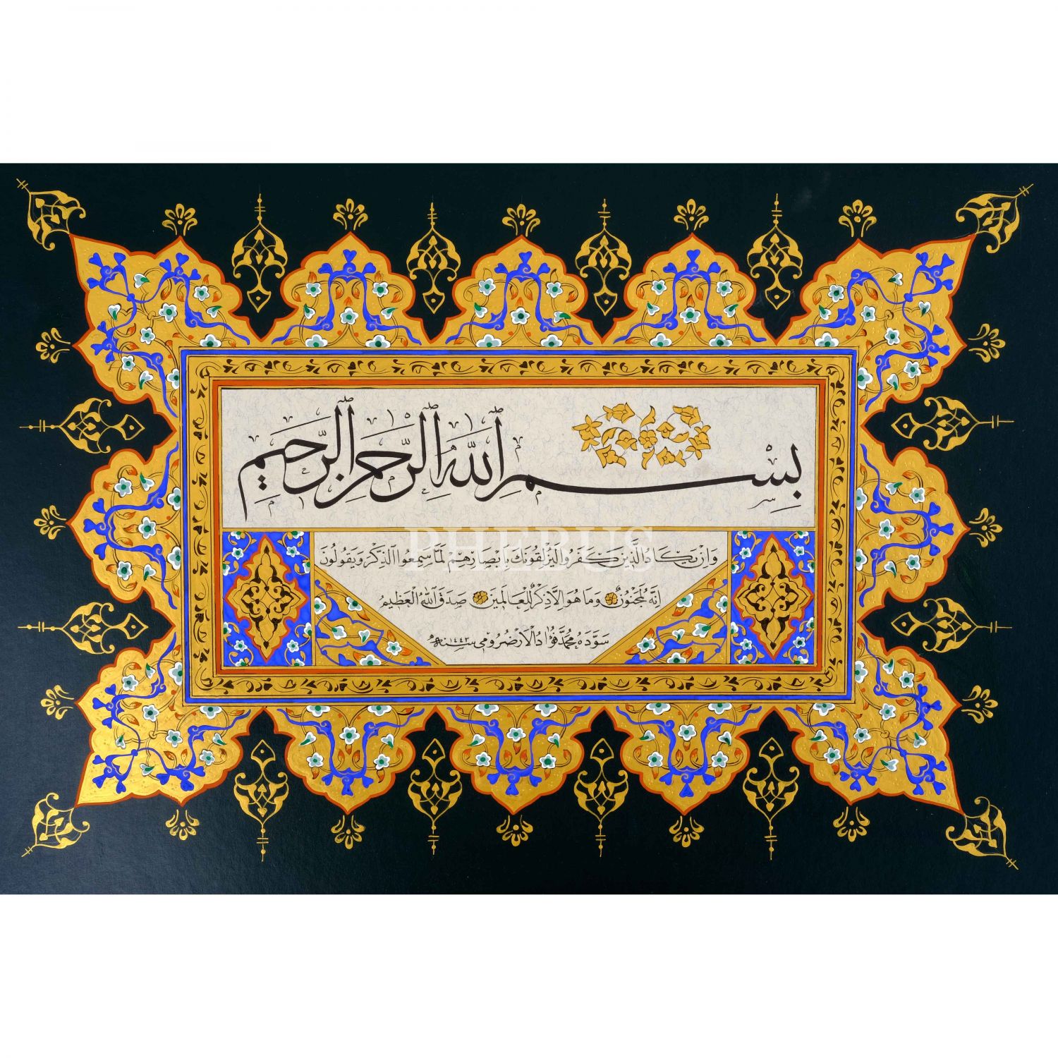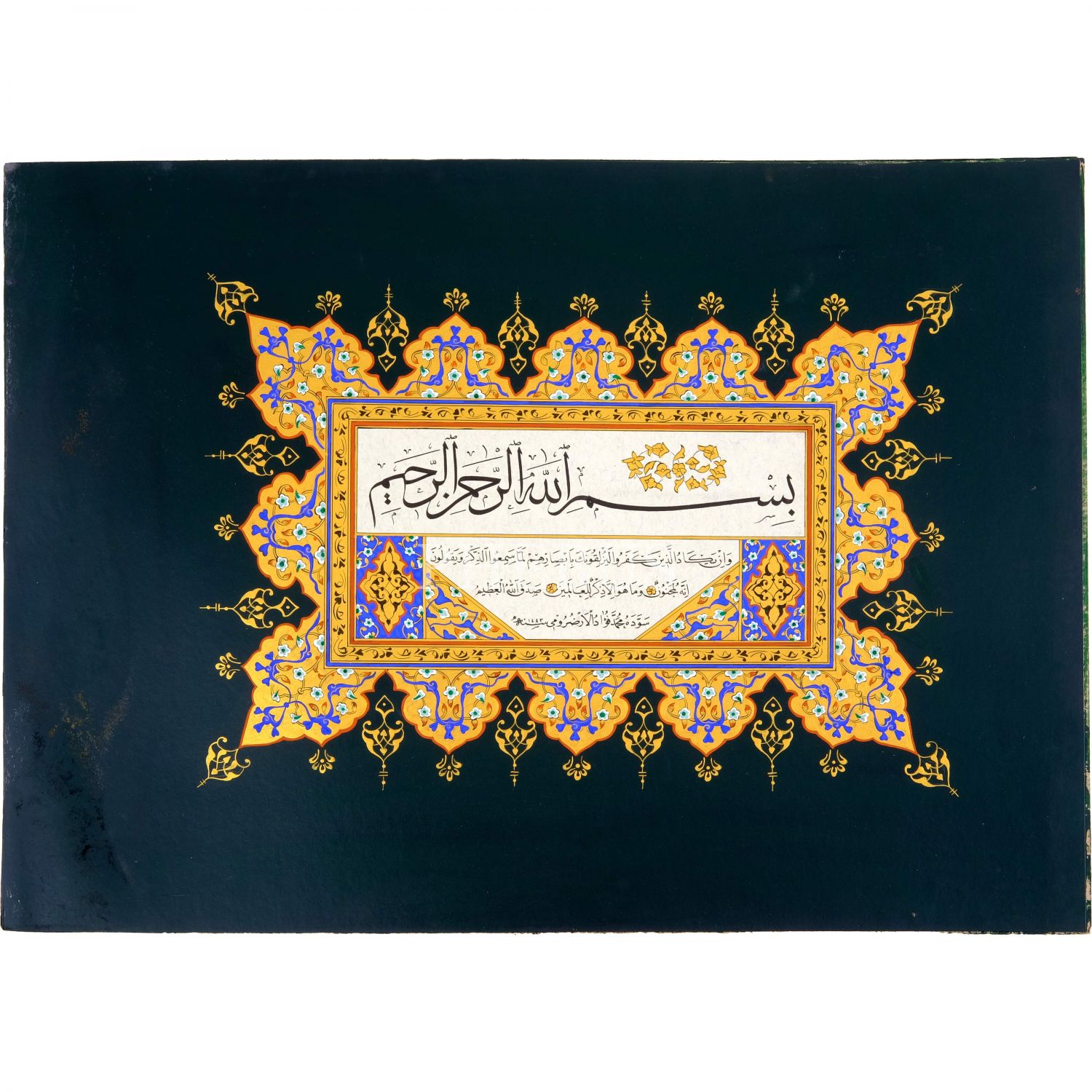 Mehmed Fuad Erzurûmî (Başar) ketebeli sülüs-nesih koltuklu kıta, 1443 tarihli, yazı ölçü: 29x14 cm, çerçeve içi ölçü: 53x39 cm...