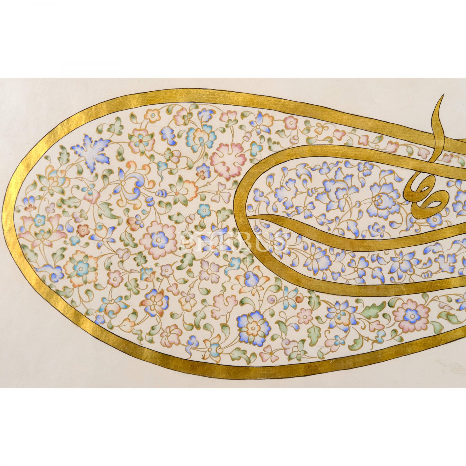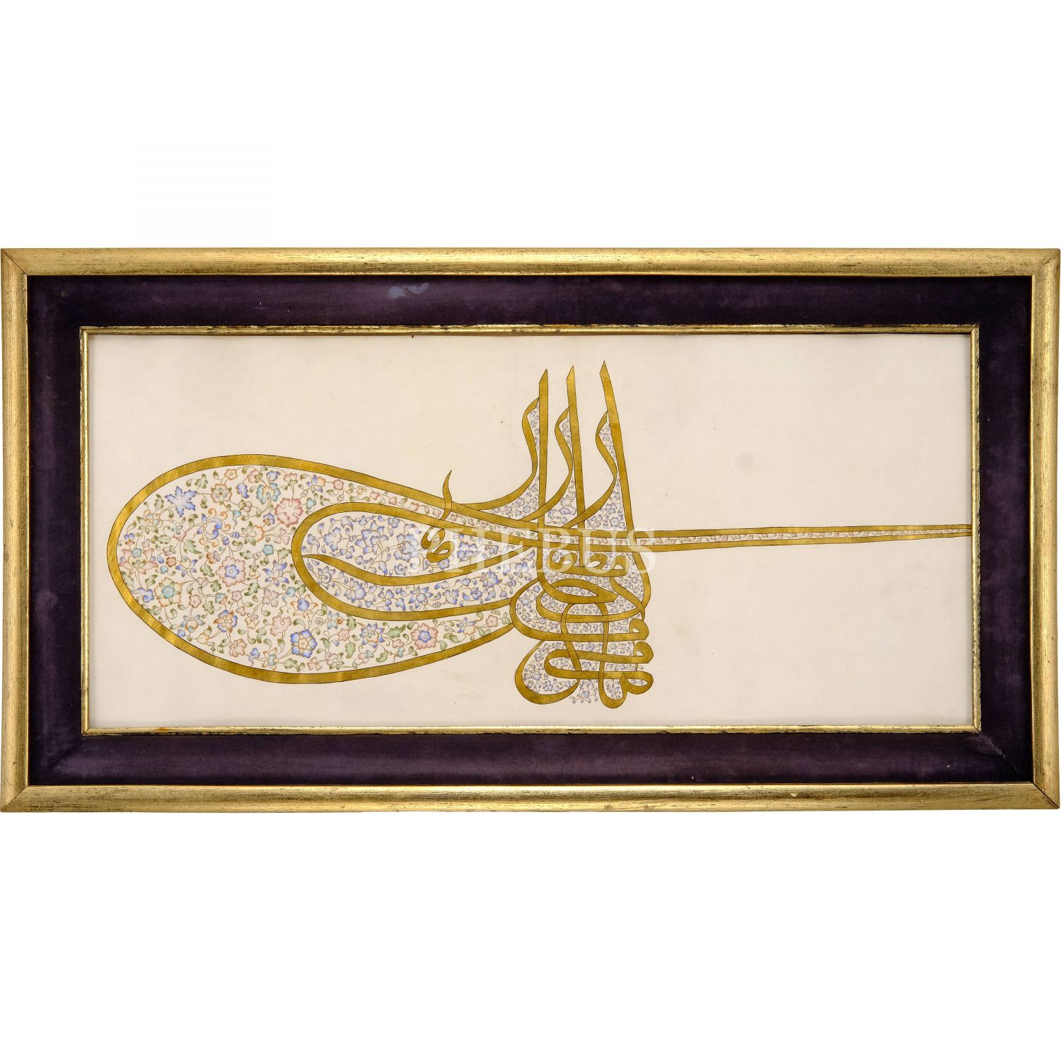 Semih İrteş imzalı Fatih Sultan Mehmed tuğrası, çerçeve içi ölçü: 74x33 cm...