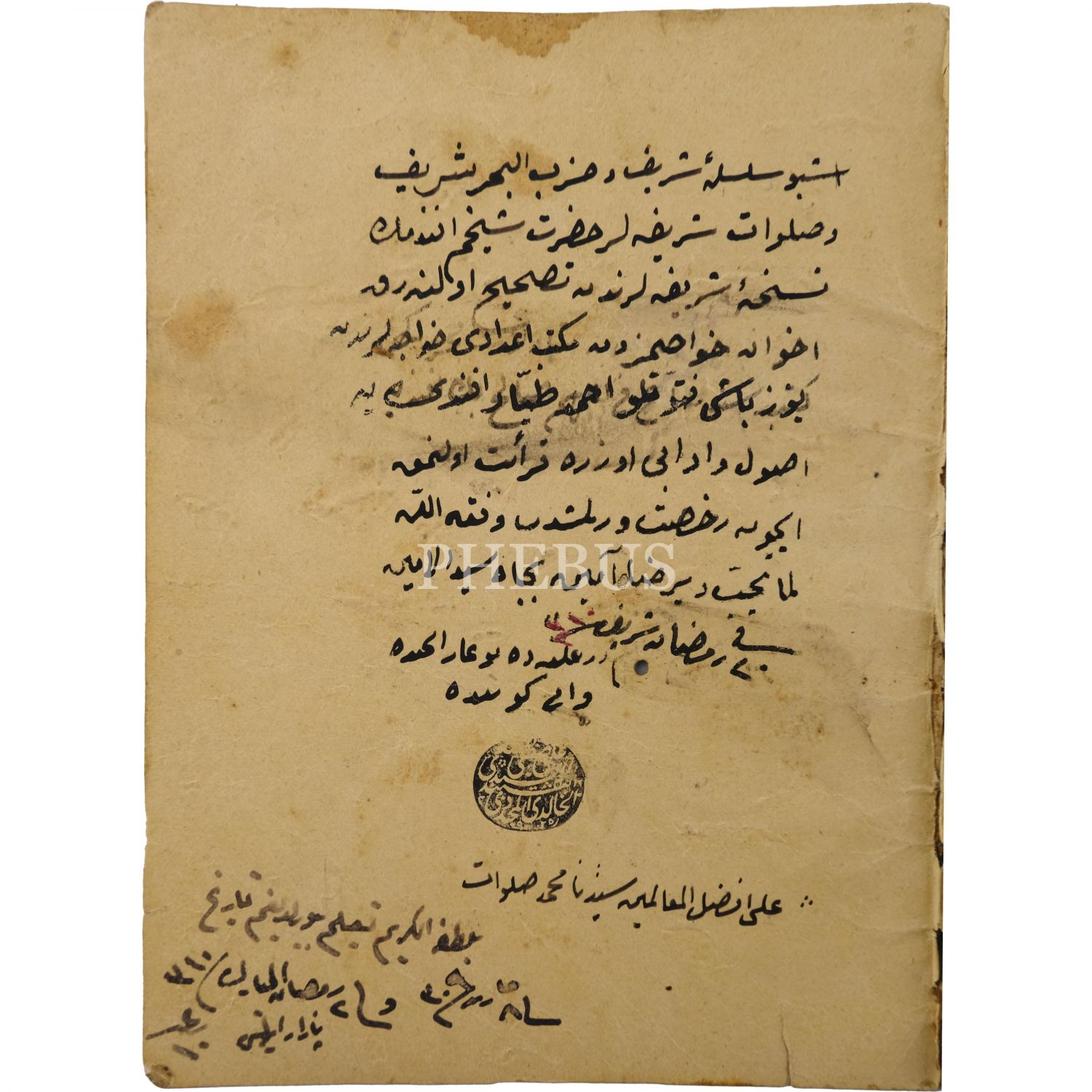 Ebülhasan Şâzelî´nin derlediği hizblerden olan eserde ketebe kaydı yoktur. Ancak son kısmında hicrî 1310 Ramazan-ı şerif tarihli icazet ve ders kaydı vardır. Vaniköy´de Nakşibendîliğin Hâlidî Müceddidî kolundan Şeyh Ali [Safâ] Efendi tarafından Yüzbaşı Ahmed Tayyâr´a verilen icaze 1310 tarihli ve şeyh efendi tarafından mühürlüdür.