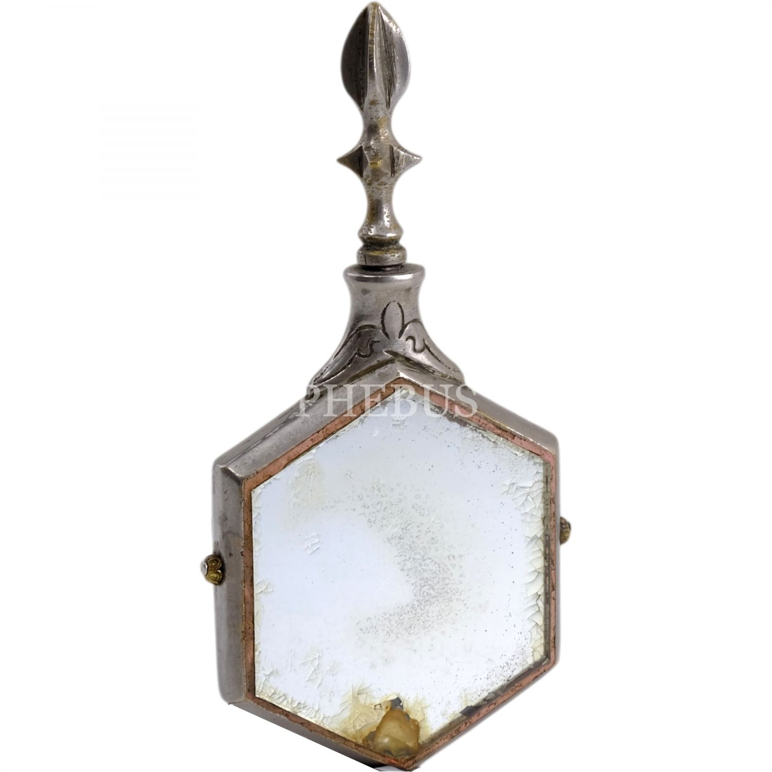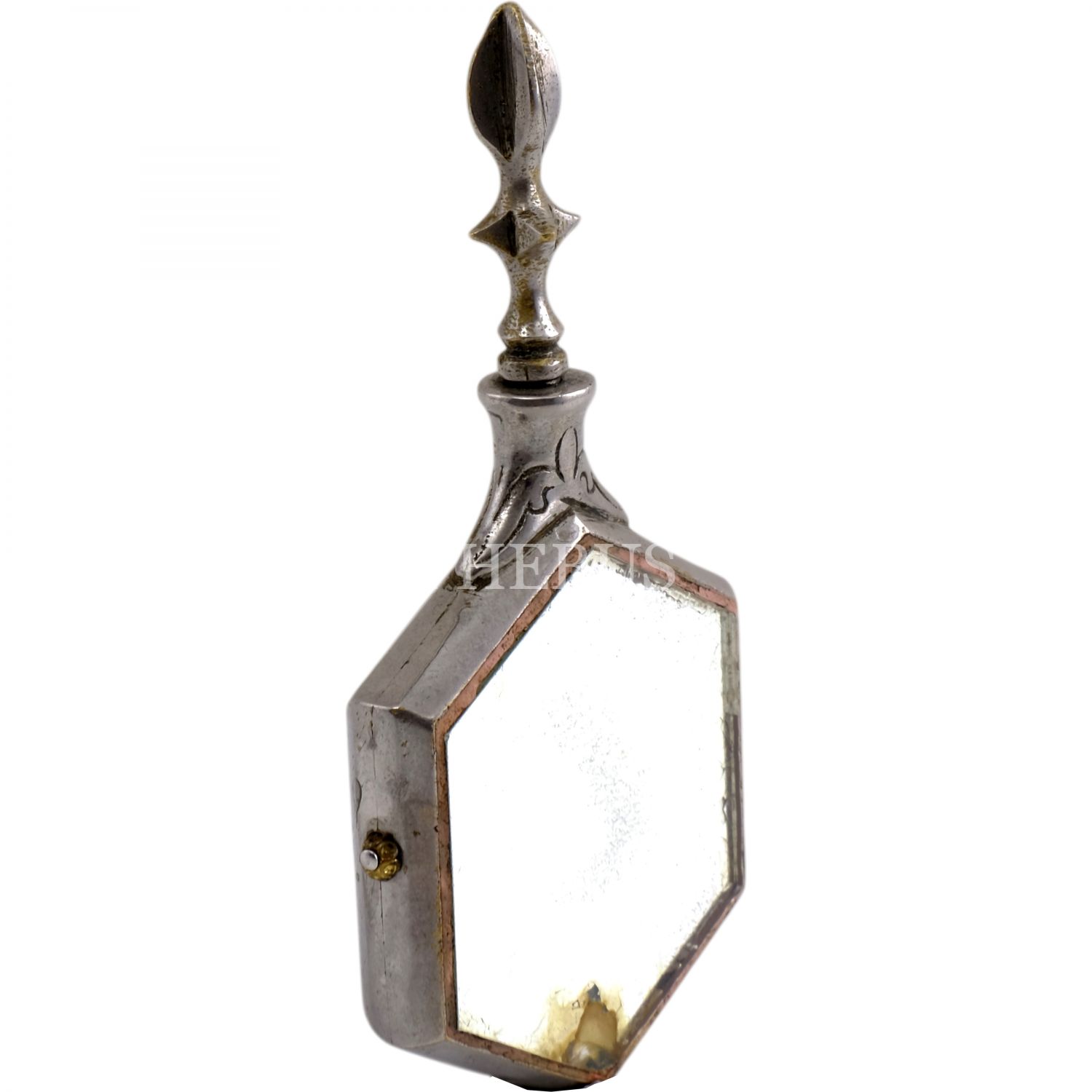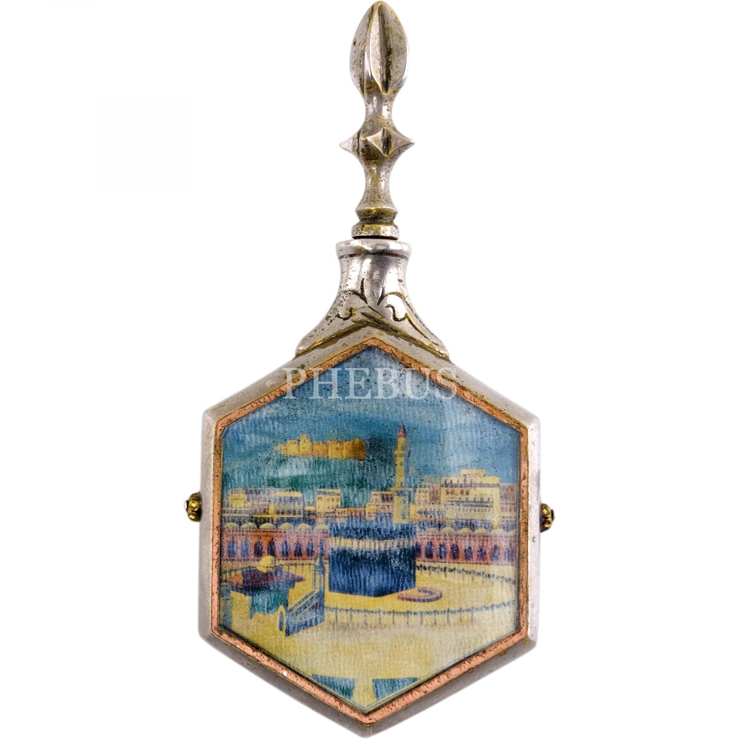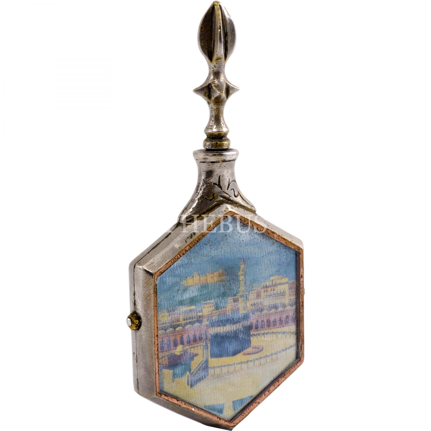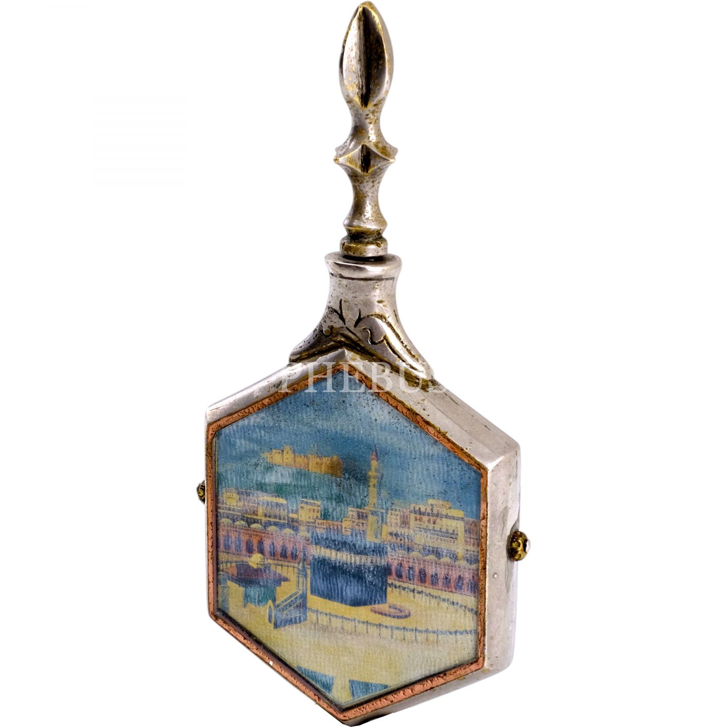 Arka yüzü kabe resimli ve aynalı, Osmanlı dönemi esans kutusu, 5x12 cm...