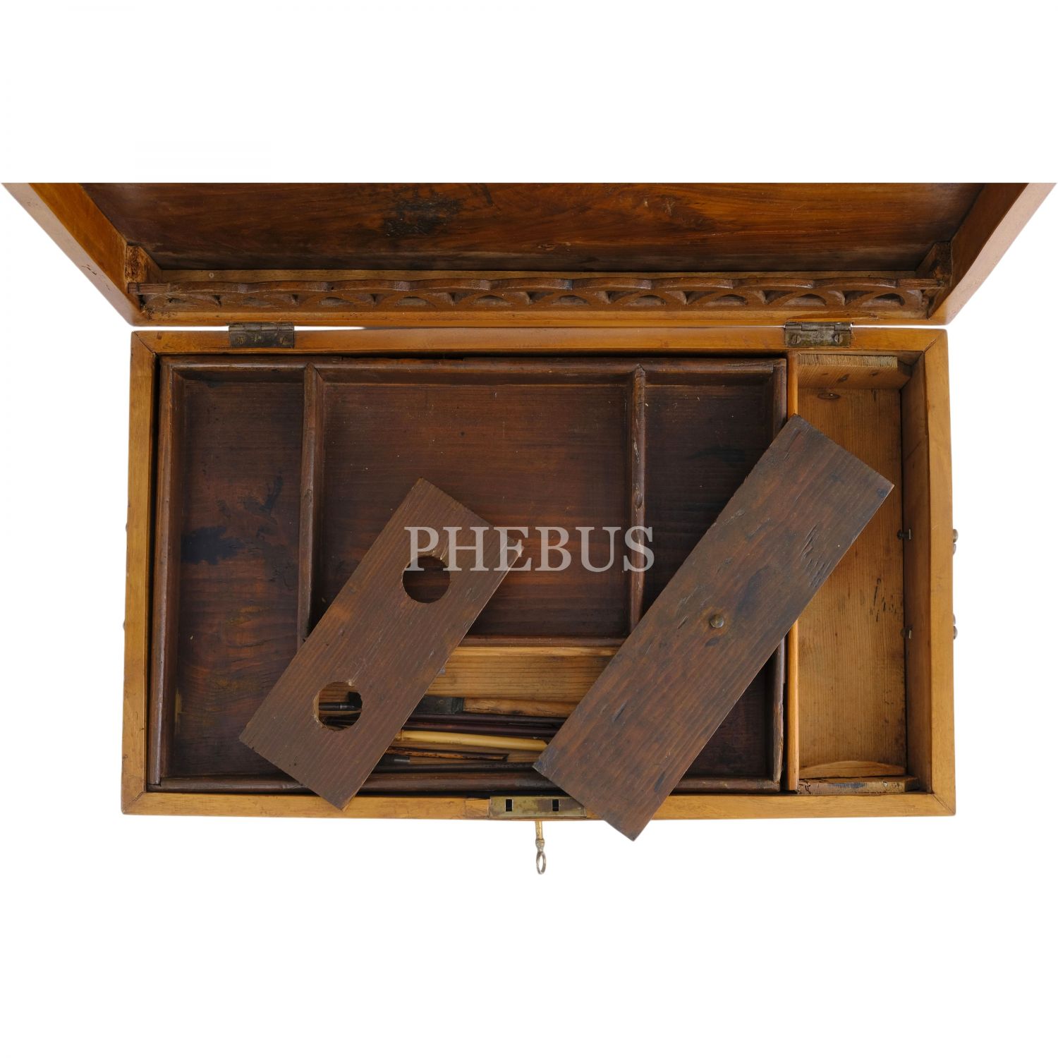 Ahşap hattat sandığı ve malzemeleri, sandık ölçü: 52x30x21 cm, kalemtraş ölçü: 18 cm...