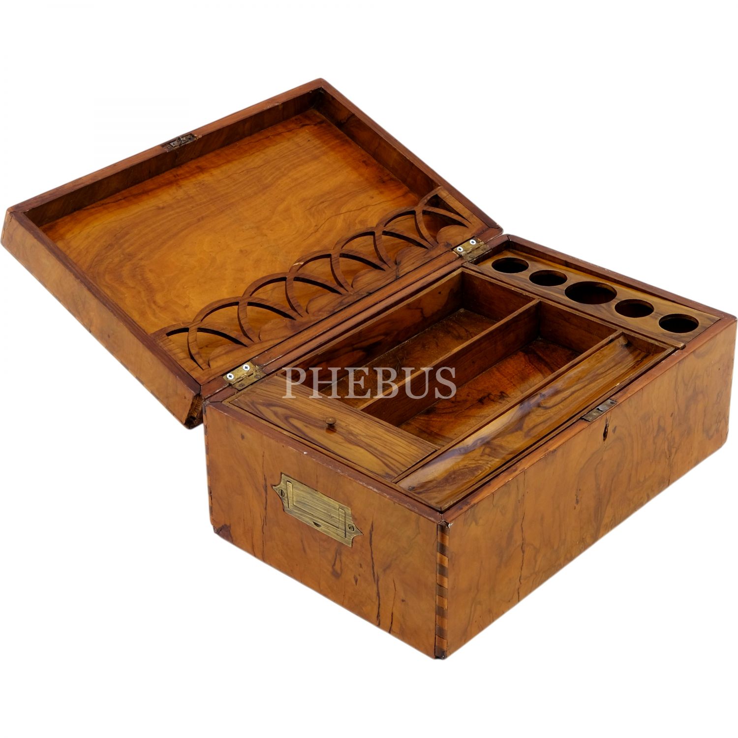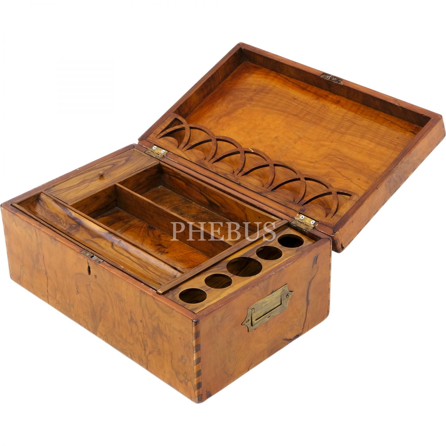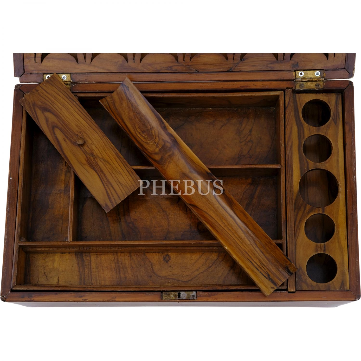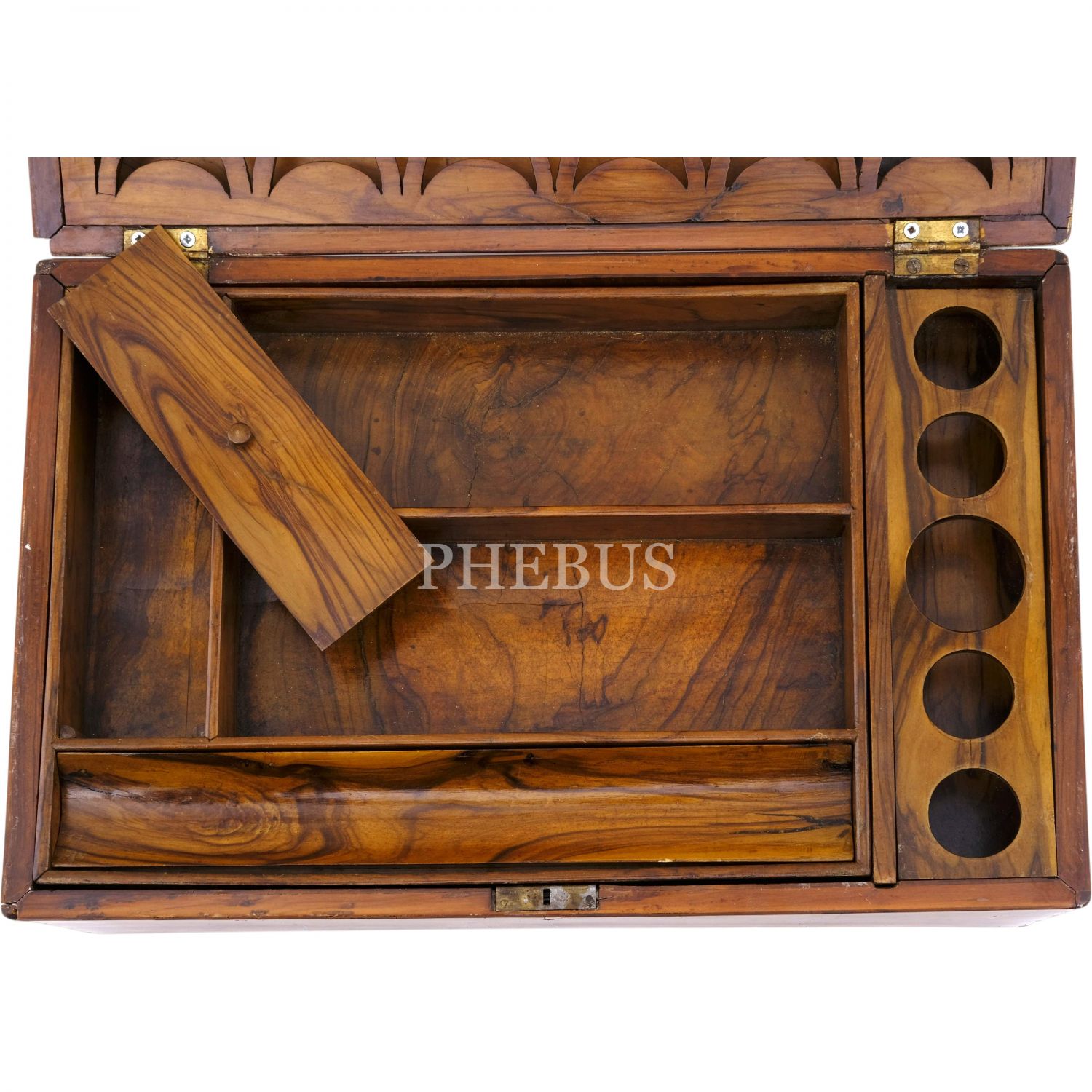 Çekmeceli, hokka ve rıhdanlar için özel bölmeleri olan, iç kısmı iki katlı hattat sandığı.