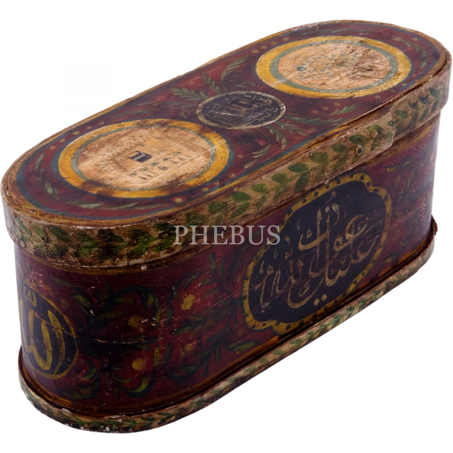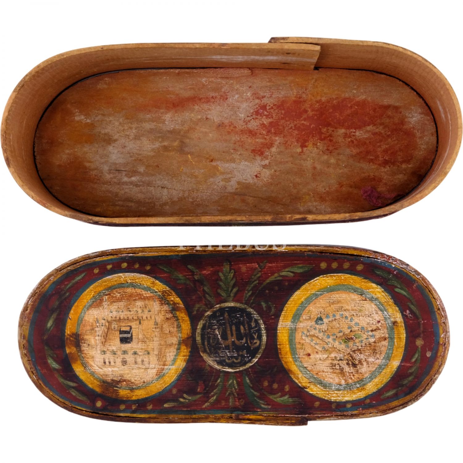 Mescid-i Haram ve Ravza-i Mutahhara resimli, edirnekârî işlemeli, dualı ve çiçek desenli ahşap kutu, 25x10x19 cm...