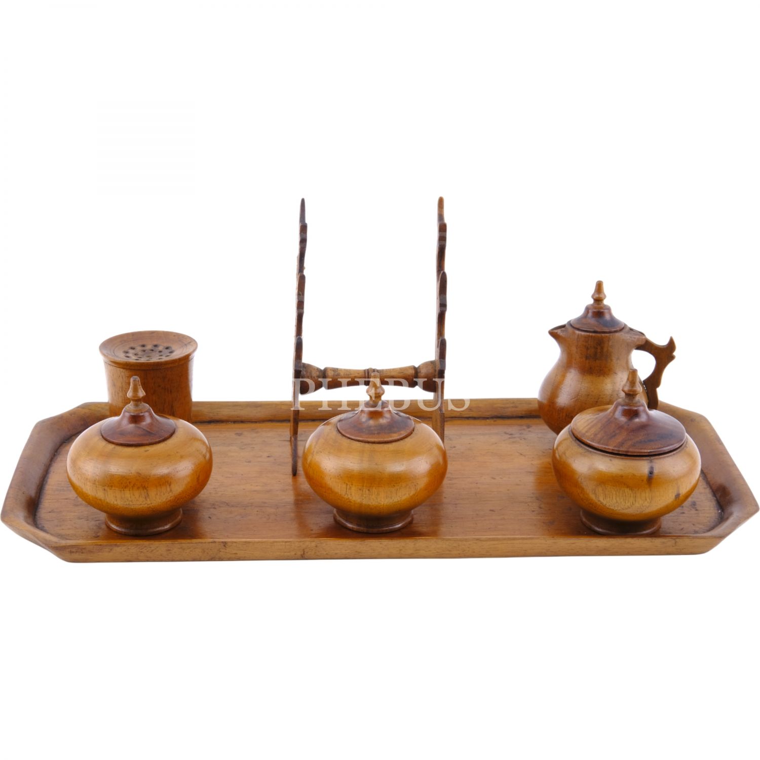 Osmanlı dönemi, şimşir ağacından mamul, mevlevi sikkeli nadir hokka takımı, 7 parça, altlık ölçü: 33x15 cm...