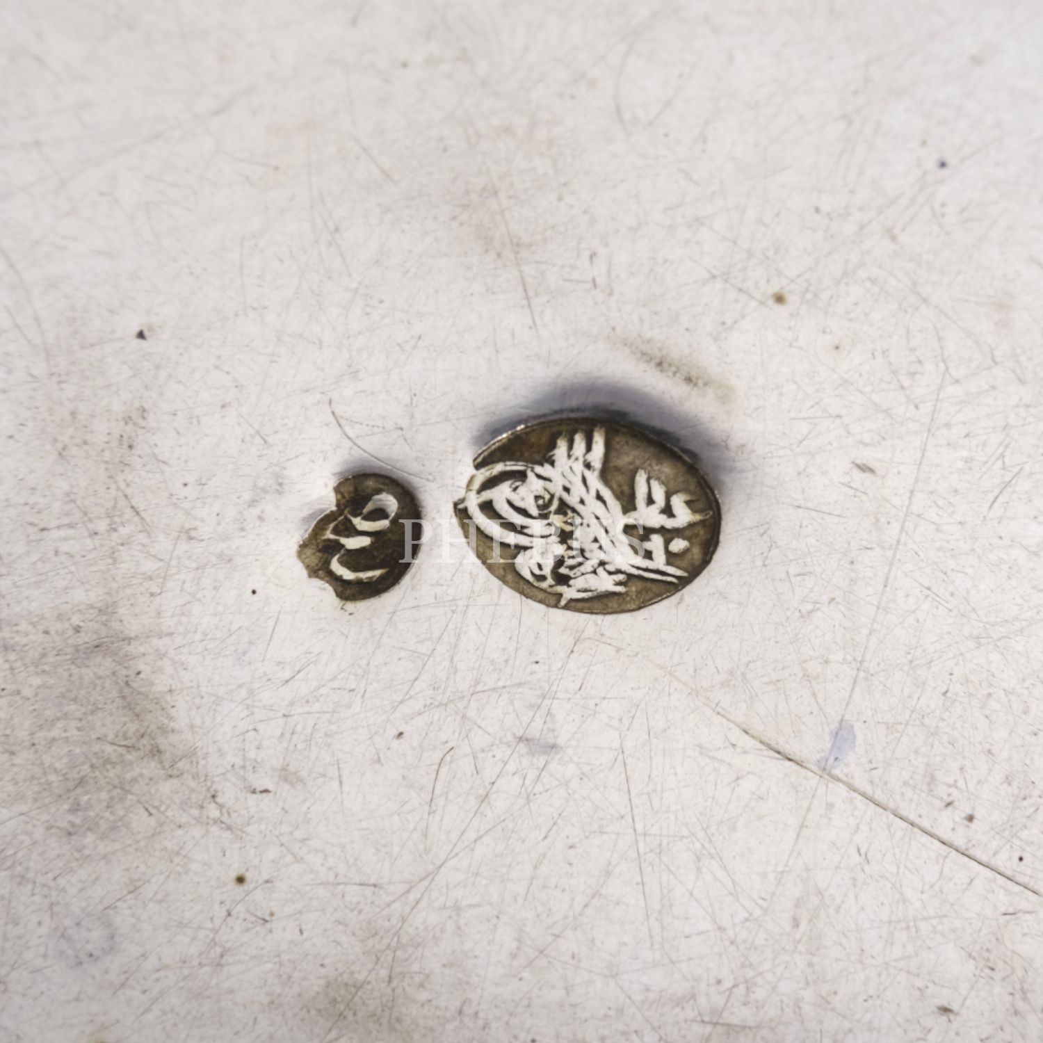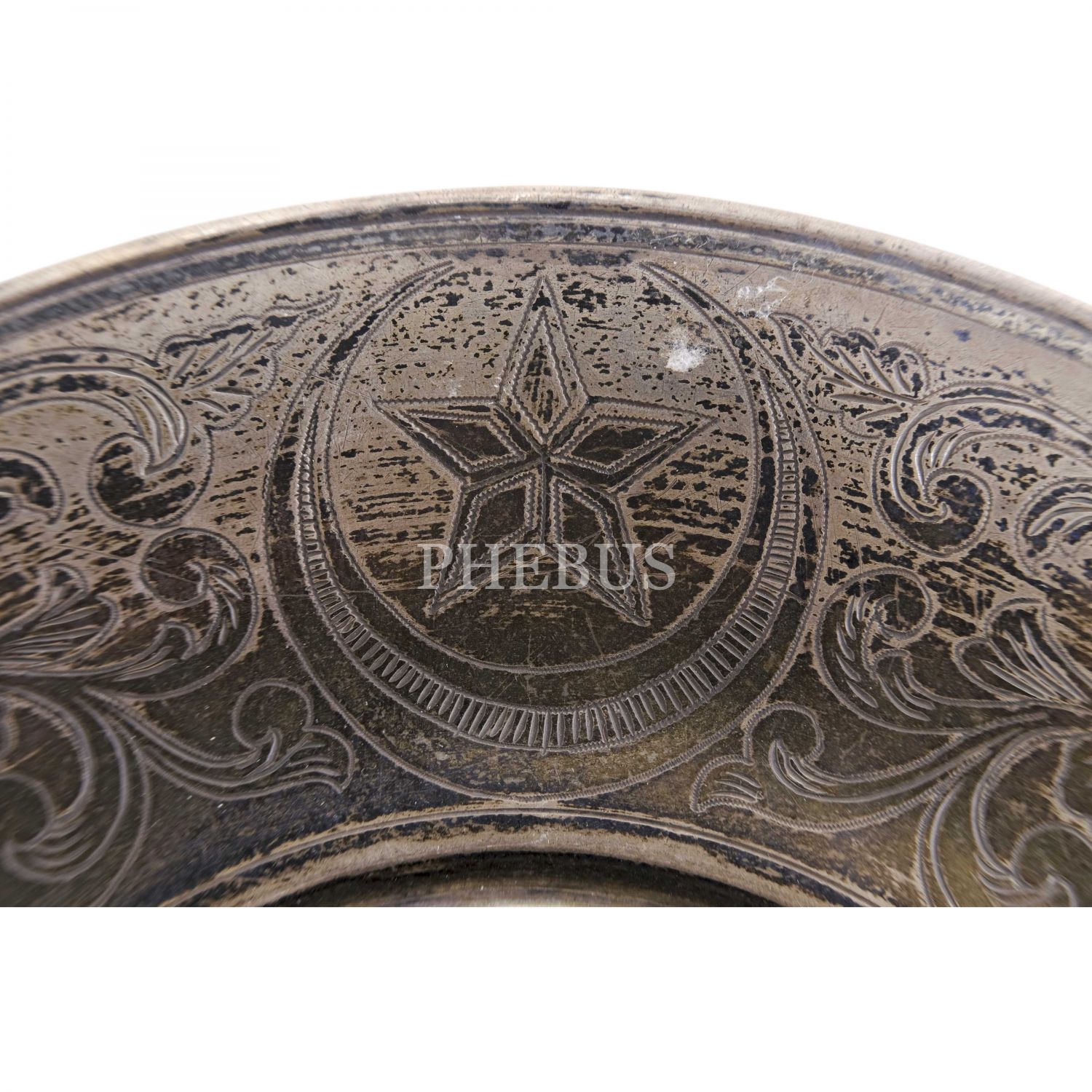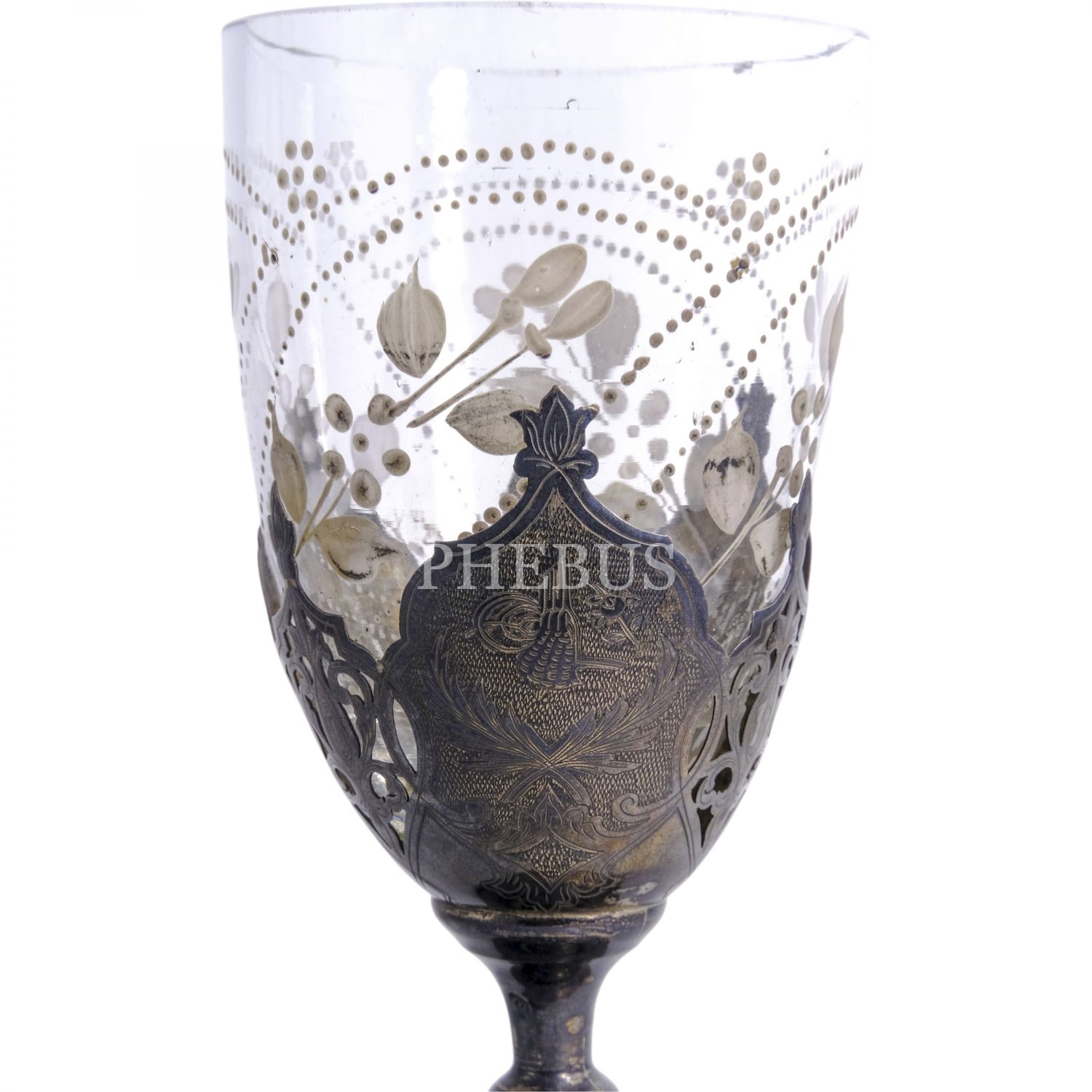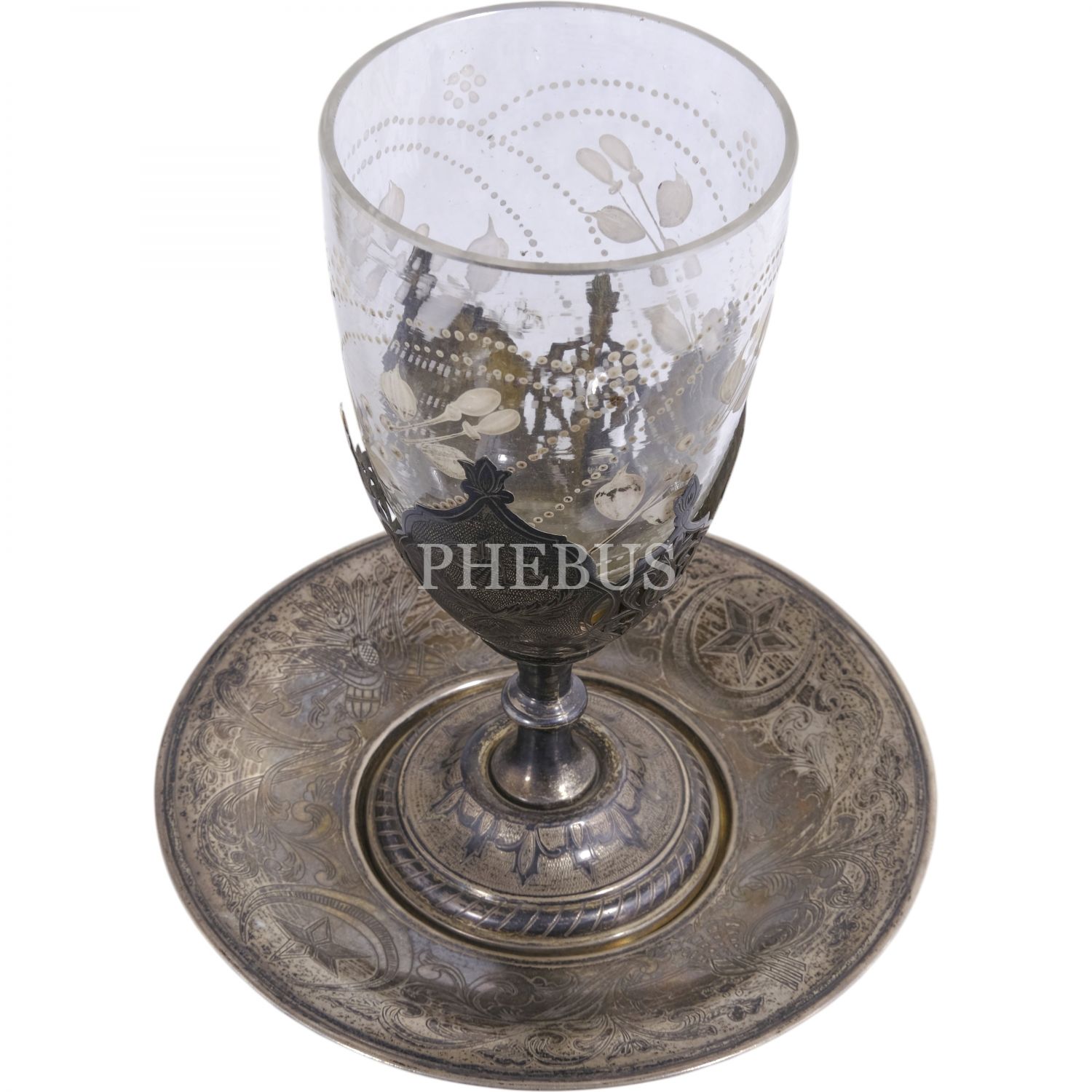 El boyama floral desenli cam kadeh ve kalem işçiliğiyle arma, ay-yıldız gibi detaylarla bezenmiş, tuğralı gümüş zarf ve tabağı, zarf ve tabak 172 g., 16x7,5 cm...