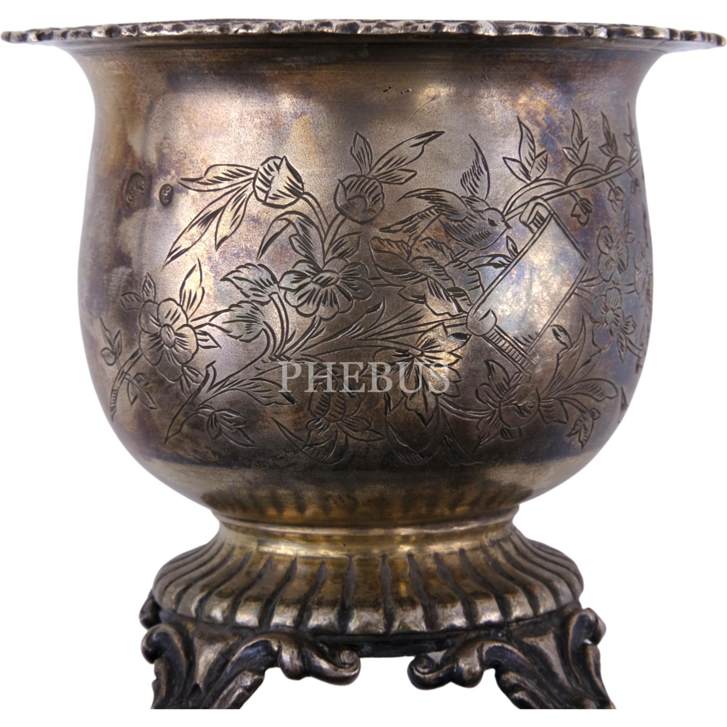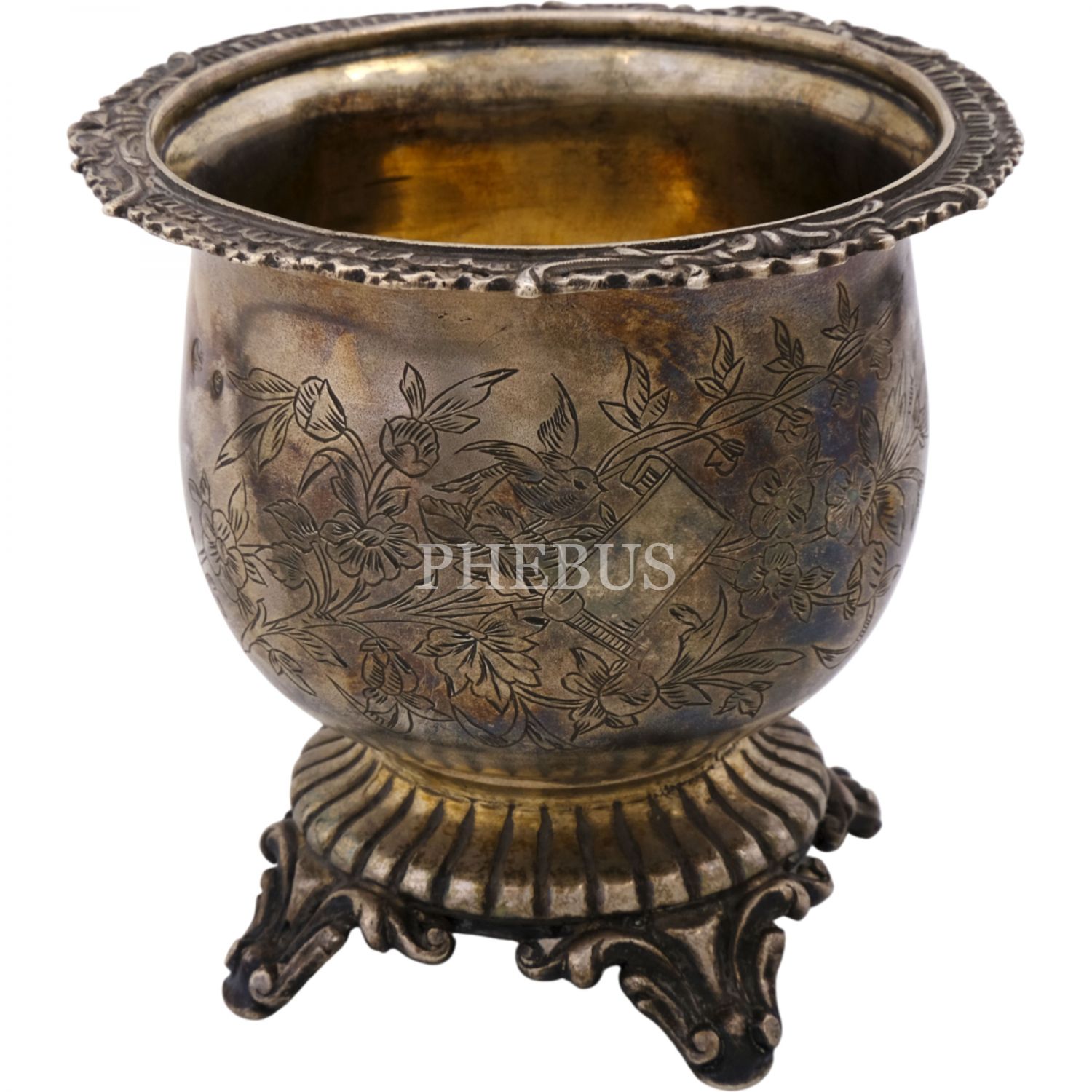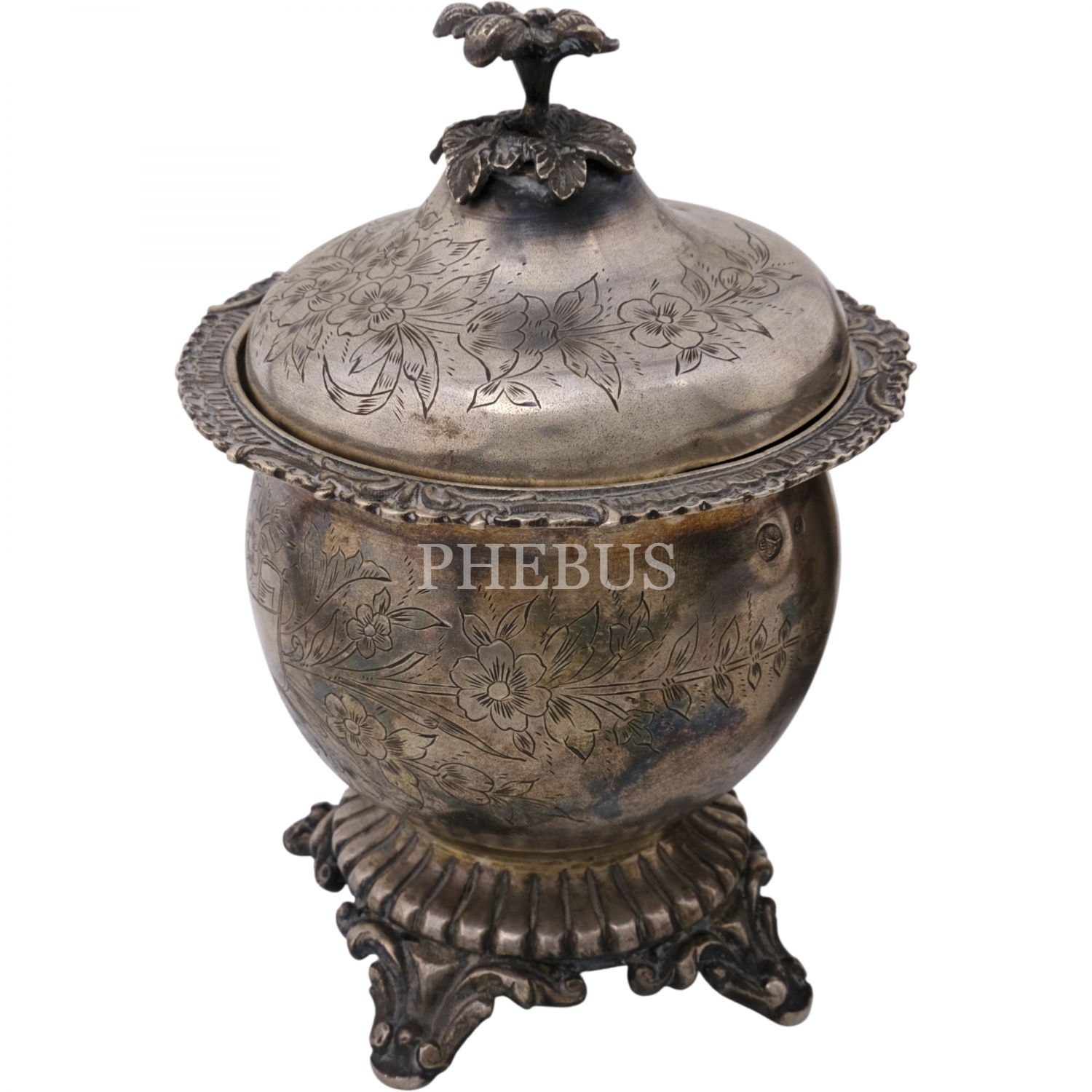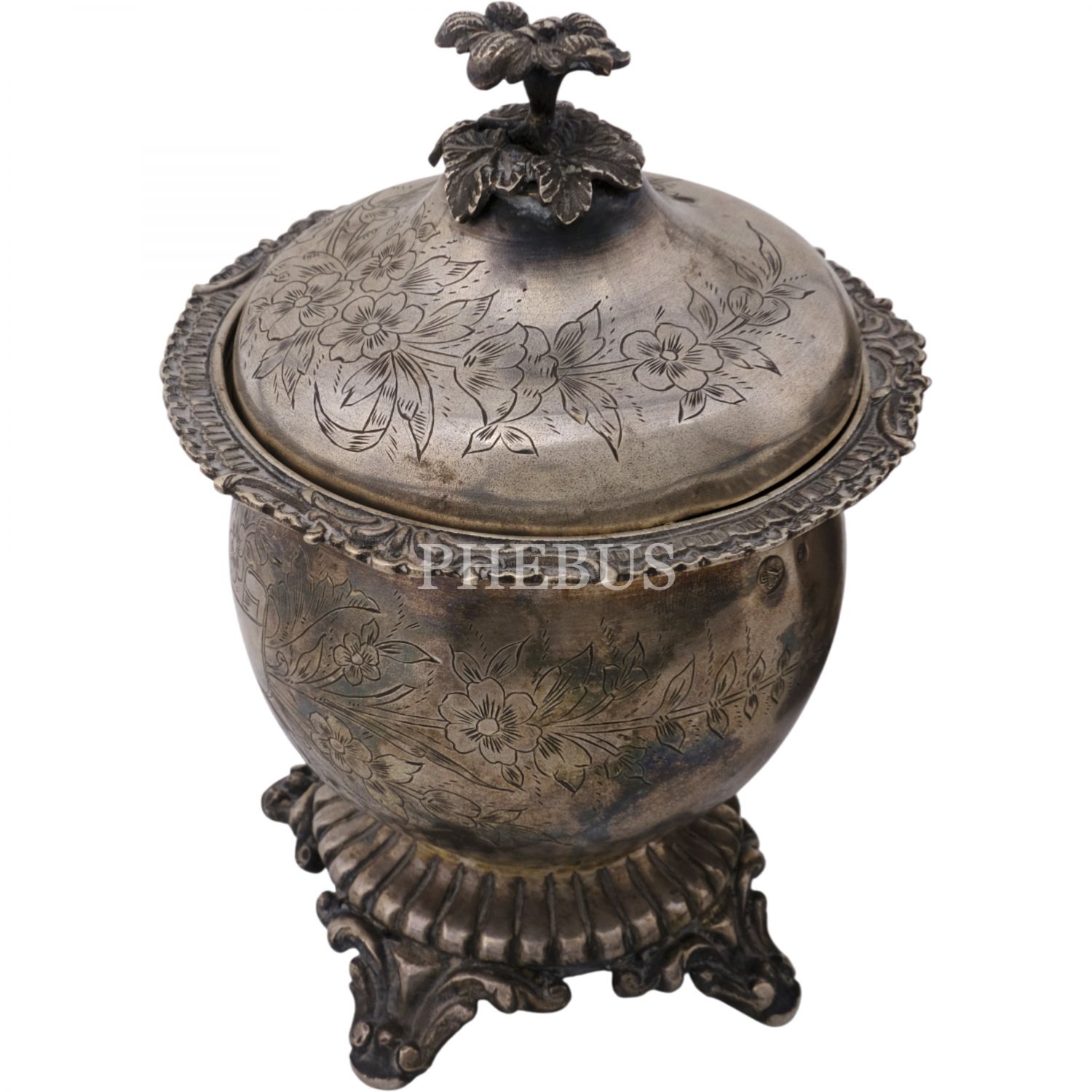 Üç parçadan oluşan gümüş tatlı takımı seti, her biri Osmanlı tuğralı ve kalem işi floral desenlerle bezeli, 949 g., kapaksızlar 11x10 cm, kapaklı 11x15 cm...