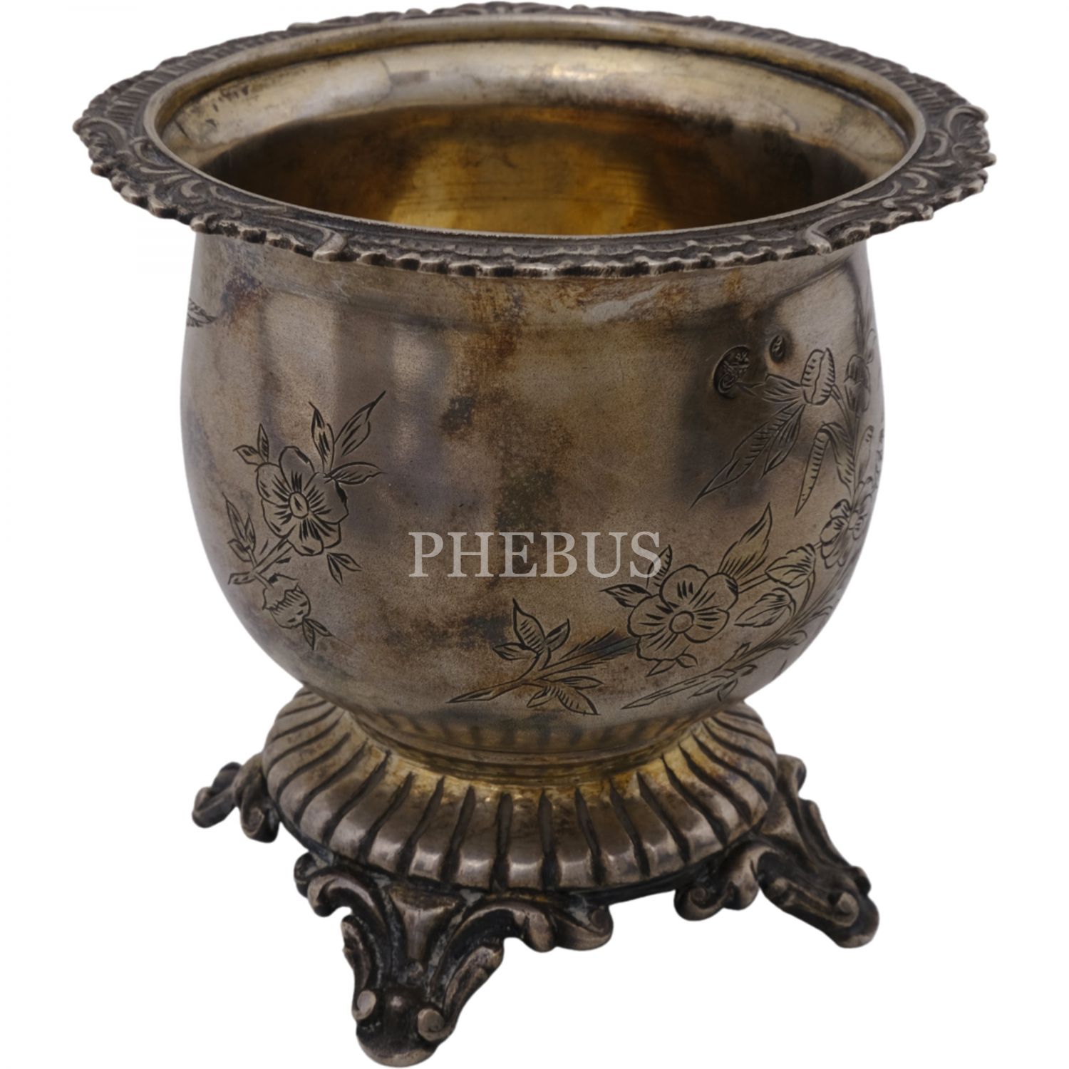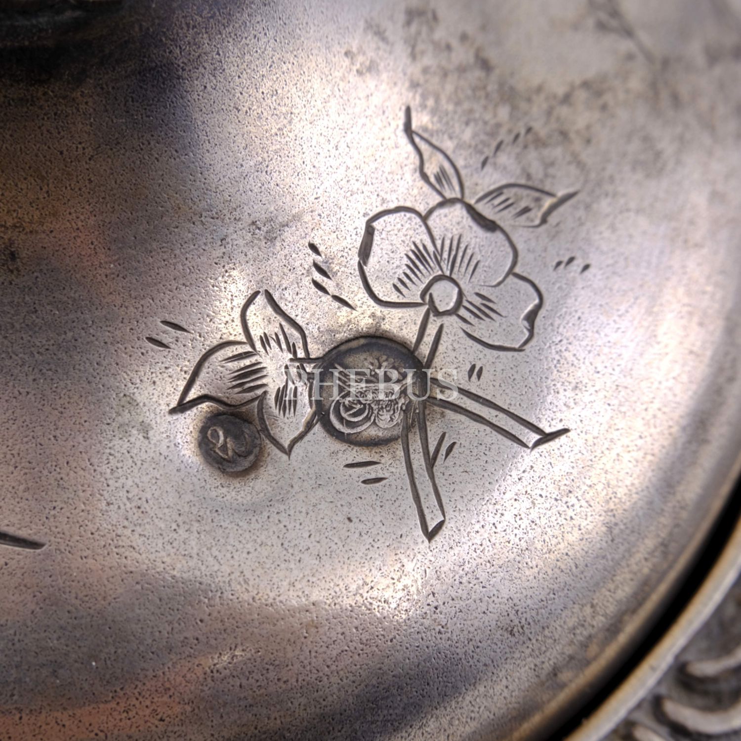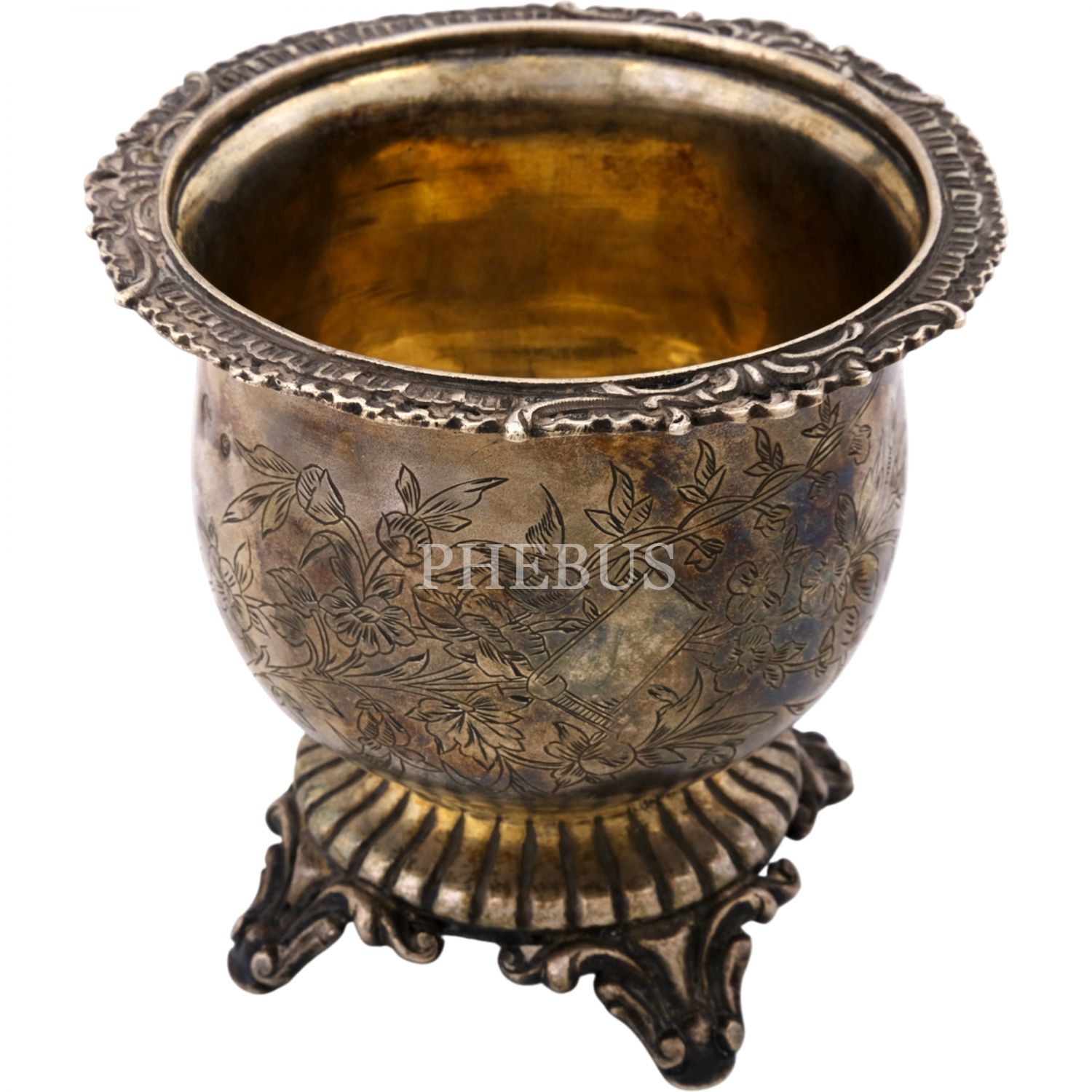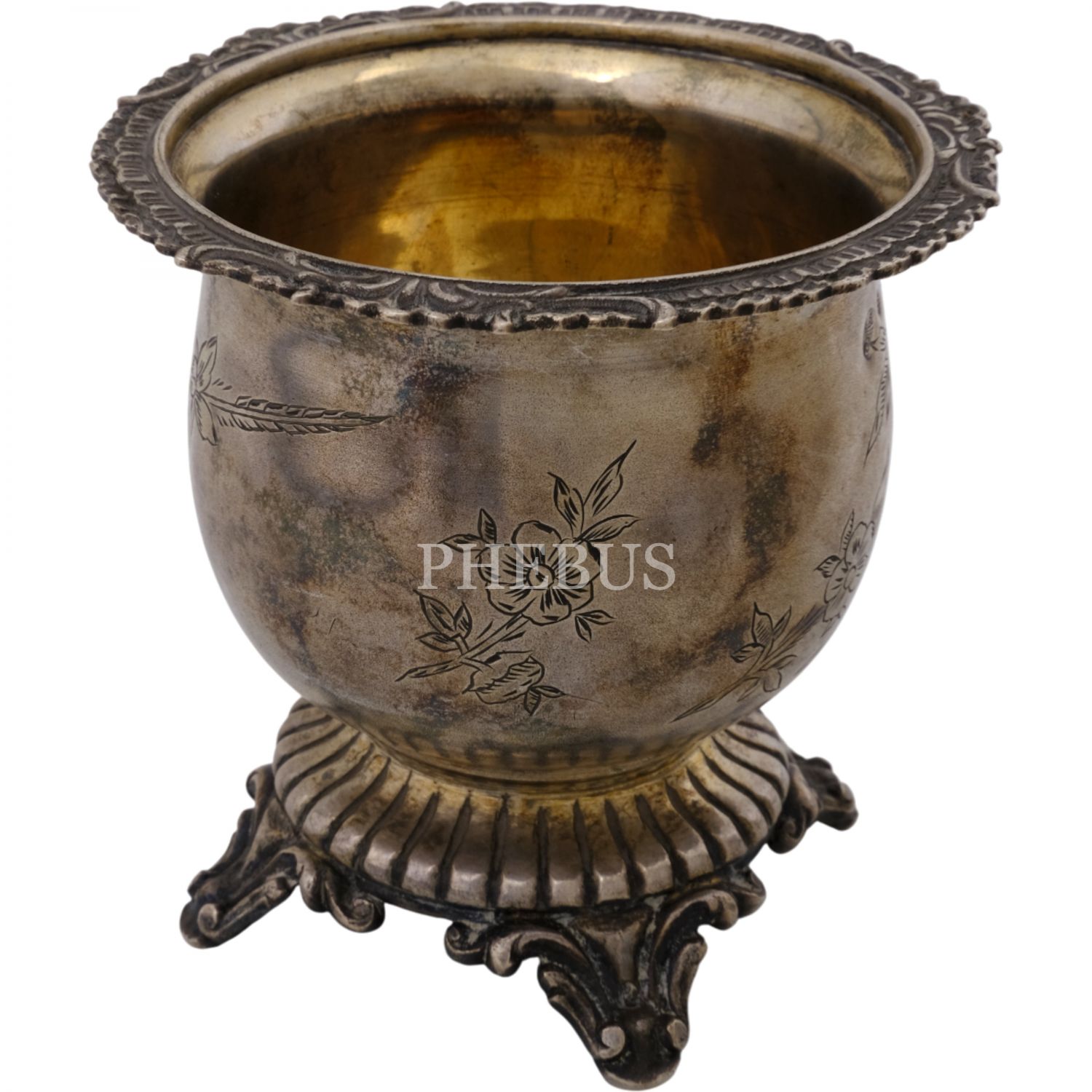 Üç parçadan oluşan gümüş tatlı takımı seti, her biri Osmanlı tuğralı ve kalem işi floral desenlerle bezeli, 949 g., kapaksızlar 11x10 cm, kapaklı 11x15 cm...