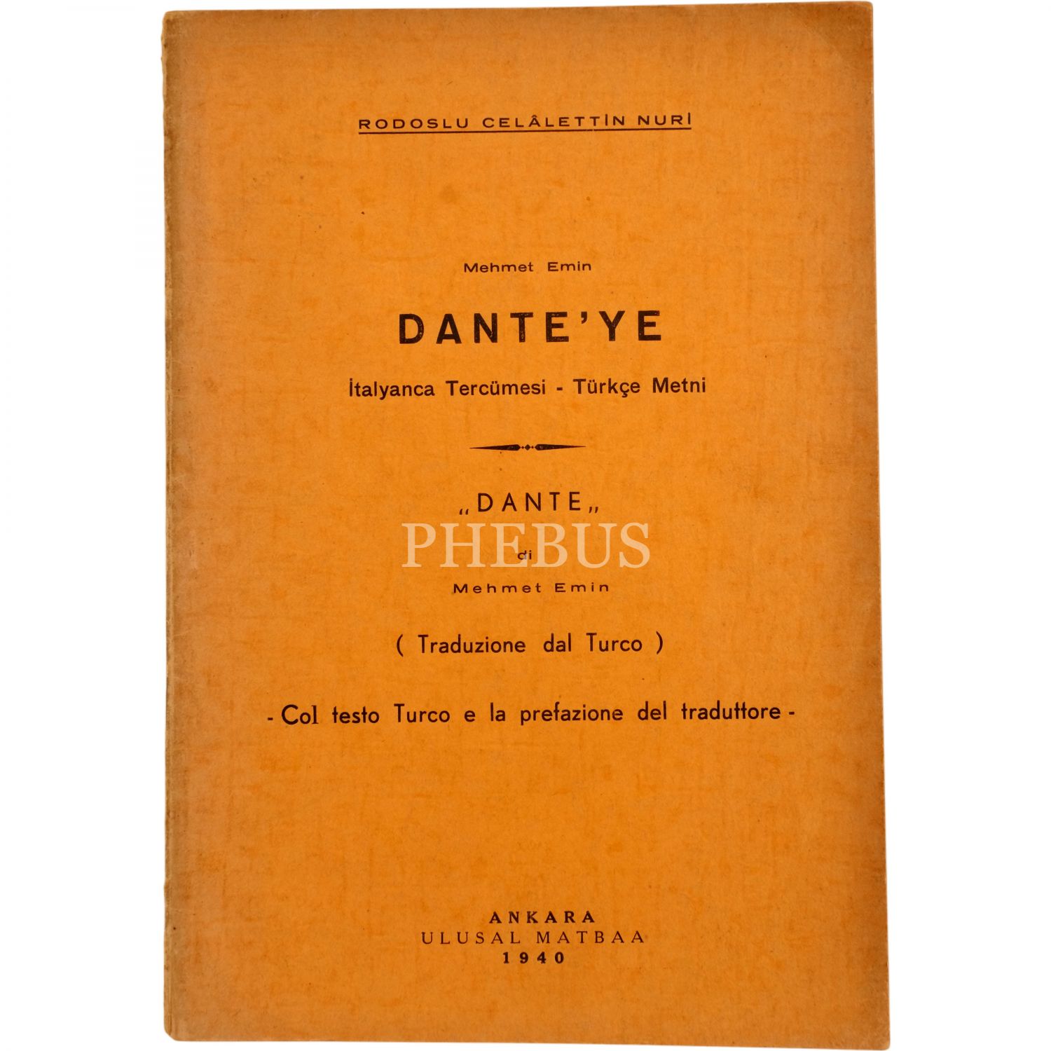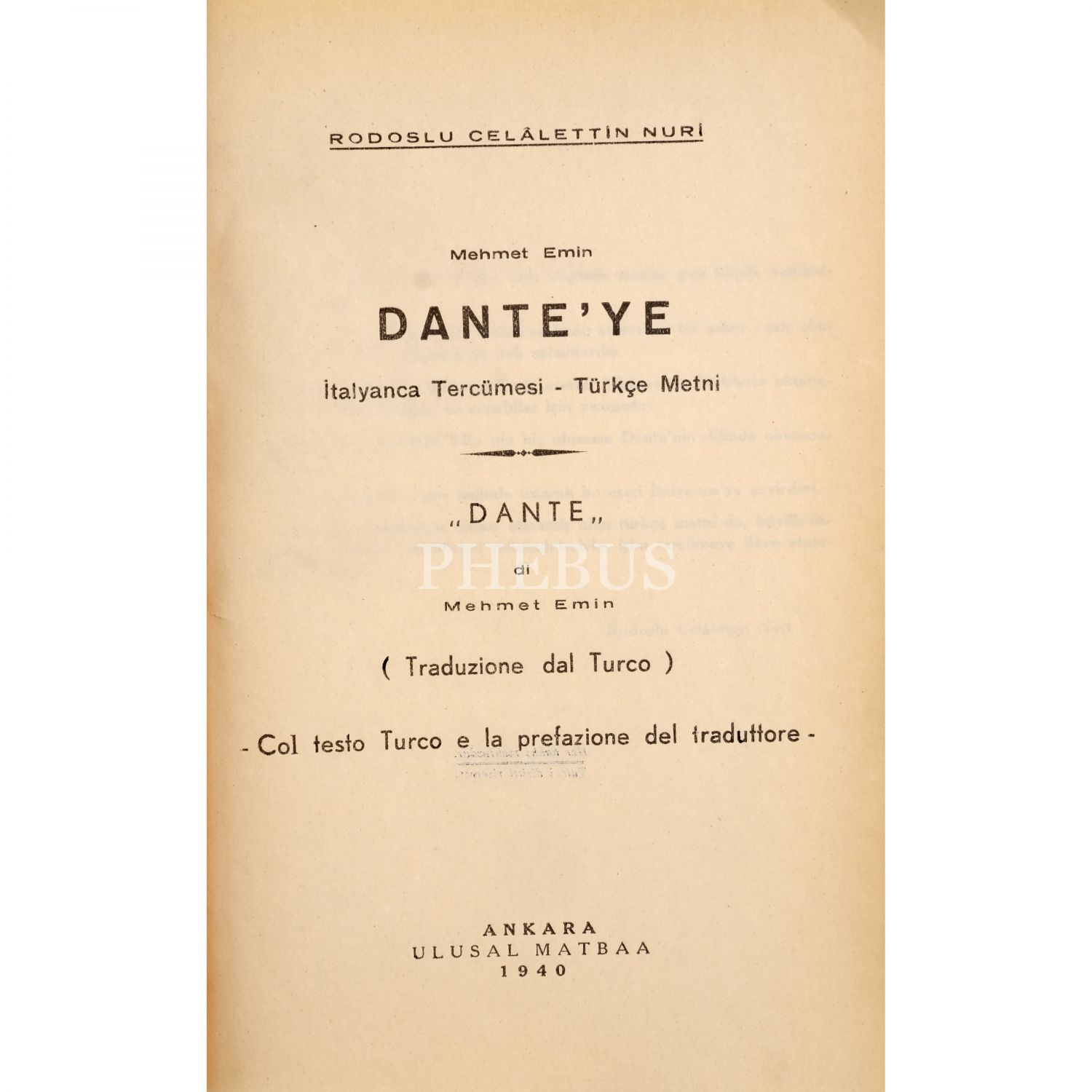 ANKARA kitabı, Rodoslu Celâlettin Nuri´ye hitaben imzalanmıştır: "İrfan ve faziletini takdir ettiğim aziz oğlum Celalettin Nuriye yadigarım olsun. 25.10.1939 Mehmet Emin Yurdakul"