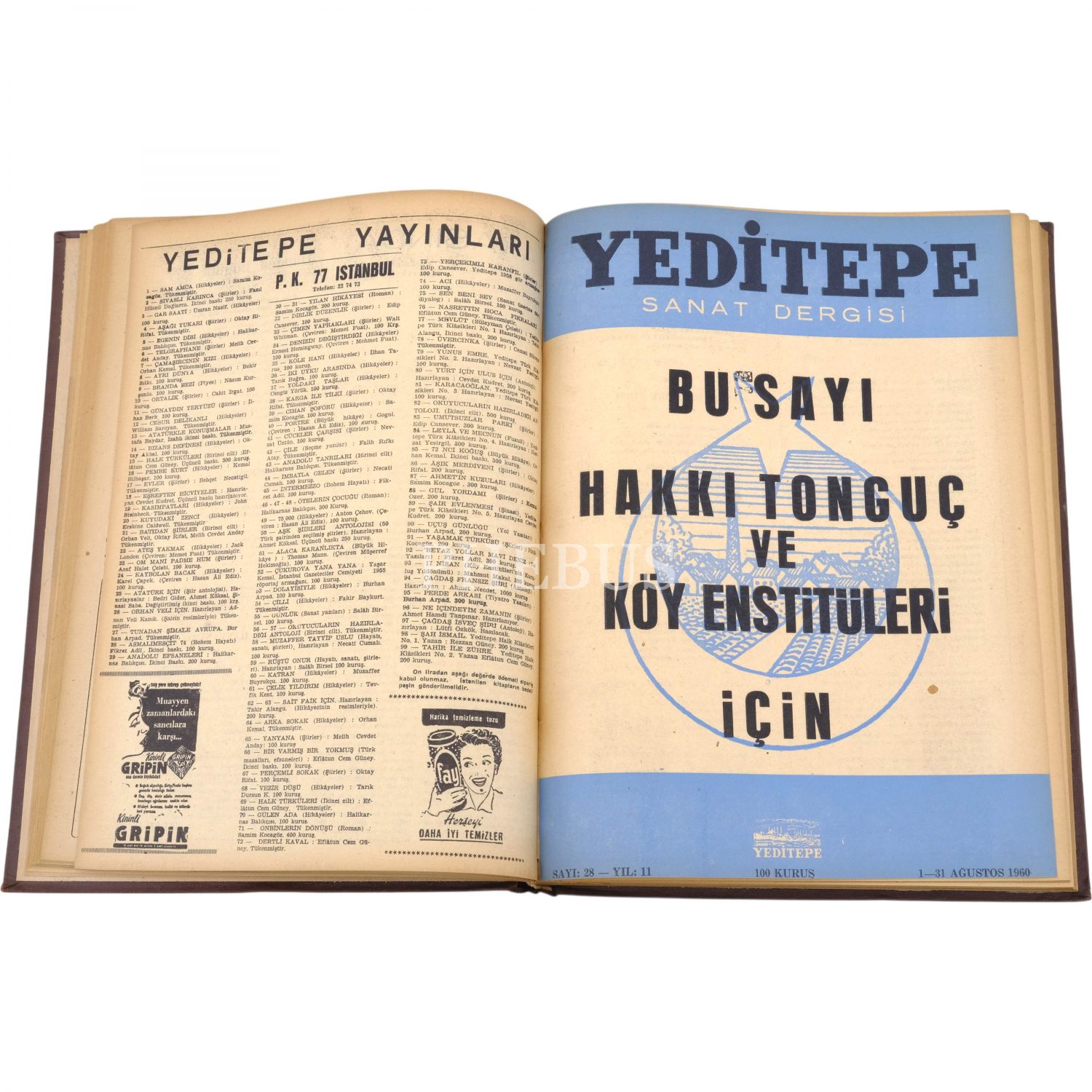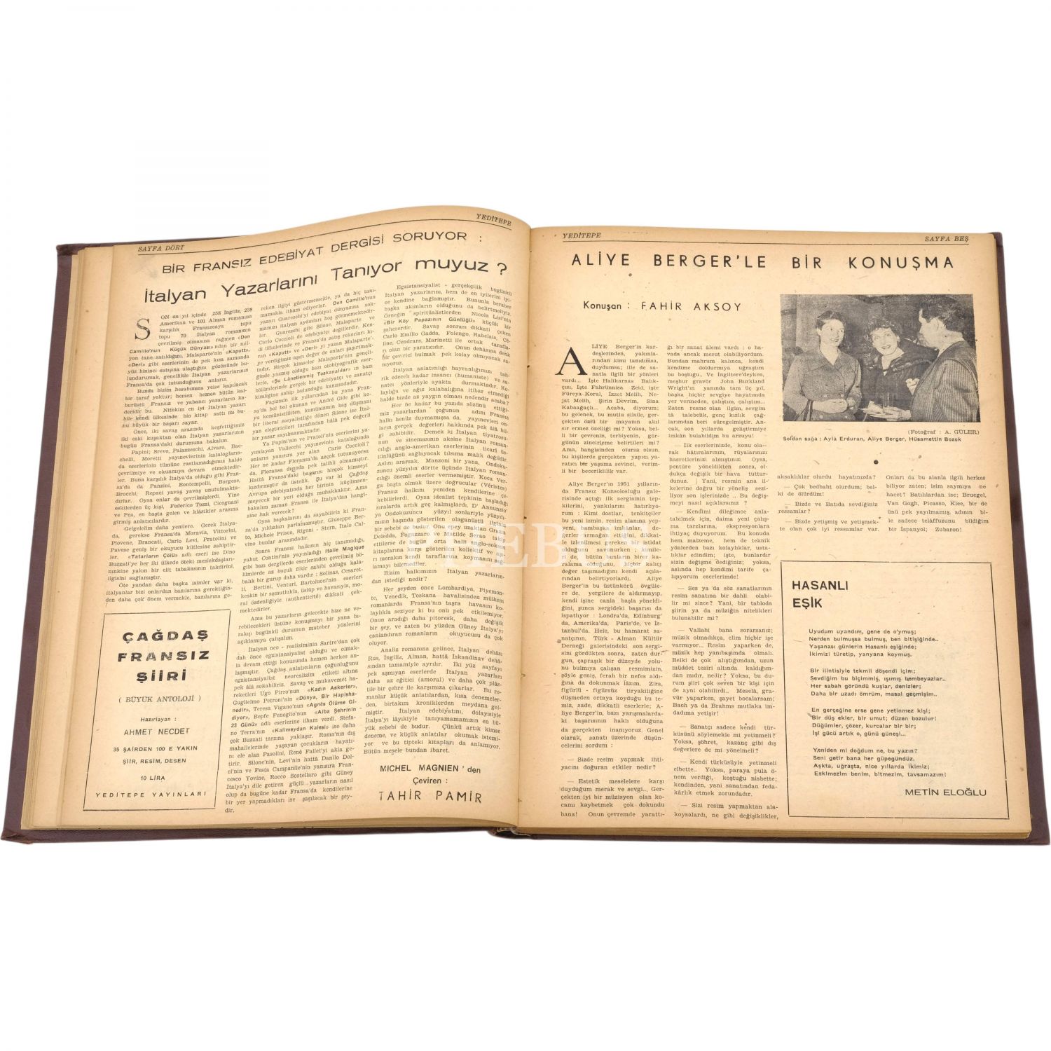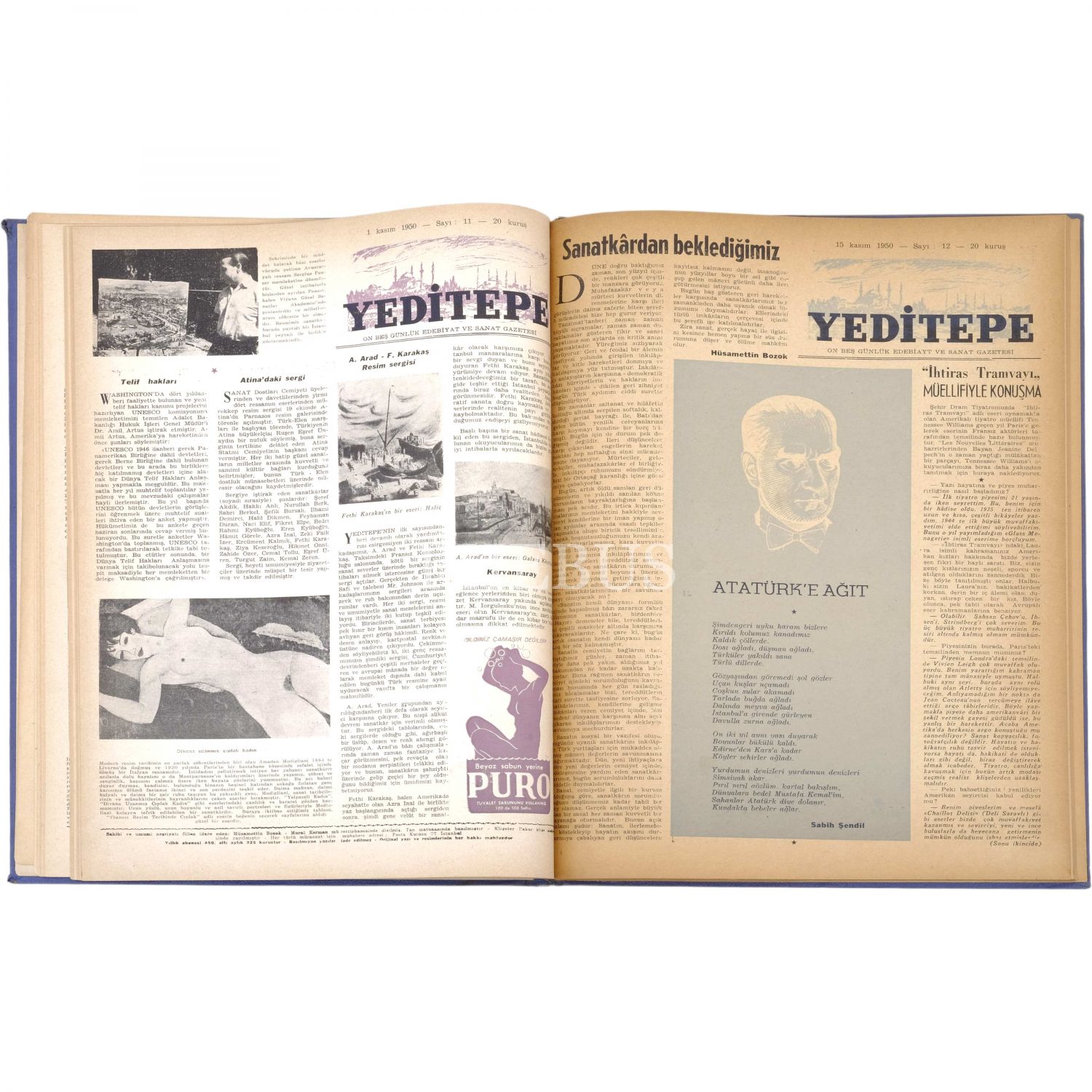 Her biri dergiyi yayımlayan Hüsamettin Bozok´tan Nevzat Üstün´e ithaflı ve imzalı, Yeditepe dergisinin 1 Nisan 1950´de yayımlanan ilk sayısı ila 1 Aralık 1967 yılları arasında yayımlanan sayılarından oluşan 12 cilt...