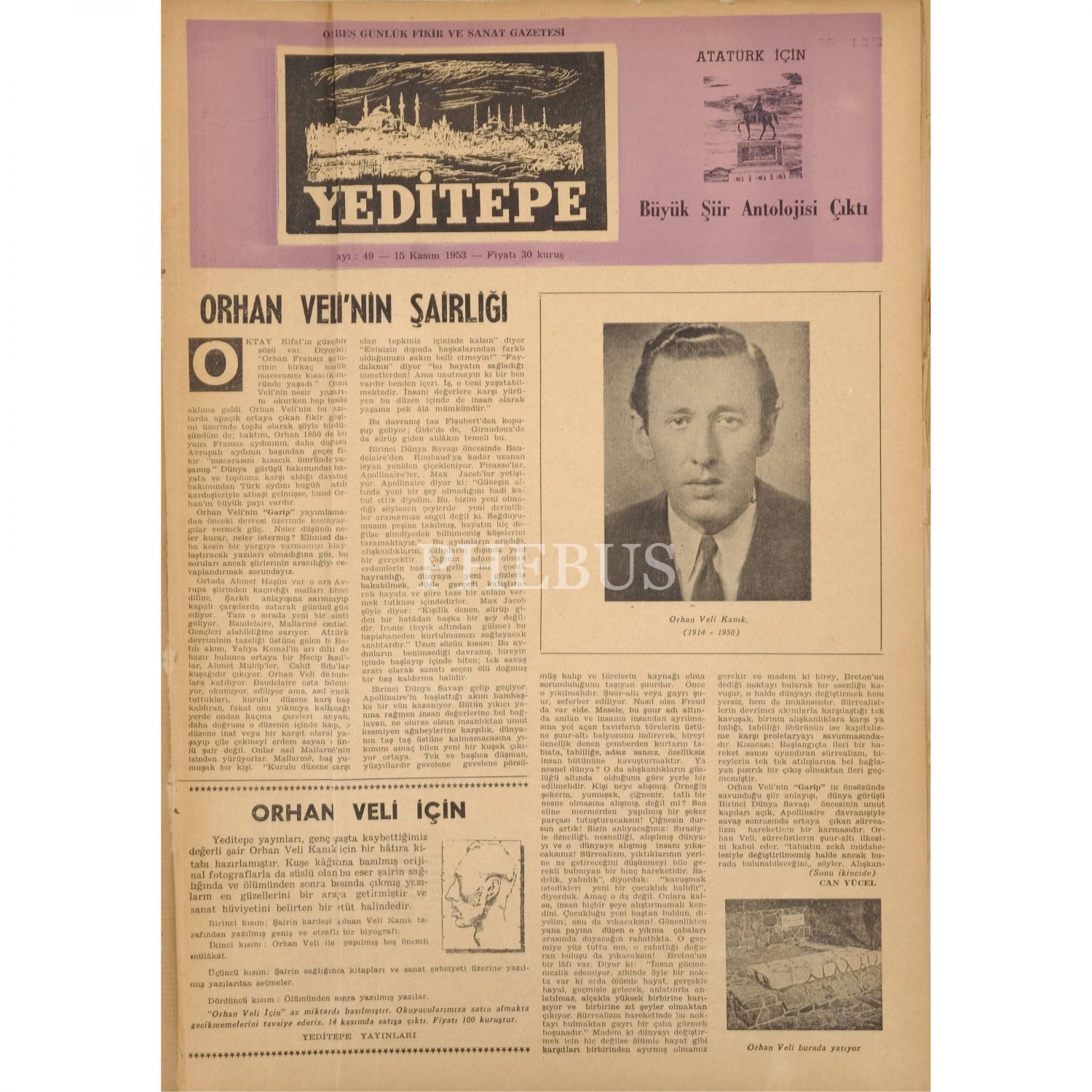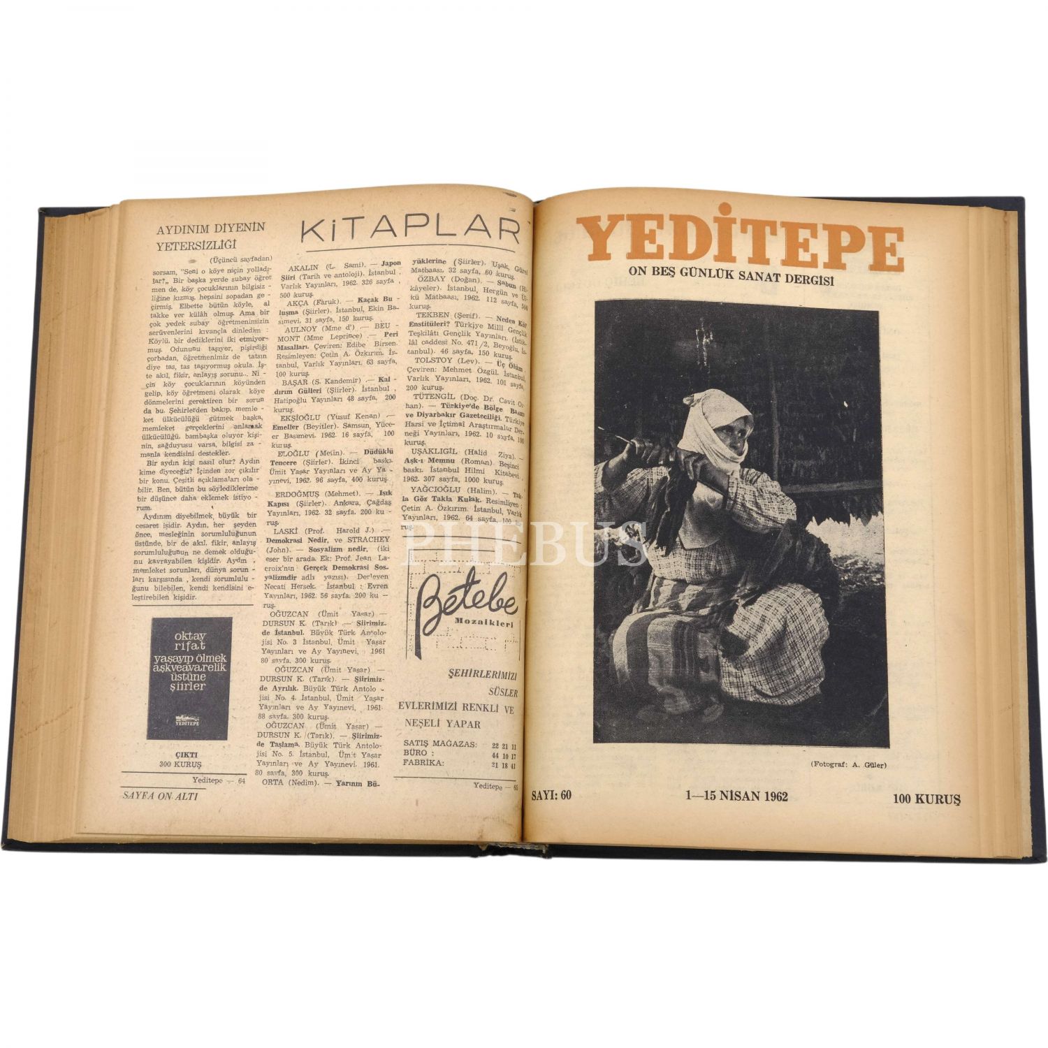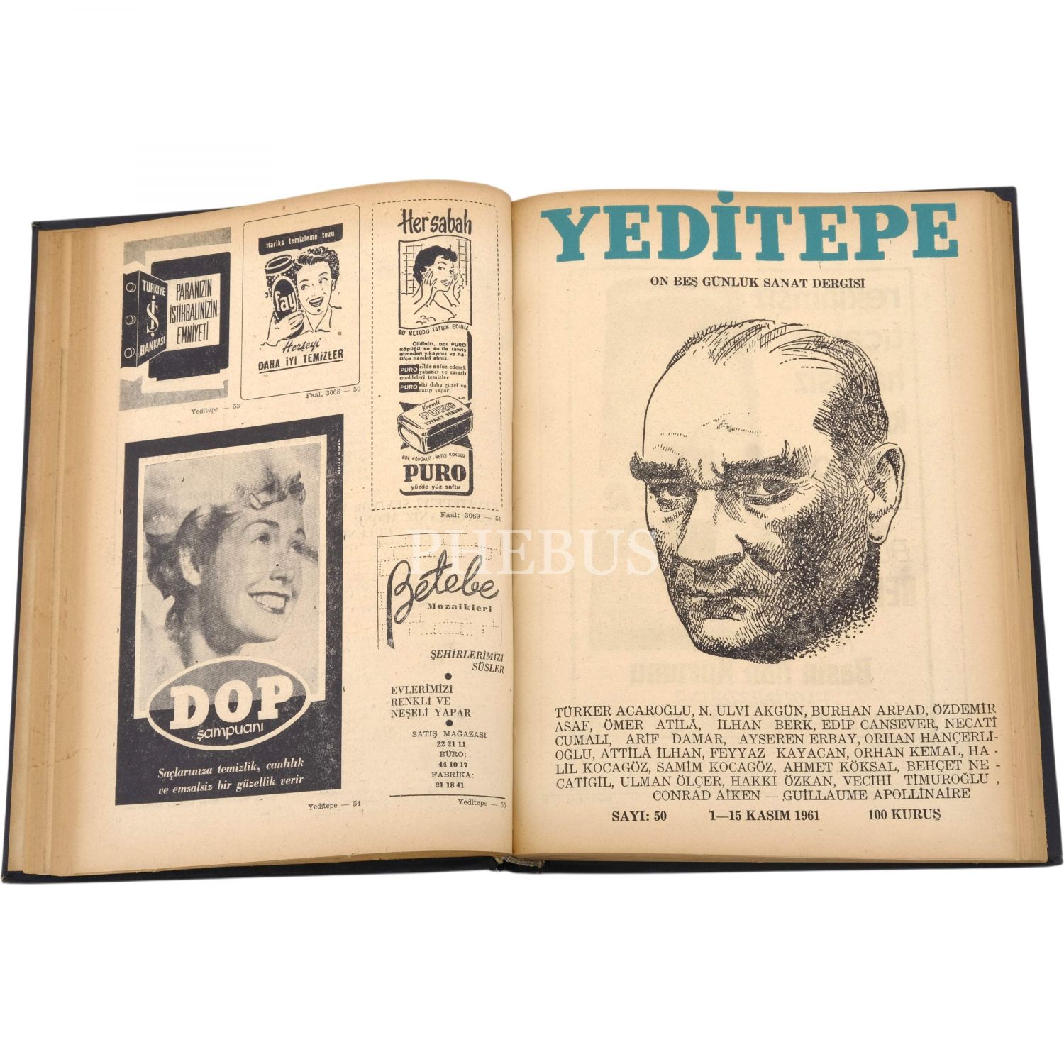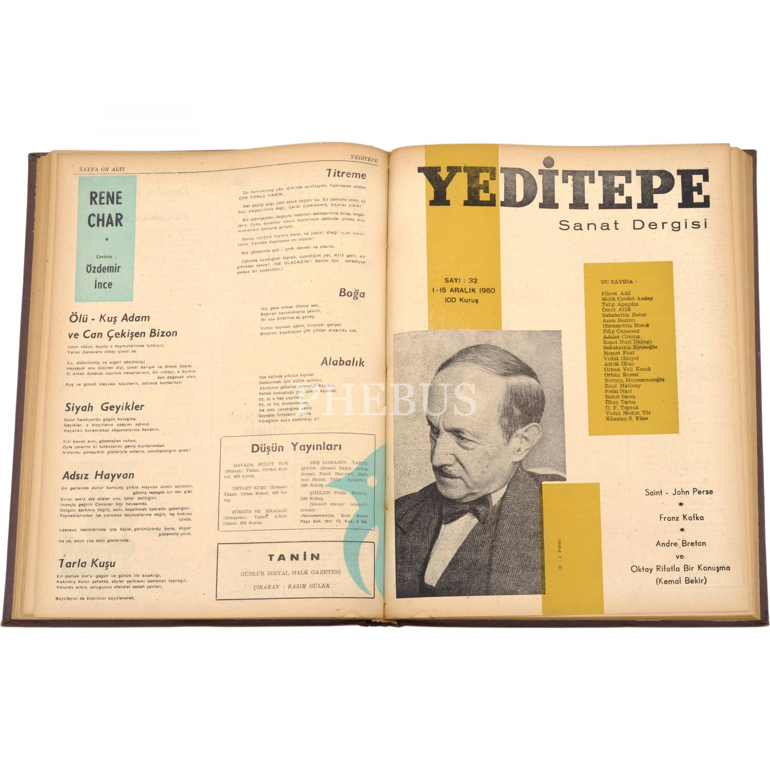 Her biri dergiyi yayımlayan Hüsamettin Bozok´tan Nevzat Üstün´e ithaflı ve imzalı, Yeditepe dergisinin 1 Nisan 1950´de yayımlanan ilk sayısı ila 1 Aralık 1967 yılları arasında yayımlanan sayılarından oluşan 12 cilt...