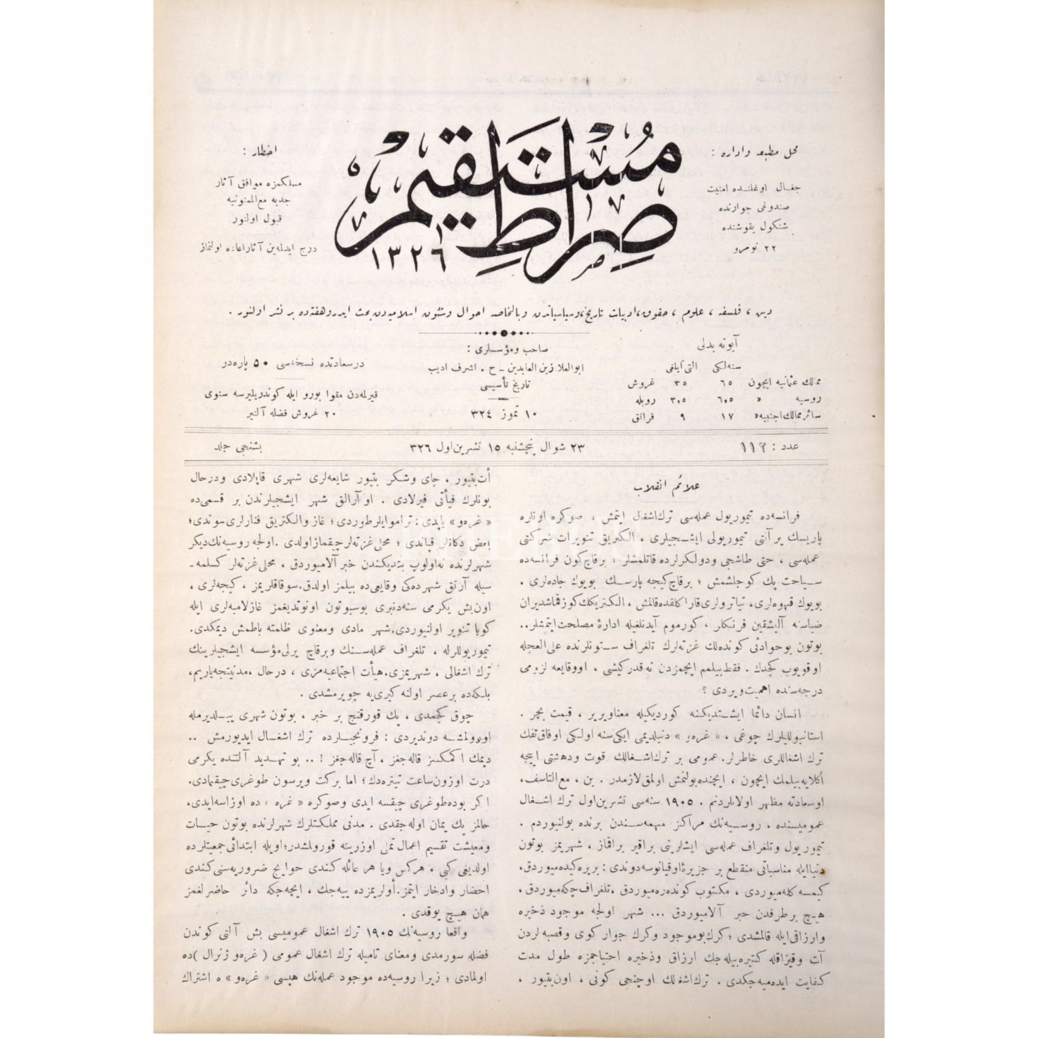 "Din, felsefe, edebiyat, hukuk" ve ilimlerden bahseden haftalık süreli yayın.