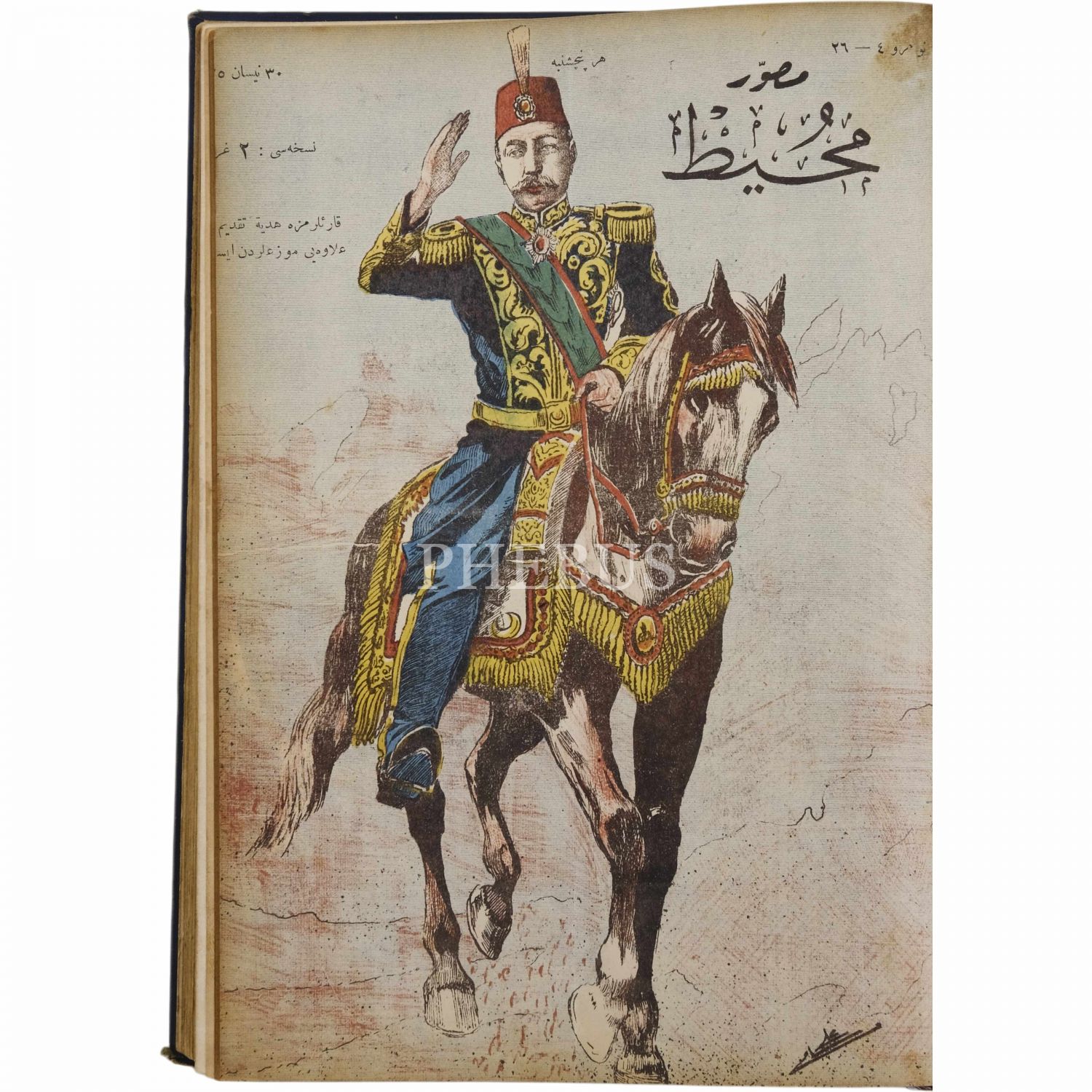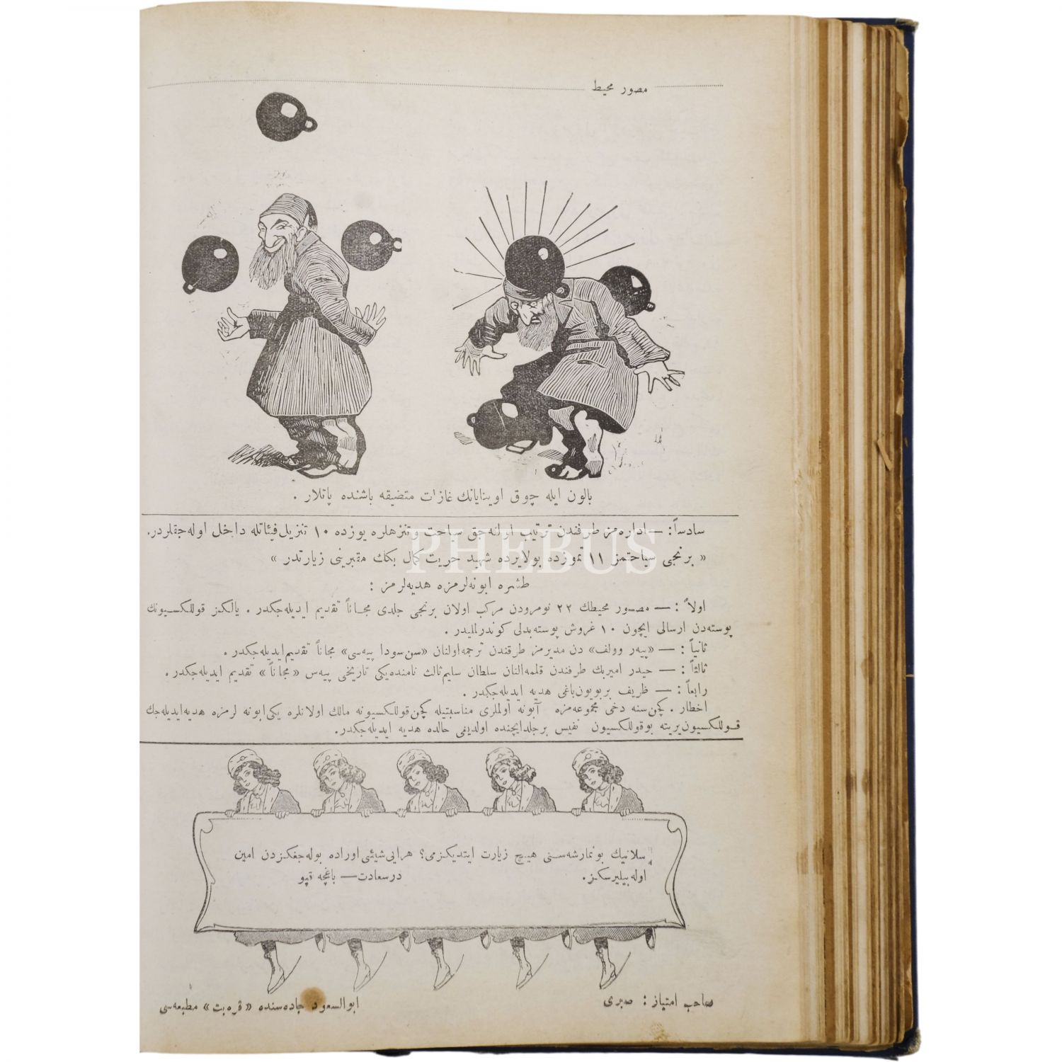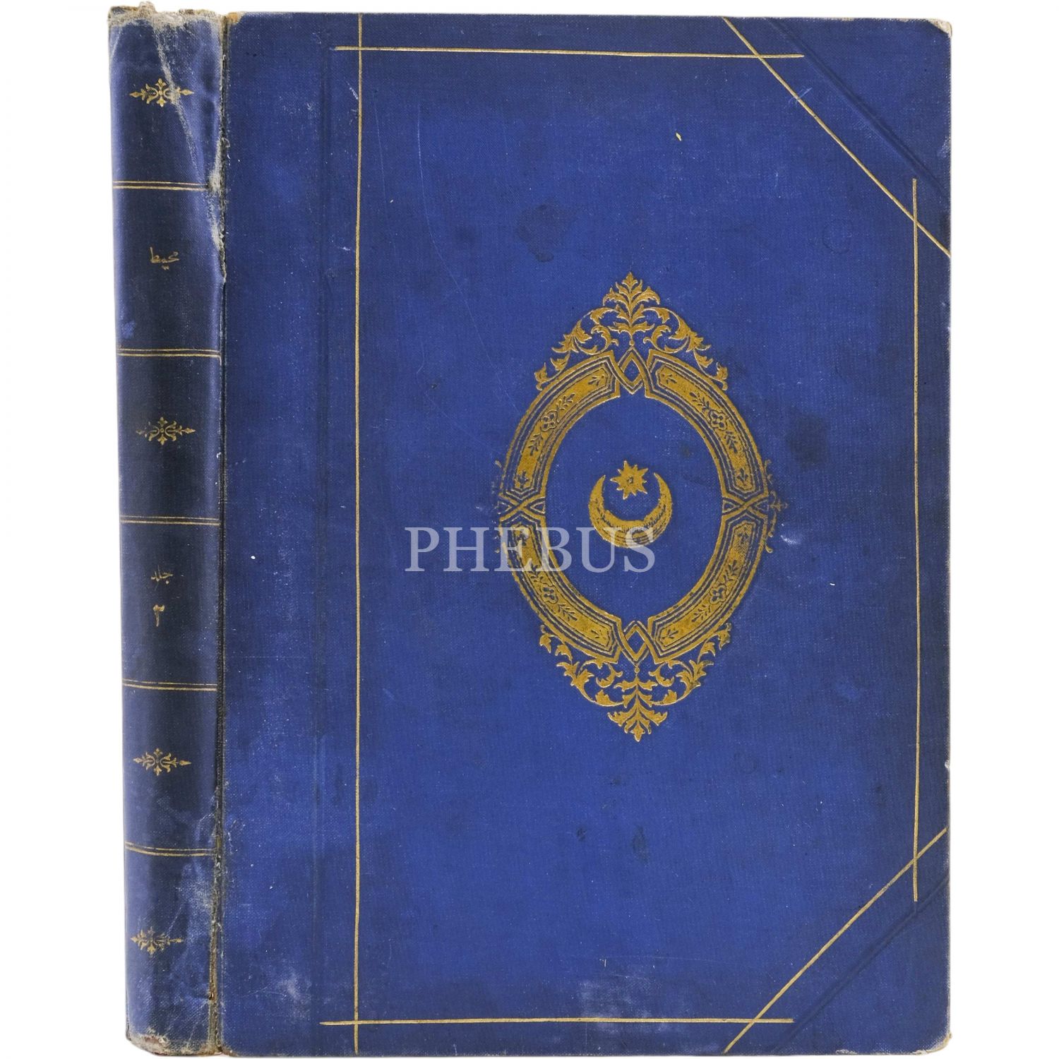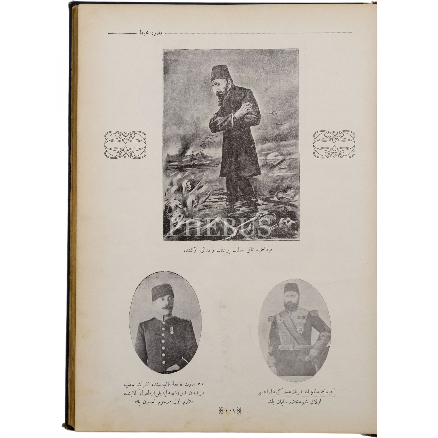 Hanedan tacı ve "F" inisiyalli özel cildinde, "MUSAVVER MUHİT" dergisinin Nisan 1325 ila Temmuz 1325 arasında yayımlanan 14 sayısı, 20x28 cm...
