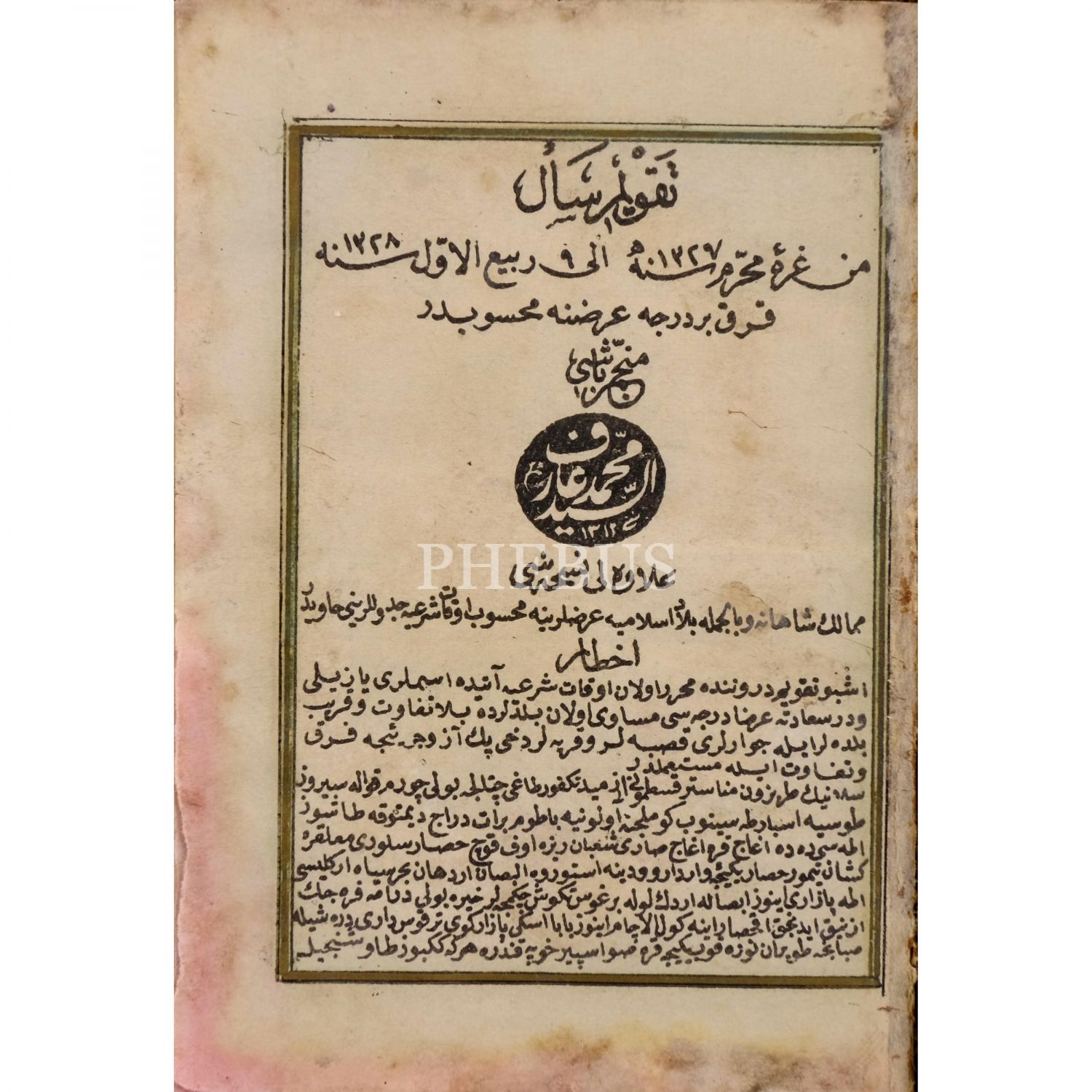 TAKVİM-İ SAL, Es-Seyyid Müneccimbaşı Mehmed Arif, 1328, 64 sayfa, 9x12 cm...
