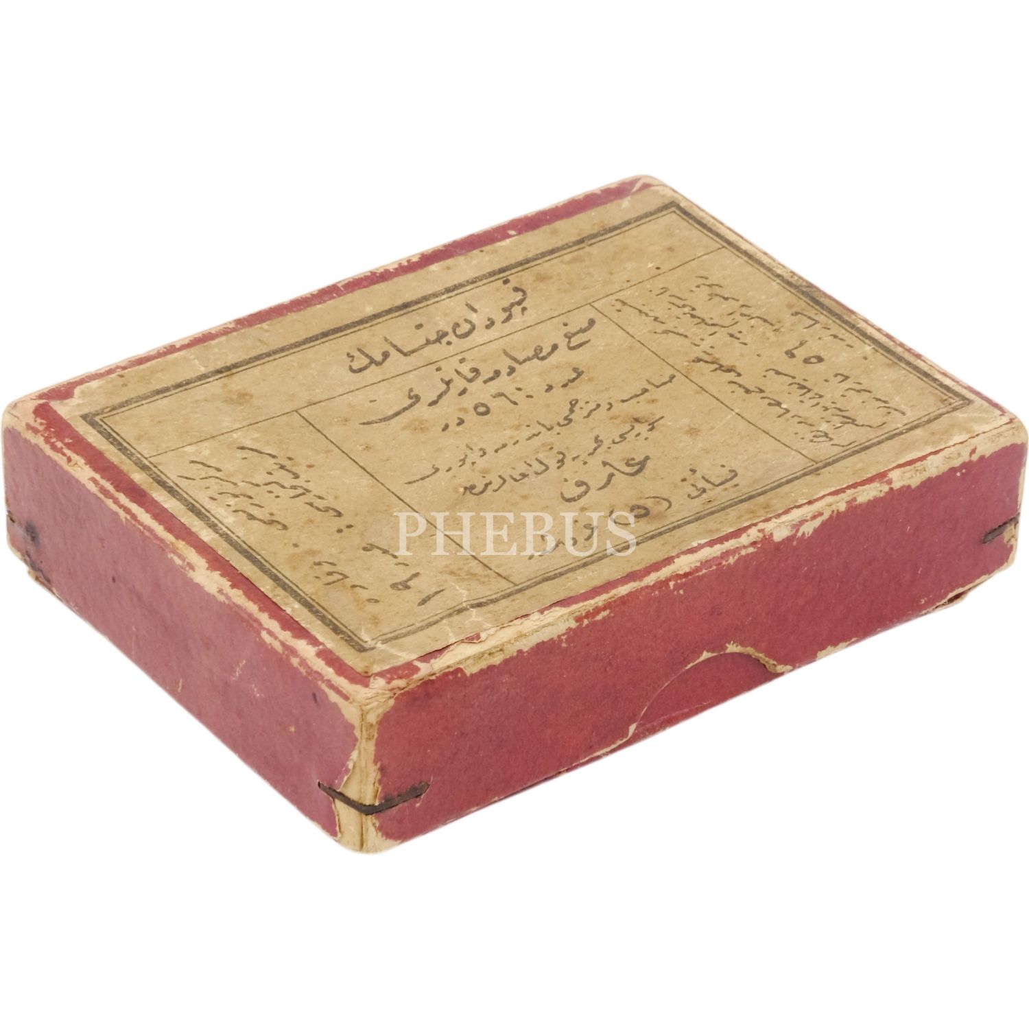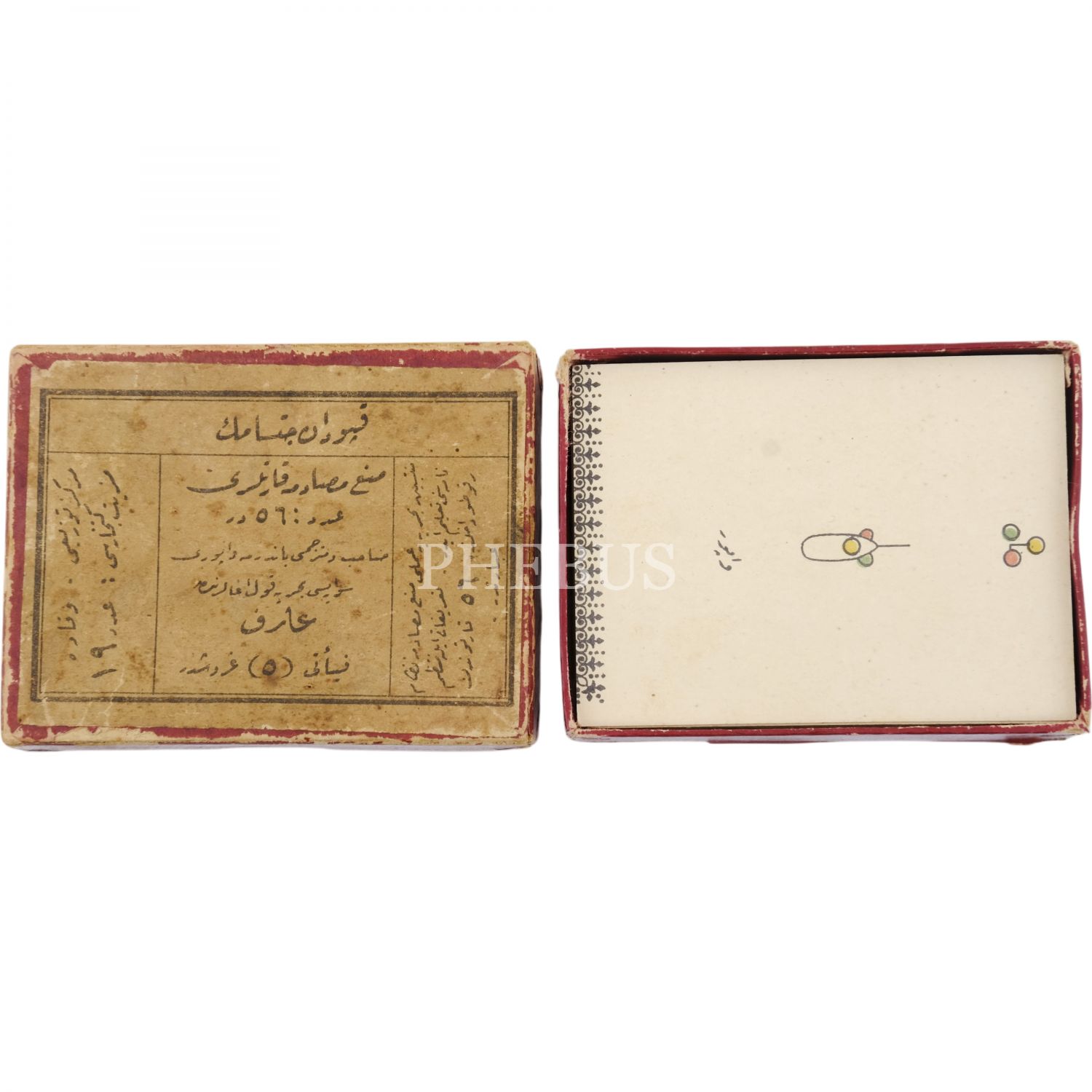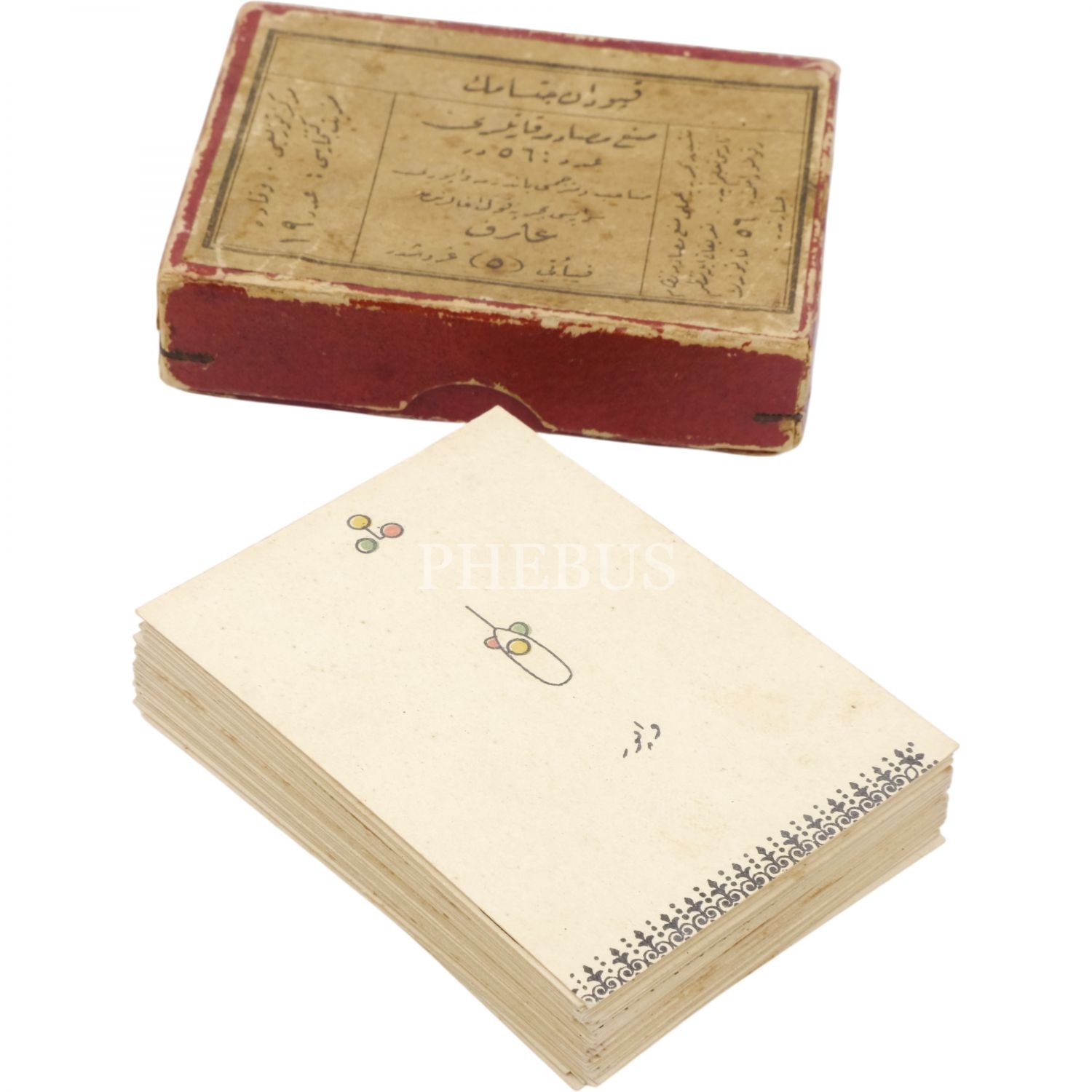 Bandırma Vapuru´nun kaptanı Arif Efendi tarafından tercüme edilerek hazırlanan "MEN´-İ MÜSADEME KARTLARI", kutu 9x7x2 cm, kartlar 6x8 cm...