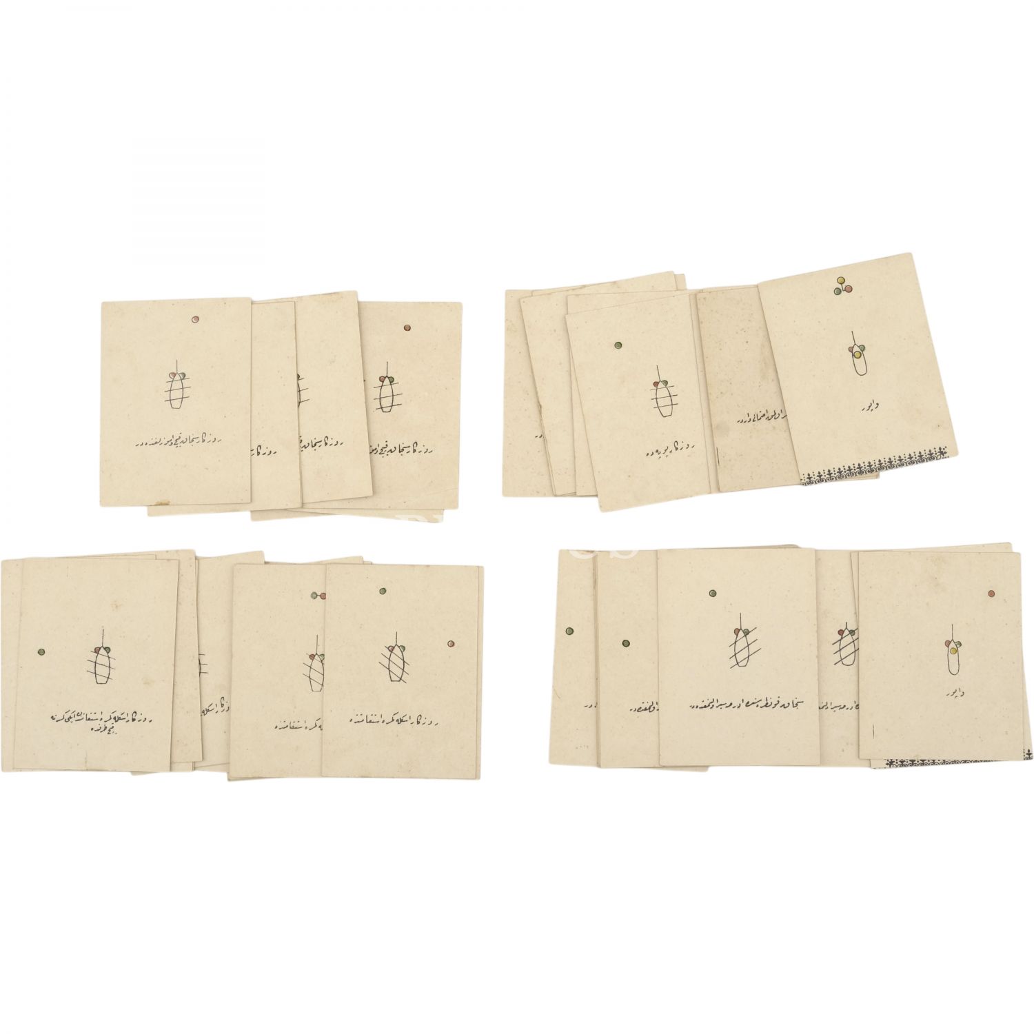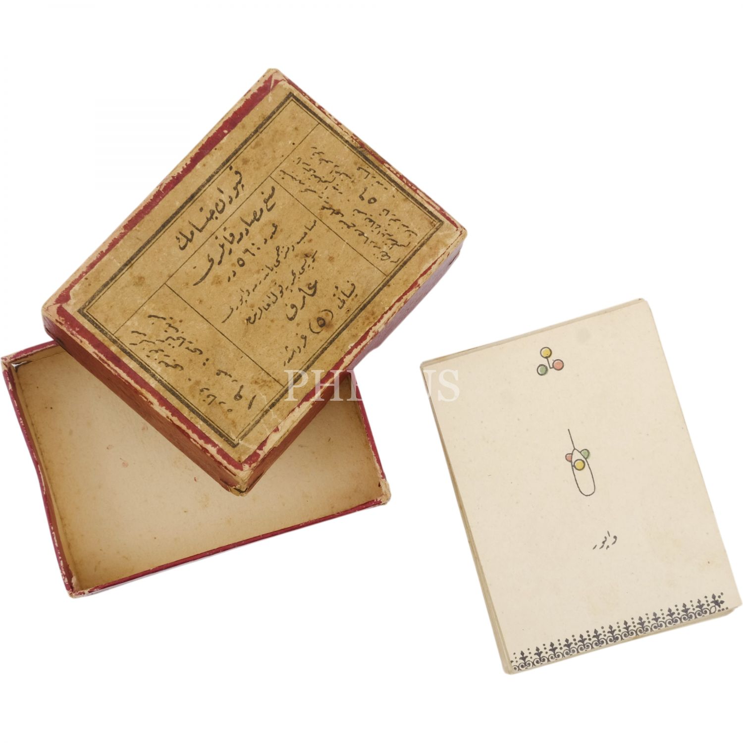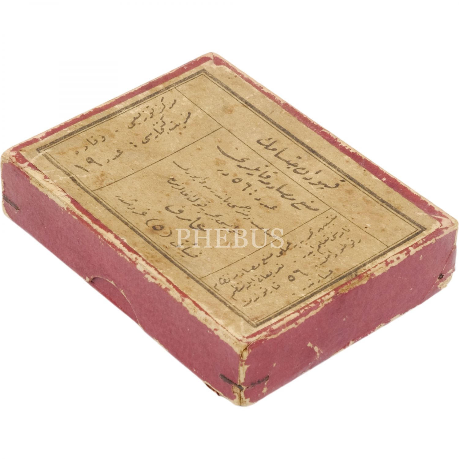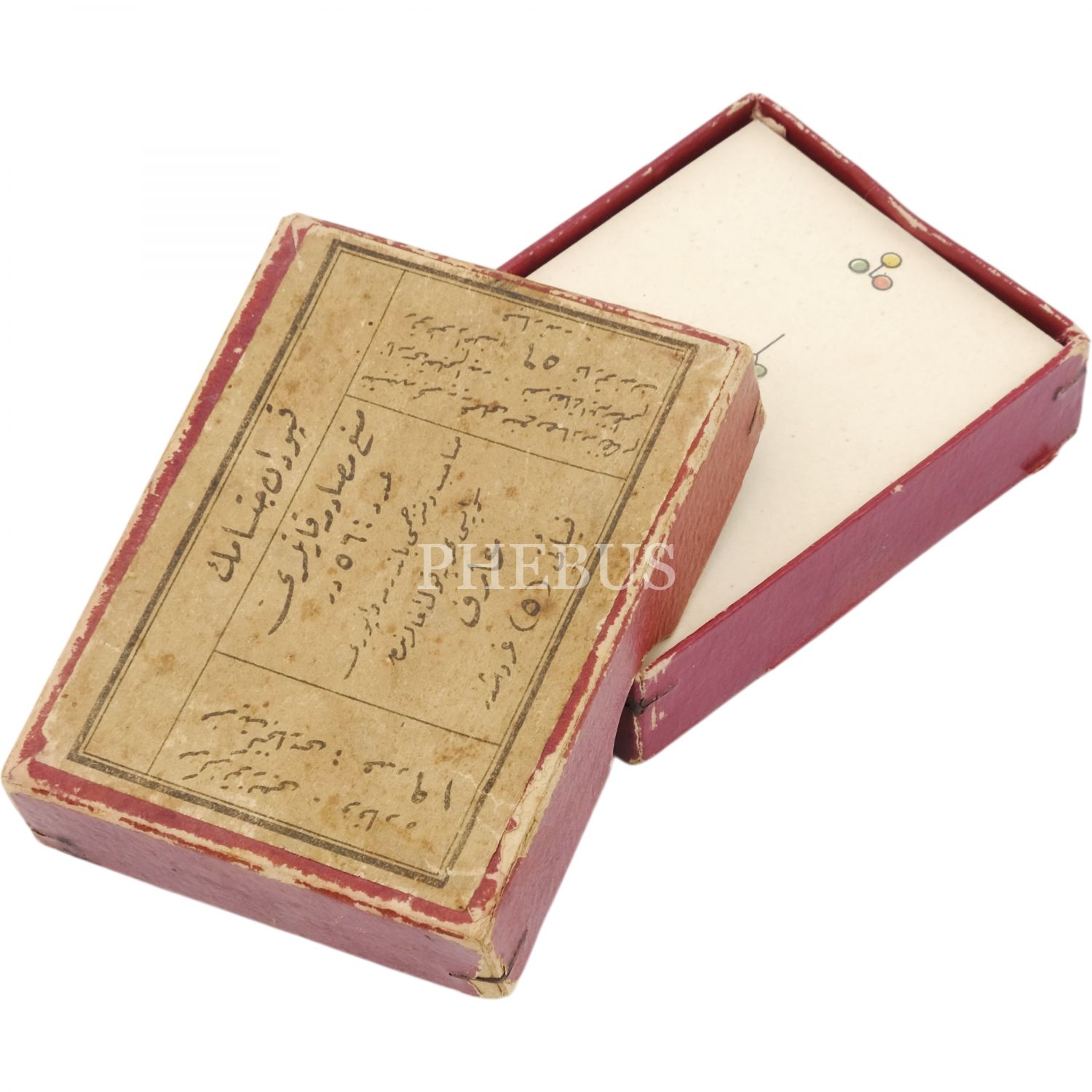 Bandırma Vapuru´nun kaptanı Arif Efendi tarafından tercüme edilerek hazırlanan "MEN´-İ MÜSADEME KARTLARI", kutu 9x7x2 cm, kartlar 6x8 cm...