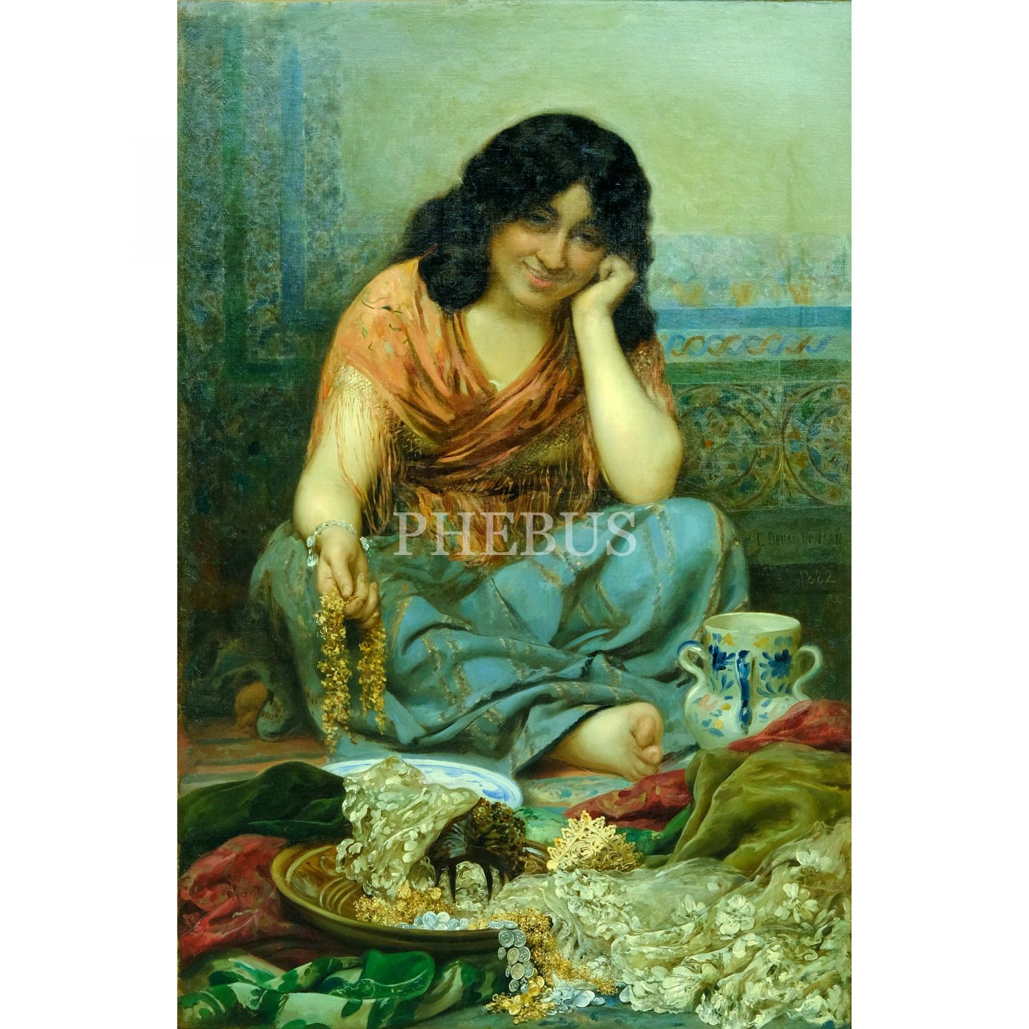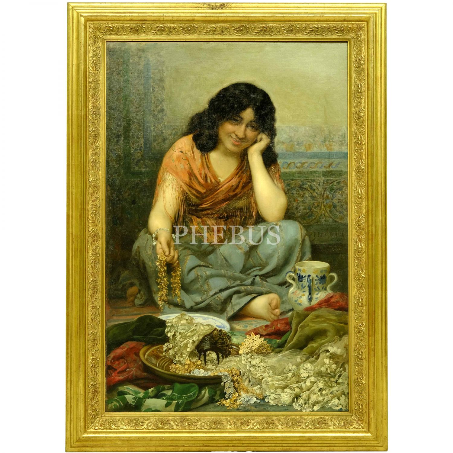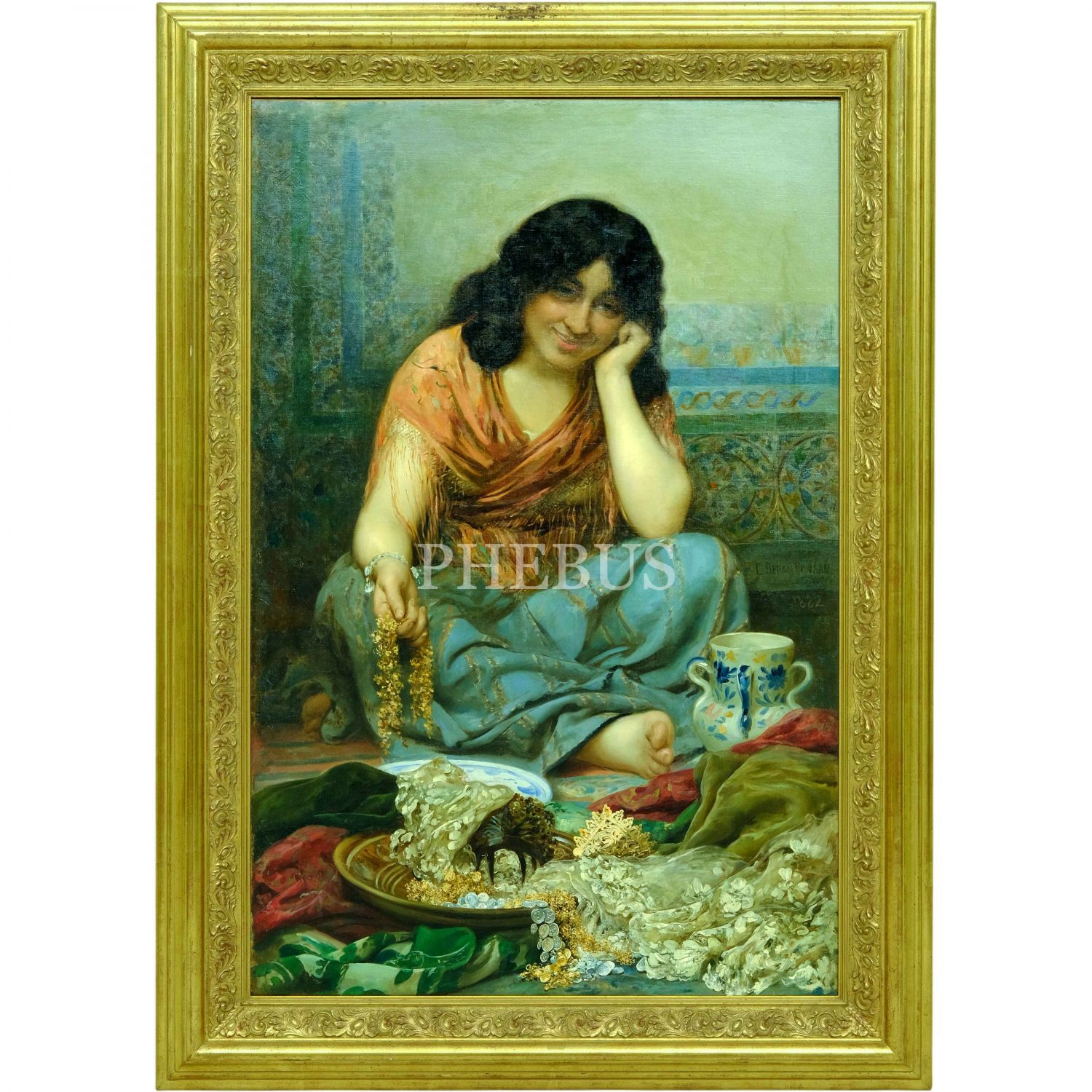 Edouard Debat-Ponsan´ın (1847-1913) "La Belle Ottomane" isimli tablosu, imzalı, 1882 tarihli, tuval üzerine yağlı boya, resim 72x110 cm, çerçeve 96x133 cm...