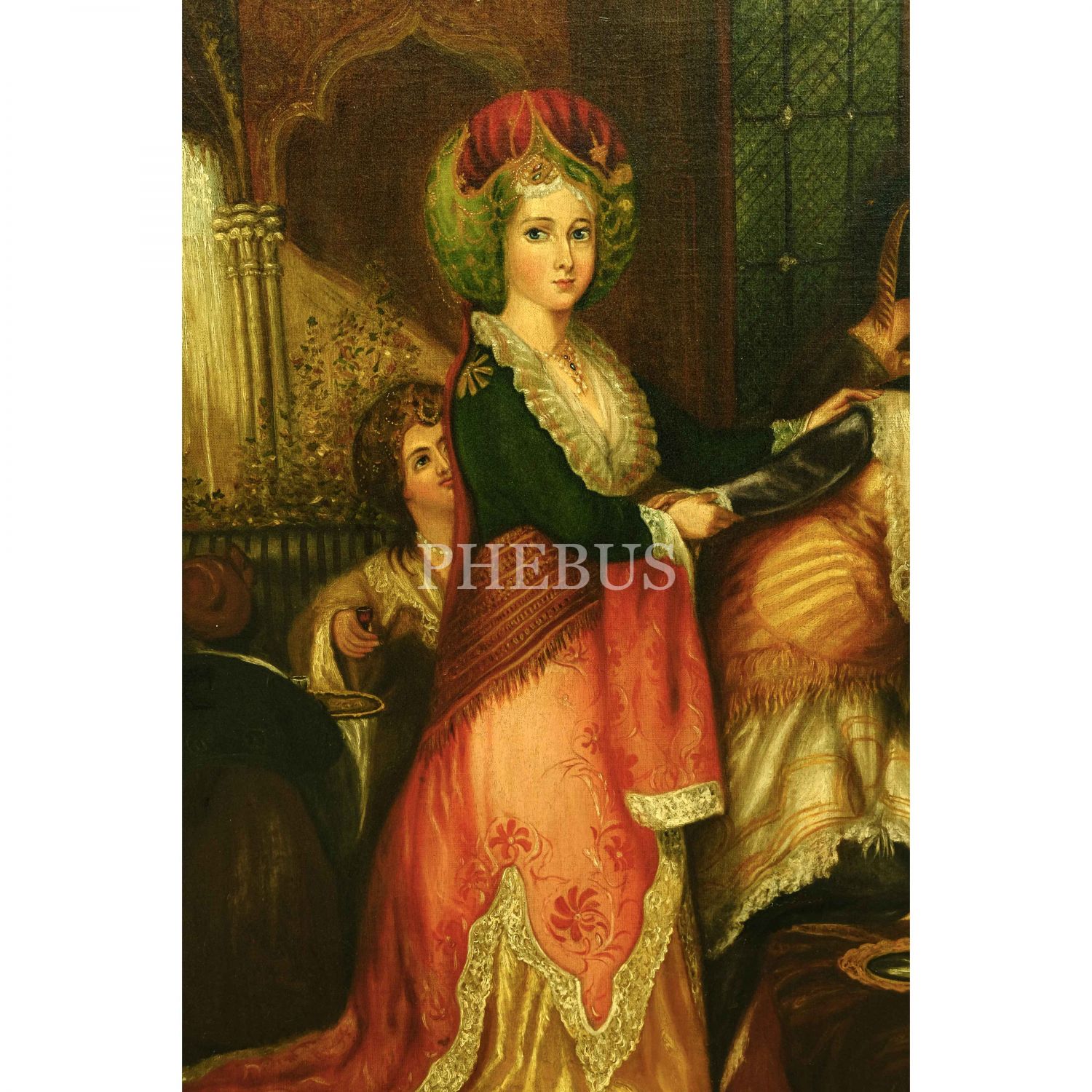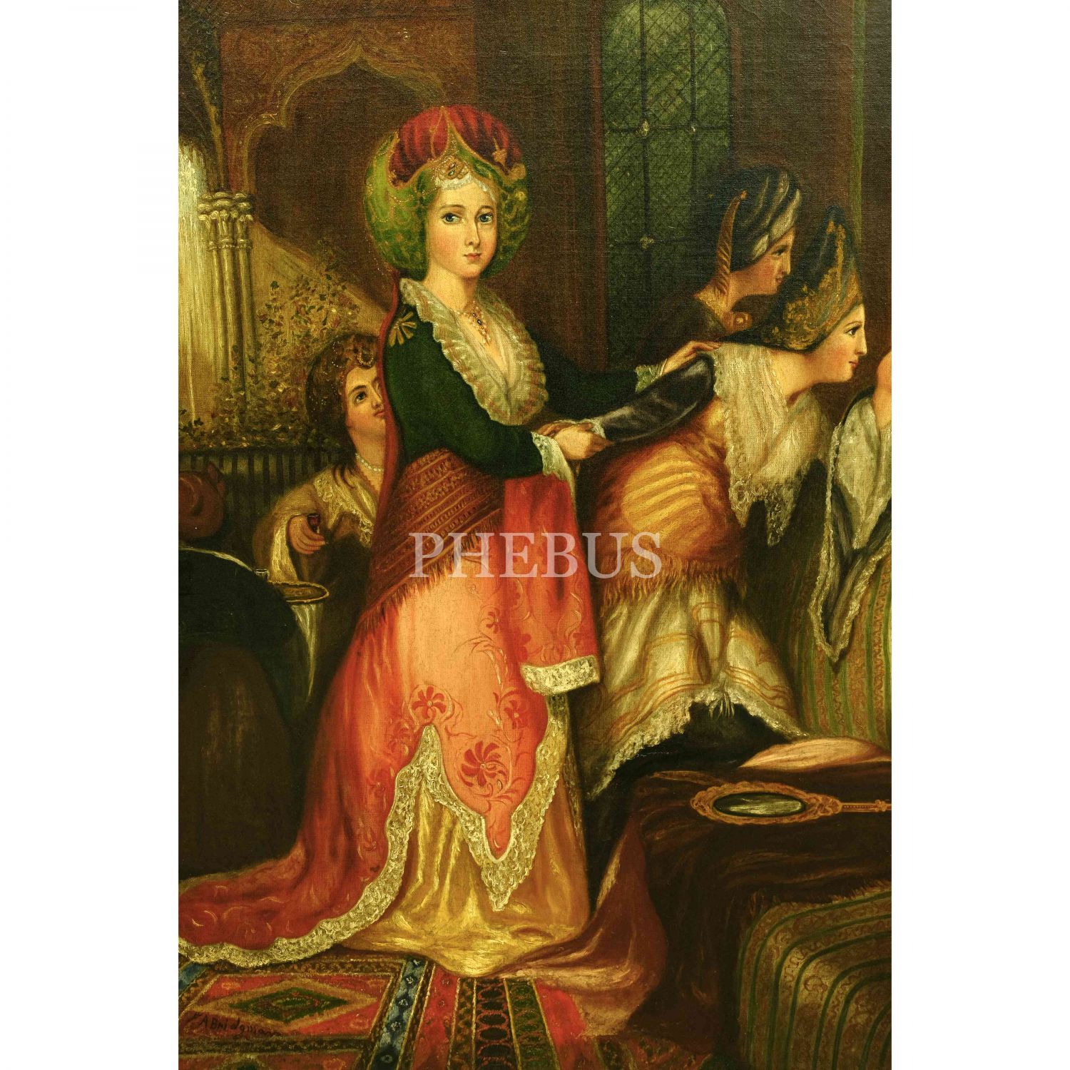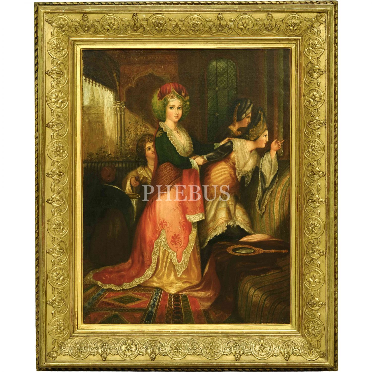 Amerikalı oryantalist ressam Frederick Arthur Bridgman'ın, Thomas Allom´un (1804-1872) "The Odalique or Favorite of the Harem, Constantinople" (1836) başlıklı gravürünü baz alarak yaptığı imzalı tablo, tuval üzerine yağlı boya, resim 60x80 cm, çerçeve 86x106 cm...