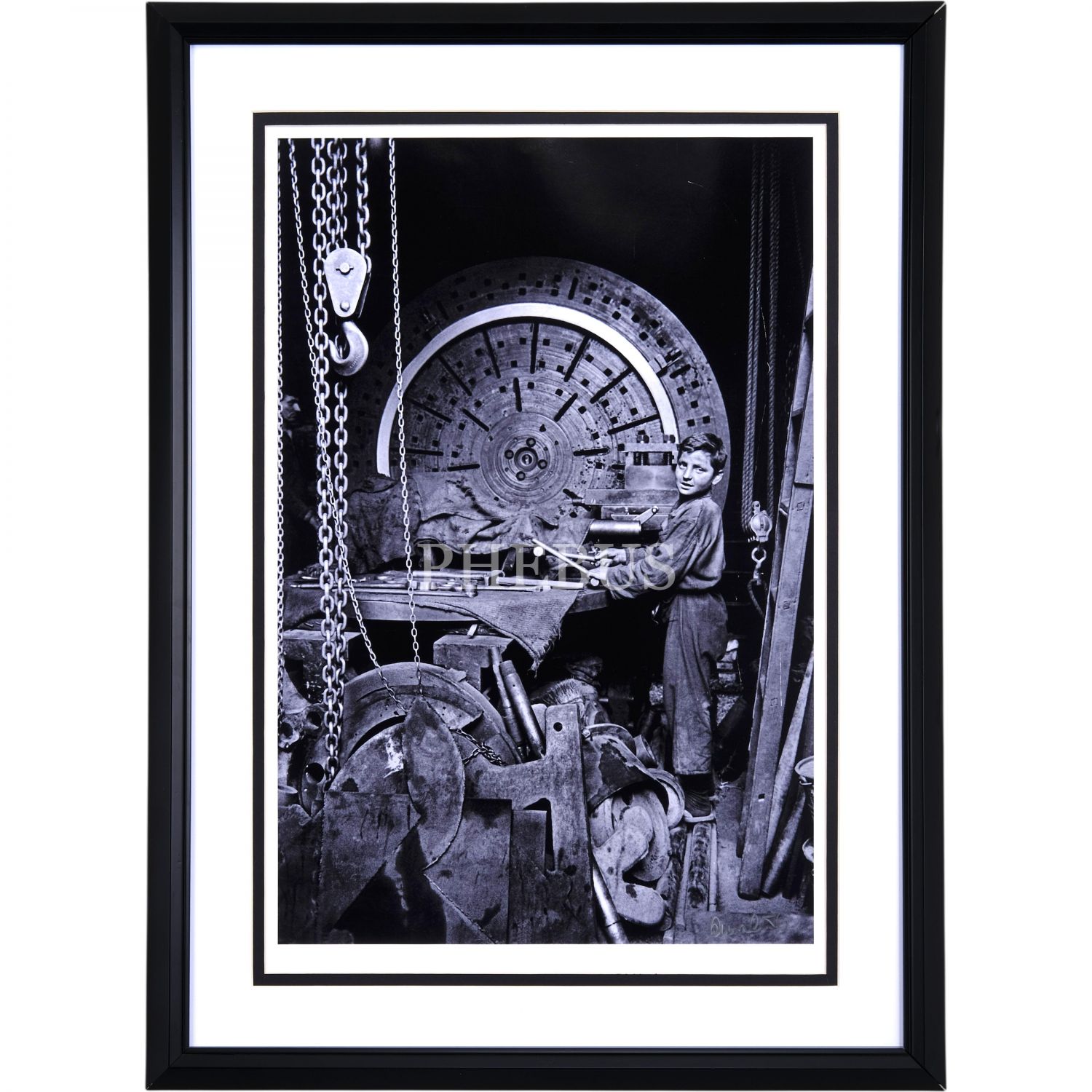 Ara Güler´den imzalı, "Kalafat Yerinde Makine ve İşçi Çocuk" fotoğrafı, 64x45 cm...