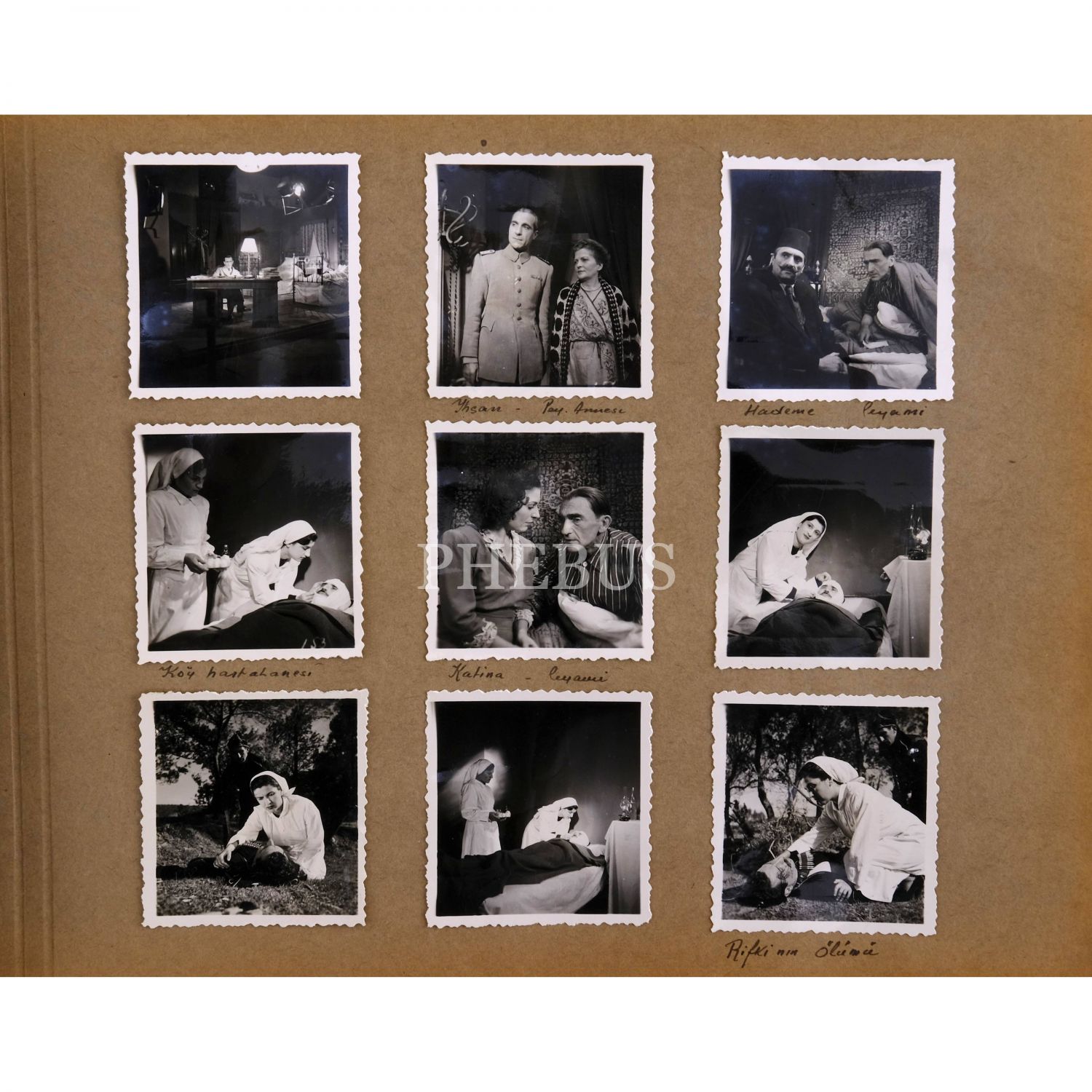 Yönetmen, oyuncu ve yazar Vedat Örfi Bengü´nün, Halide Edip Adıvar’ın aynı adlı romanından uyarlayarak 1950 yılında beyaz perdeye aktardığı ATEŞTEN GÖMLEK filminden 105 adet fotoğraf içeren albüm, her bir fotoğraf 6x6,5 cm, albüm 35x24 cm...
