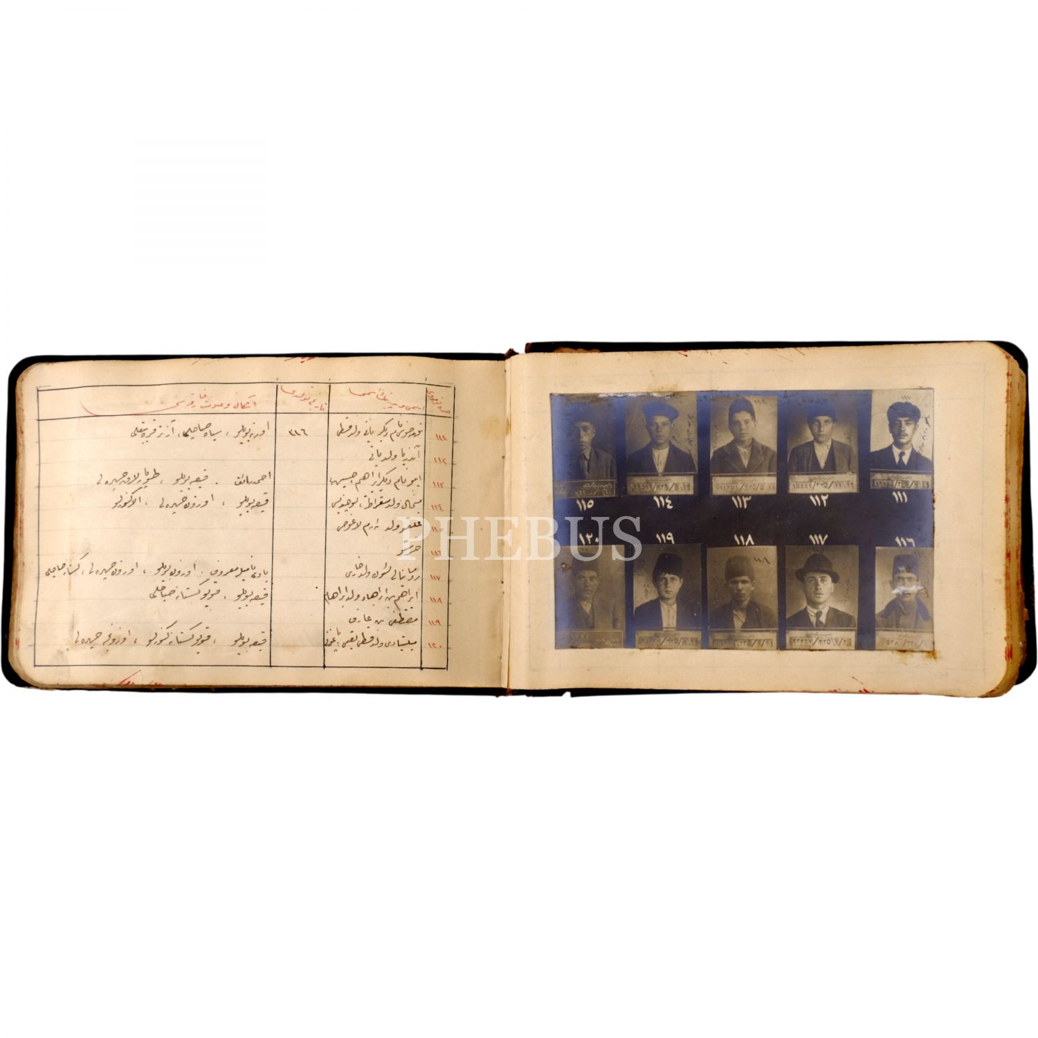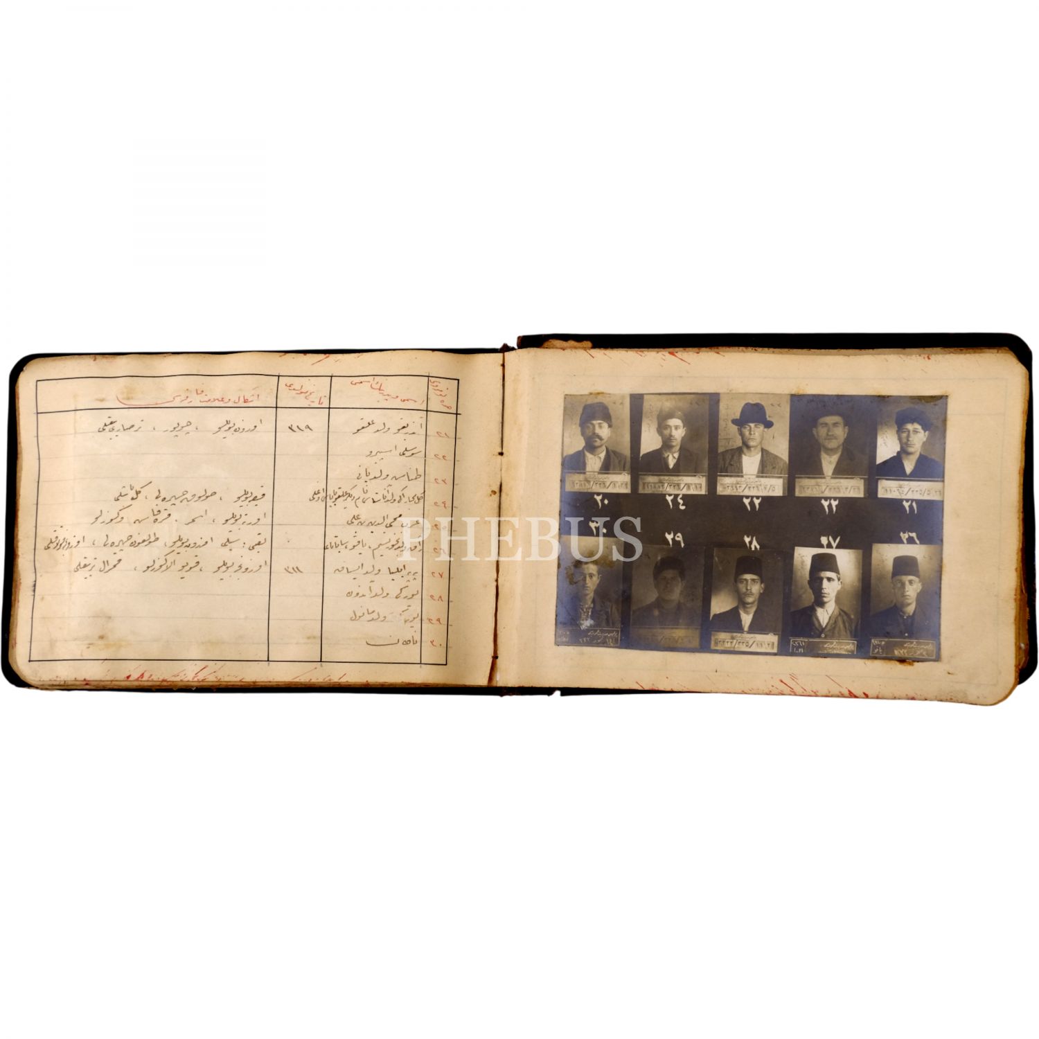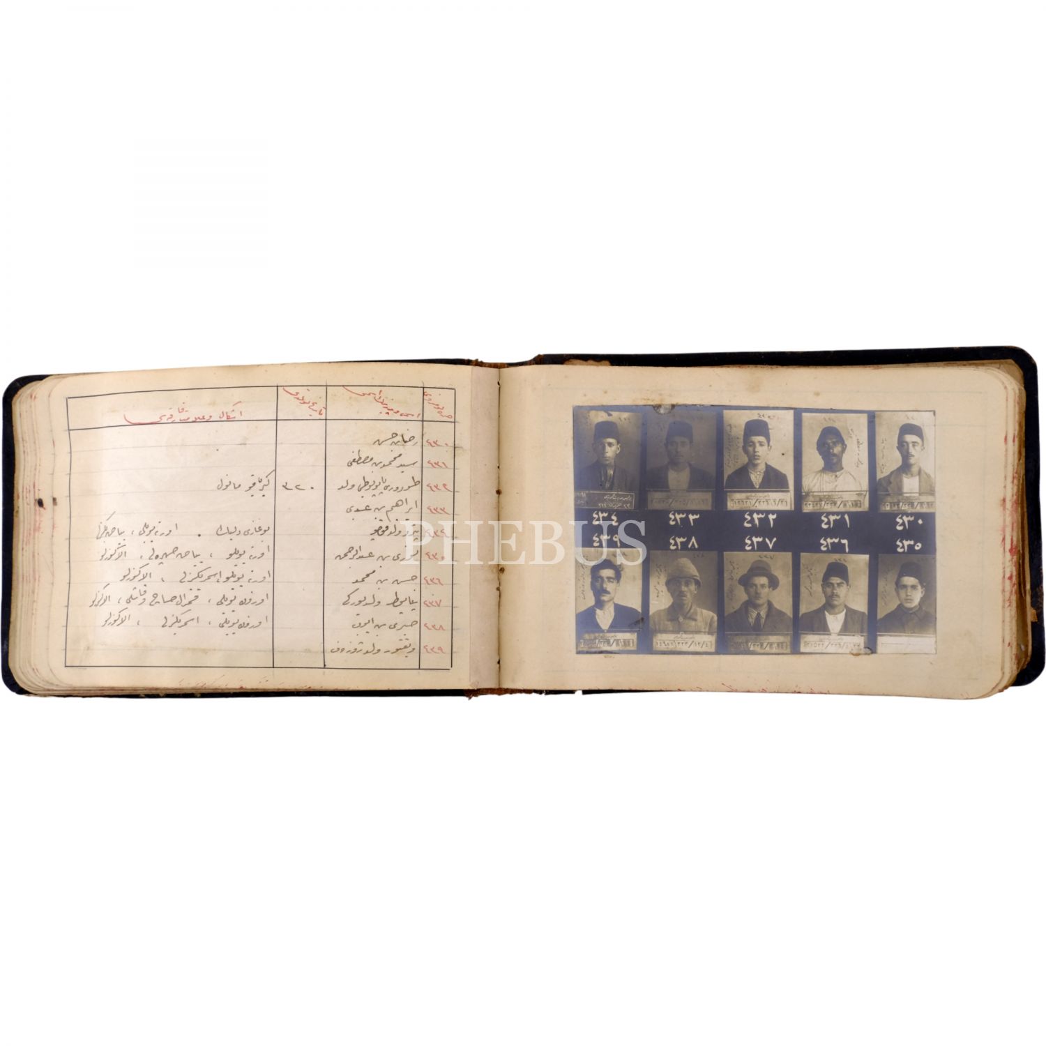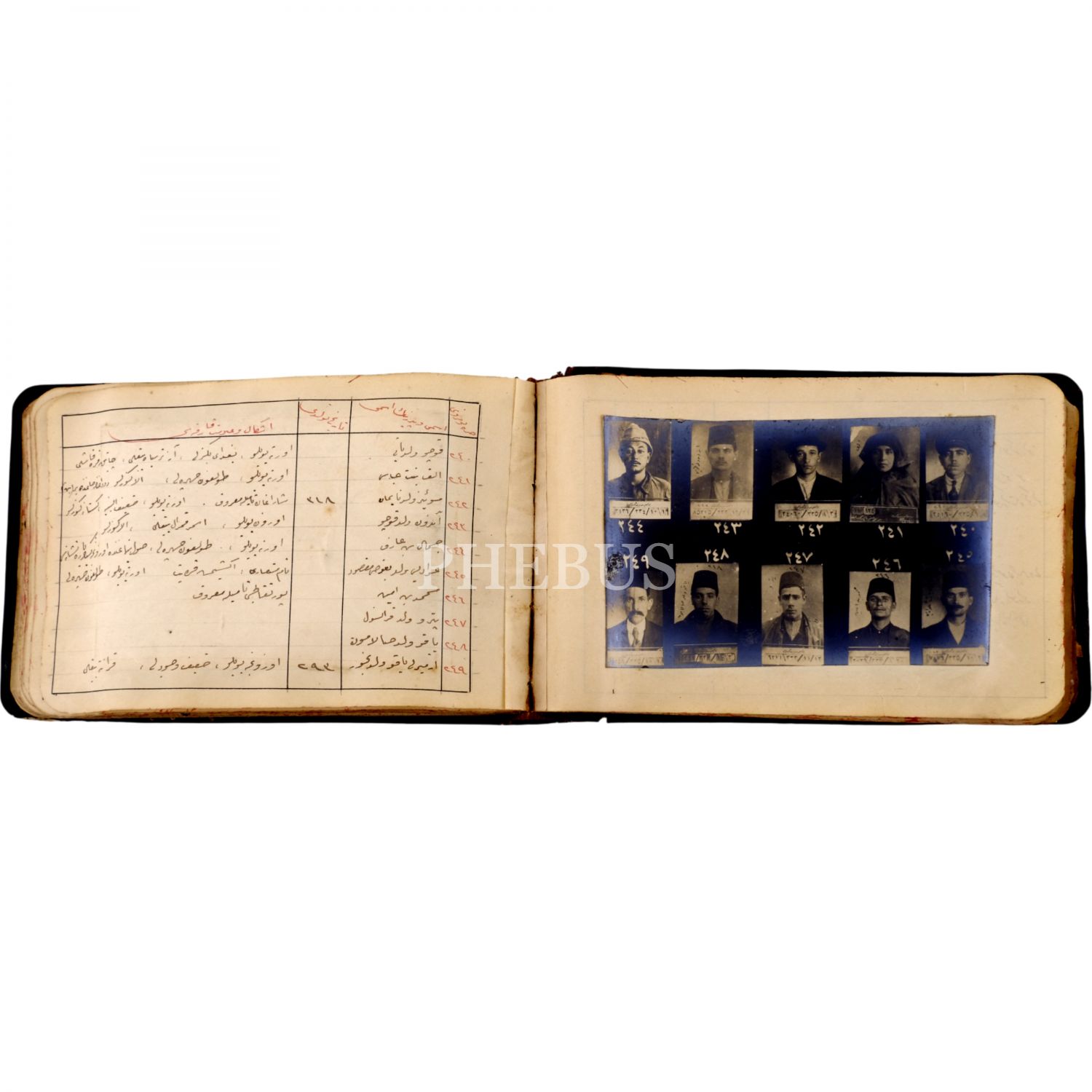 Osmanlı´nın son döneminde İstanbul´da faaliyet gösteren 550 yankesicinin kaydedildiği; suçluların Polis Müdüriyeti tarafından çekilmiş sabıka fotoğraflarıyla birlikte, sabıka numaralarının, isimlerinin, doğum tarihlerinin ve eşkallerinin yazılı olduğu defter, "Yankesici Koleksiyonu" yazılı orijinal cildinde, defter 16x10 cm, fotoğraflar 11x7,5 cm...