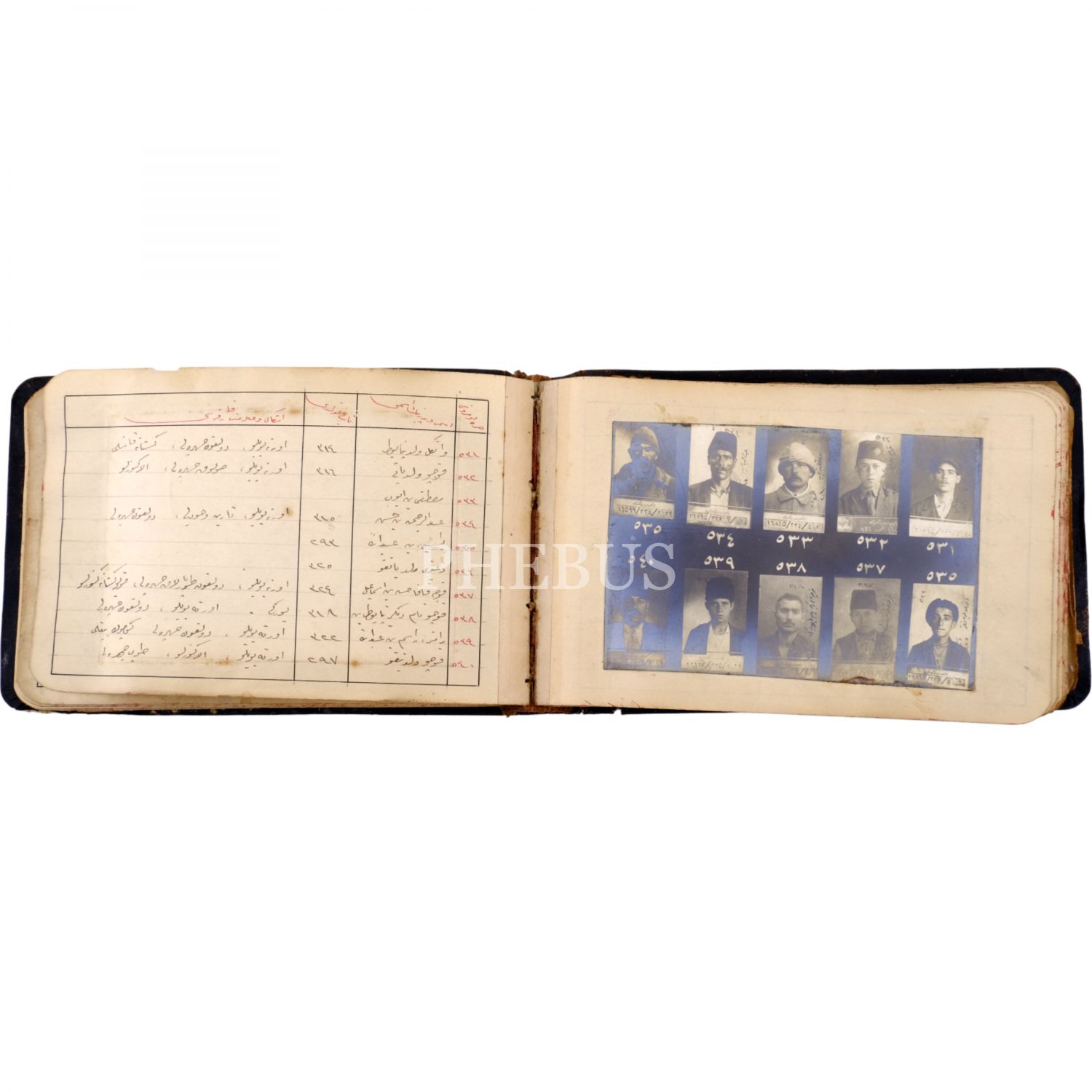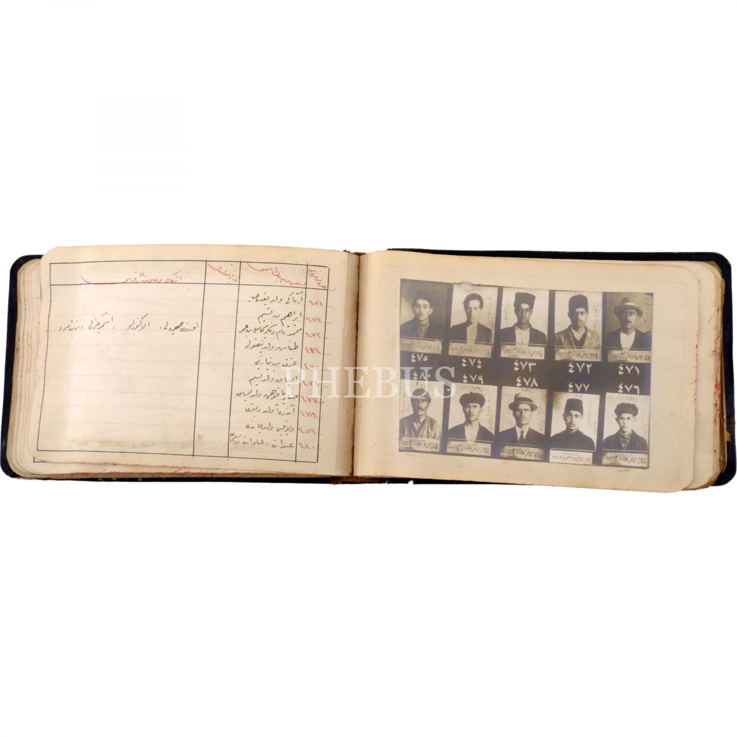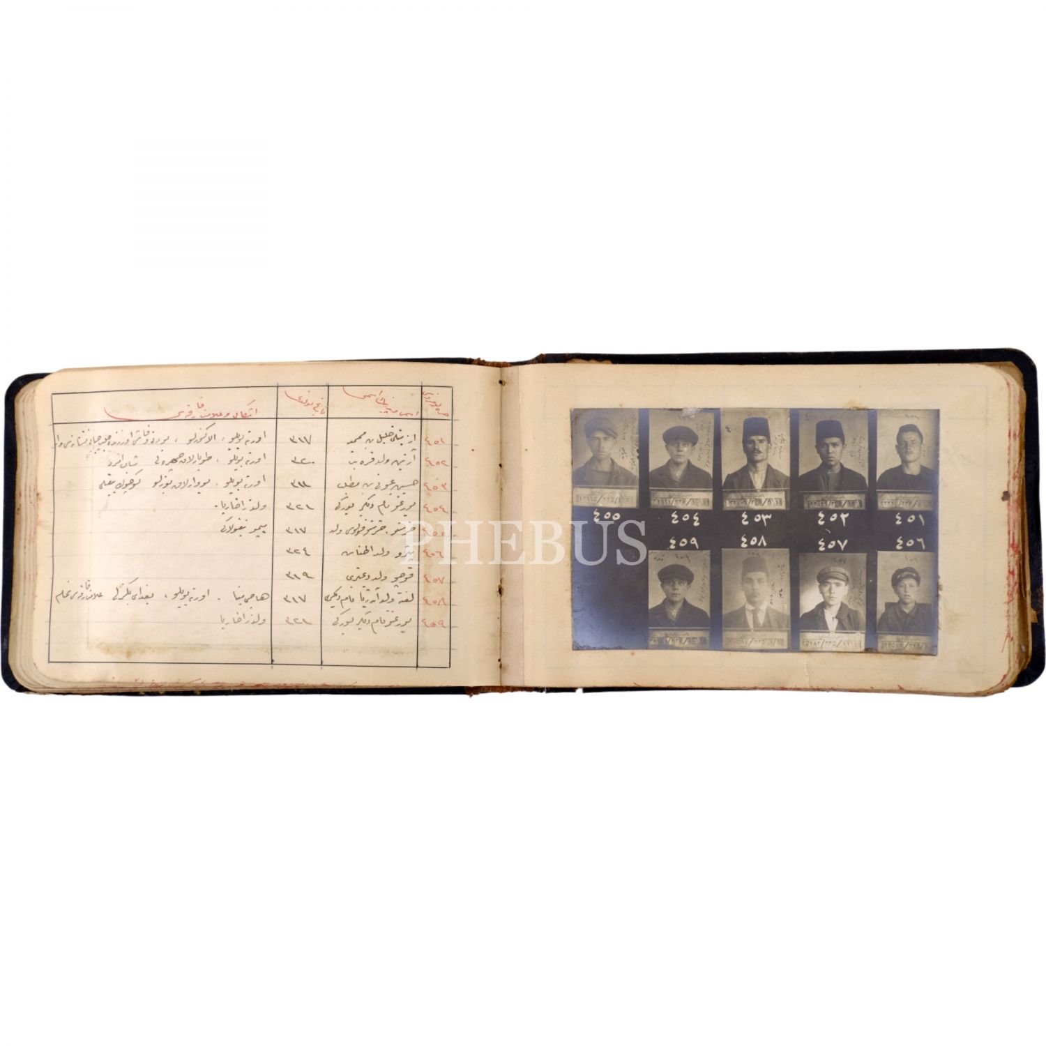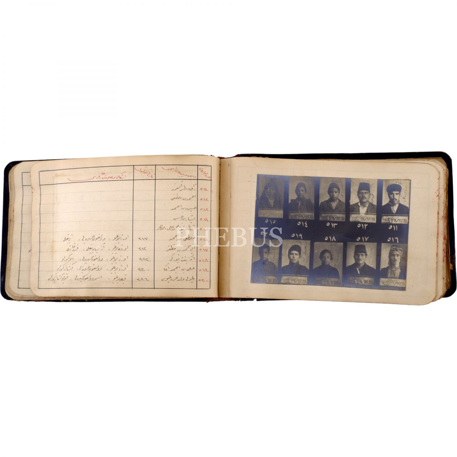 Osmanlı´nın son döneminde İstanbul´da faaliyet gösteren 550 yankesicinin kaydedildiği; suçluların Polis Müdüriyeti tarafından çekilmiş sabıka fotoğraflarıyla birlikte, sabıka numaralarının, isimlerinin, doğum tarihlerinin ve eşkallerinin yazılı olduğu defter, "Yankesici Koleksiyonu" yazılı orijinal cildinde, defter 16x10 cm, fotoğraflar 11x7,5 cm...