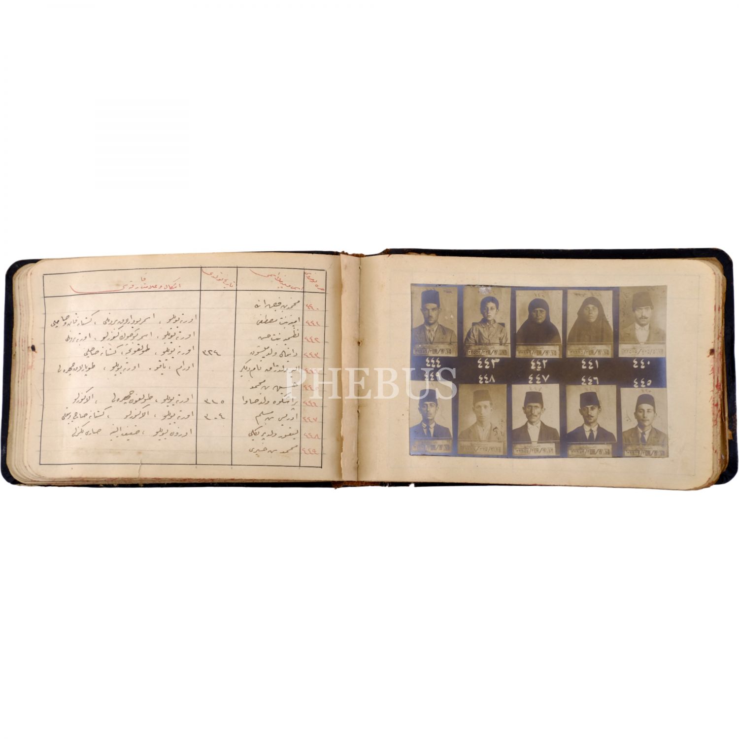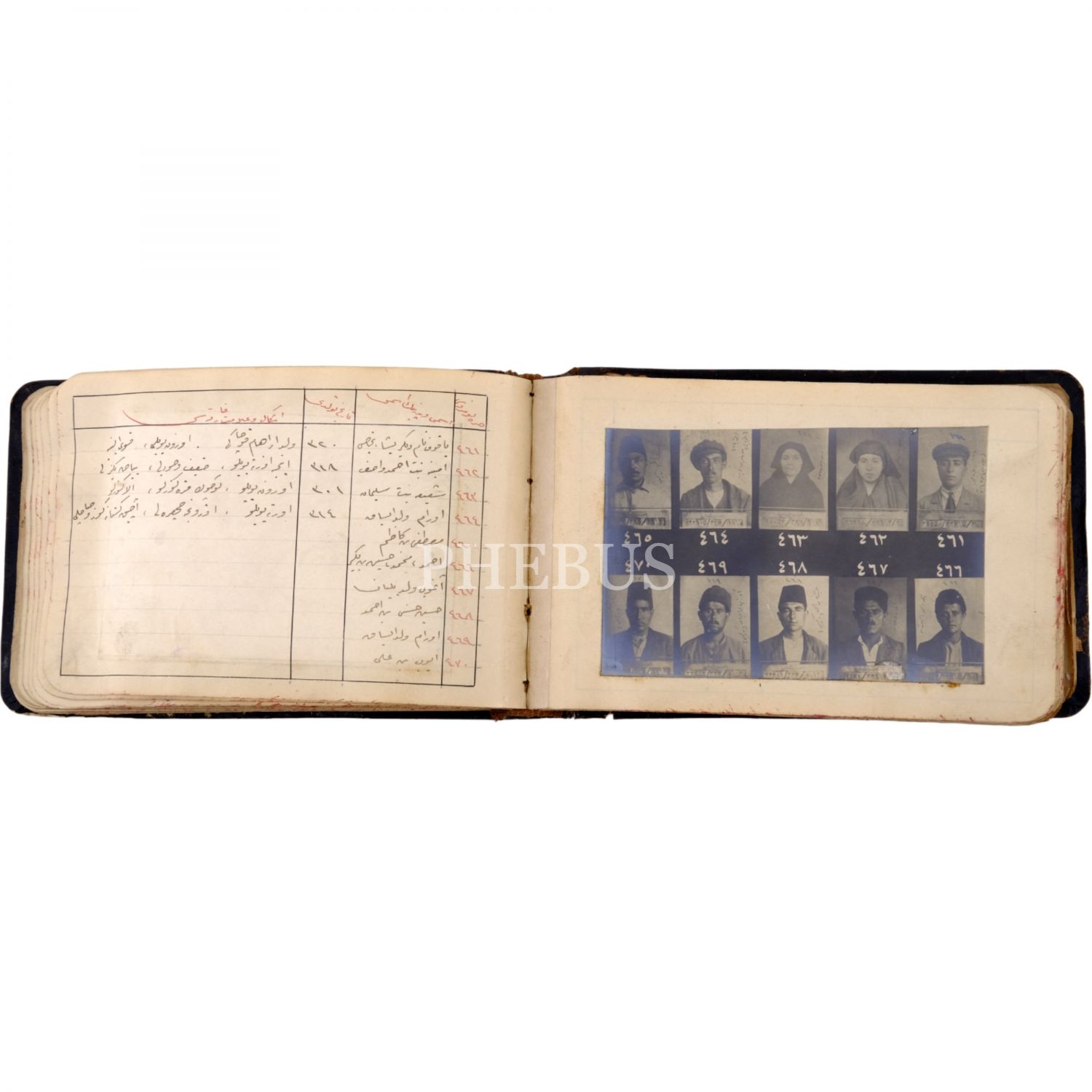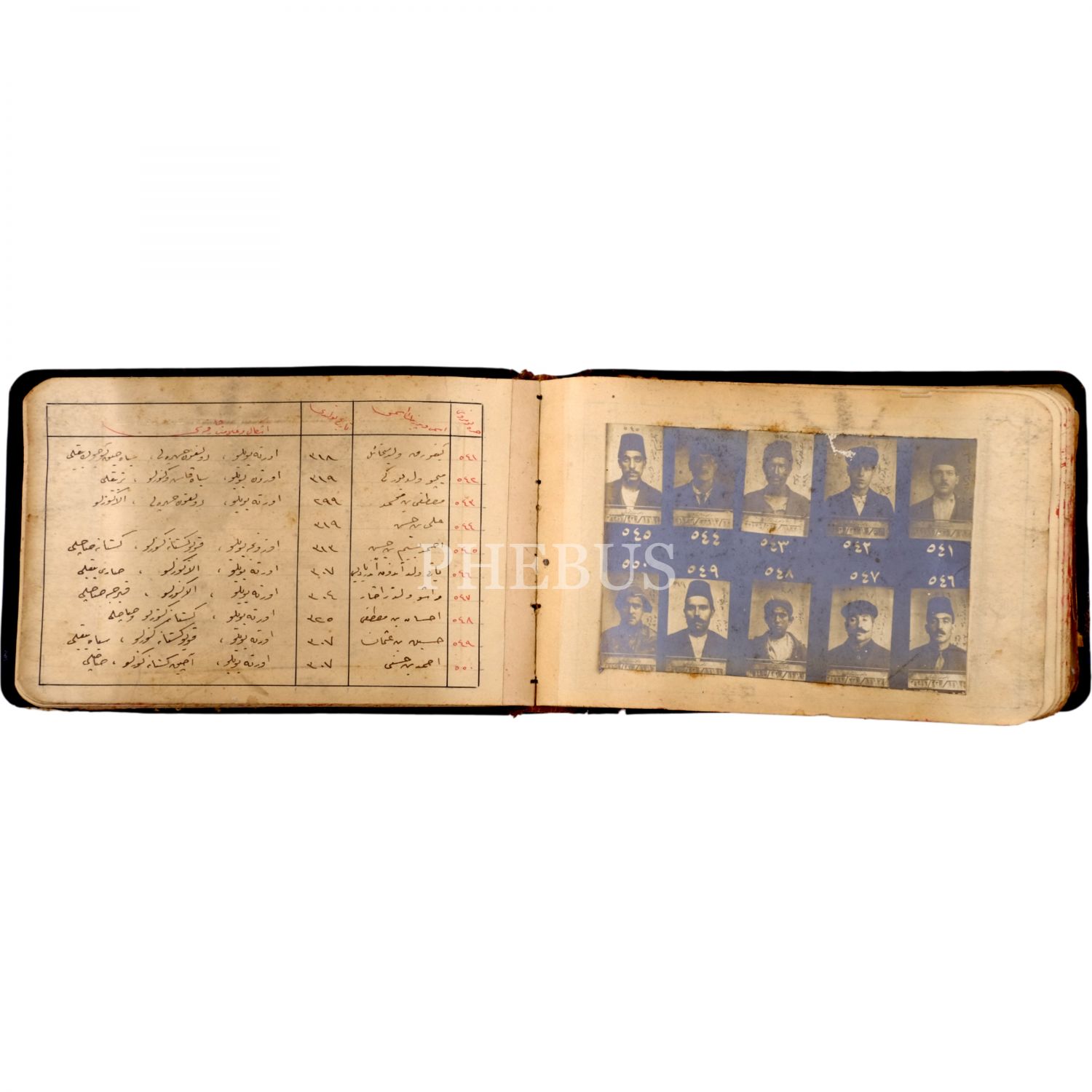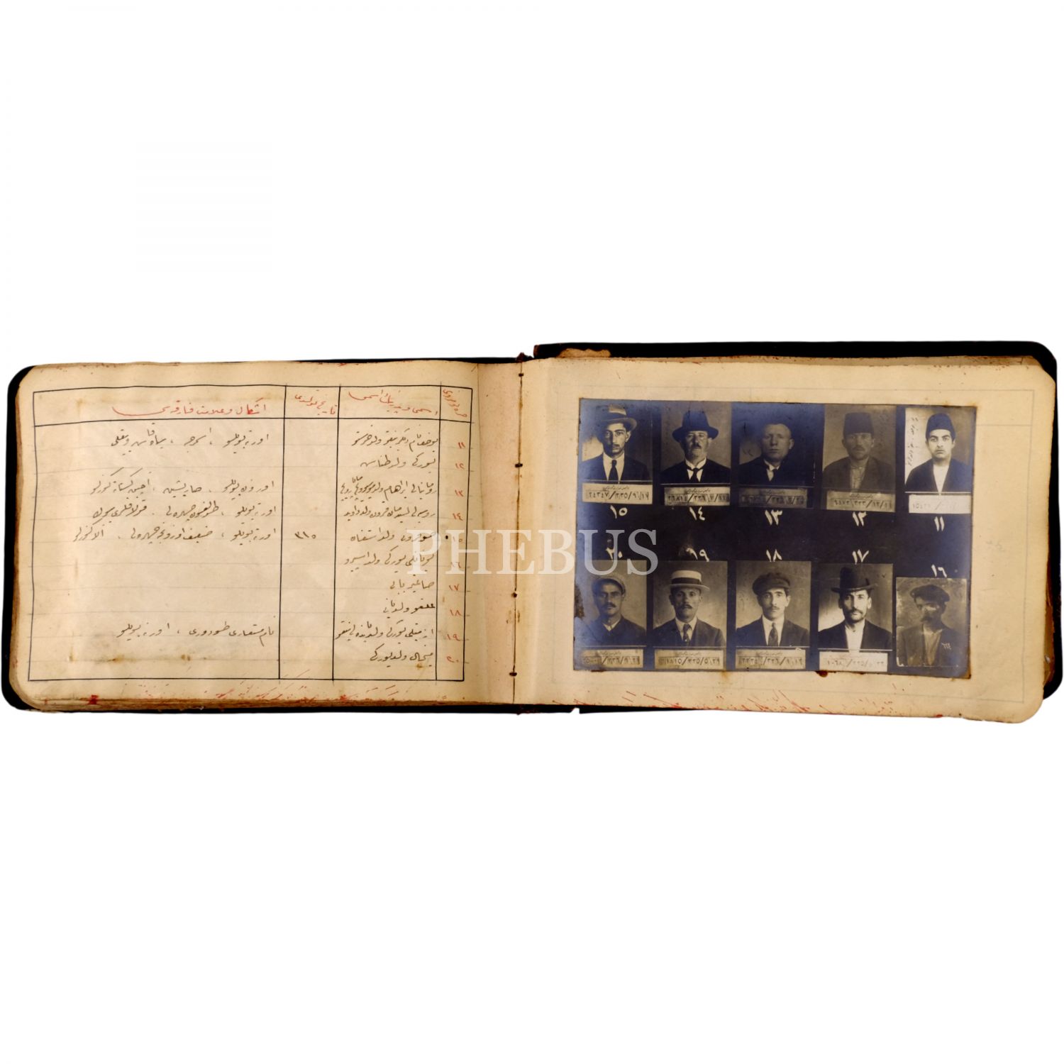 Osmanlı´nın son döneminde İstanbul´da faaliyet gösteren 550 yankesicinin kaydedildiği; suçluların Polis Müdüriyeti tarafından çekilmiş sabıka fotoğraflarıyla birlikte, sabıka numaralarının, isimlerinin, doğum tarihlerinin ve eşkallerinin yazılı olduğu defter, "Yankesici Koleksiyonu" yazılı orijinal cildinde, defter 16x10 cm, fotoğraflar 11x7,5 cm...