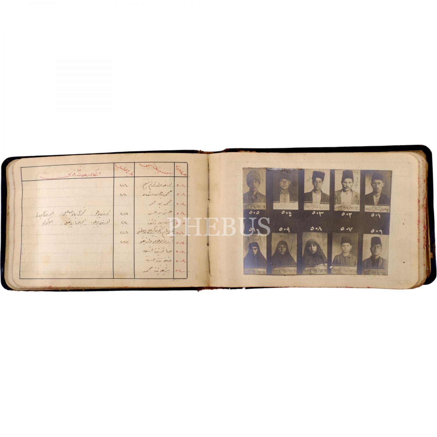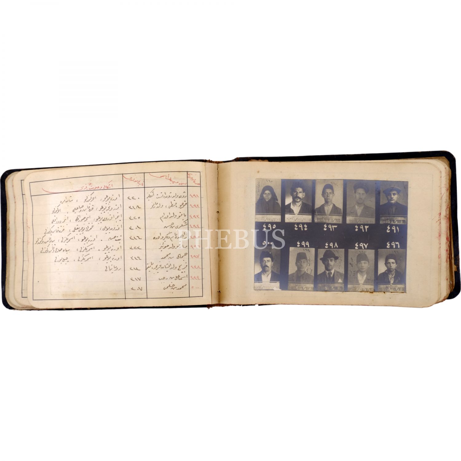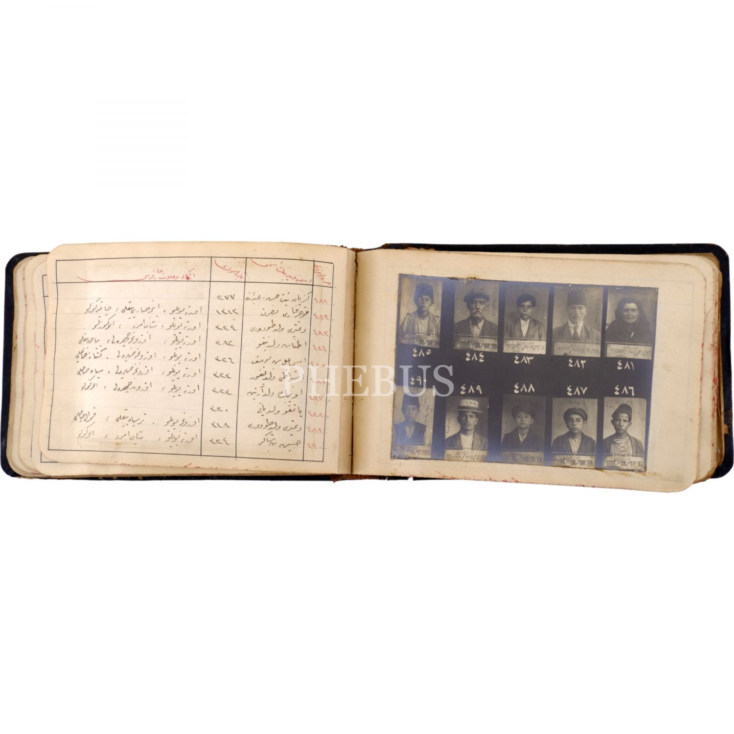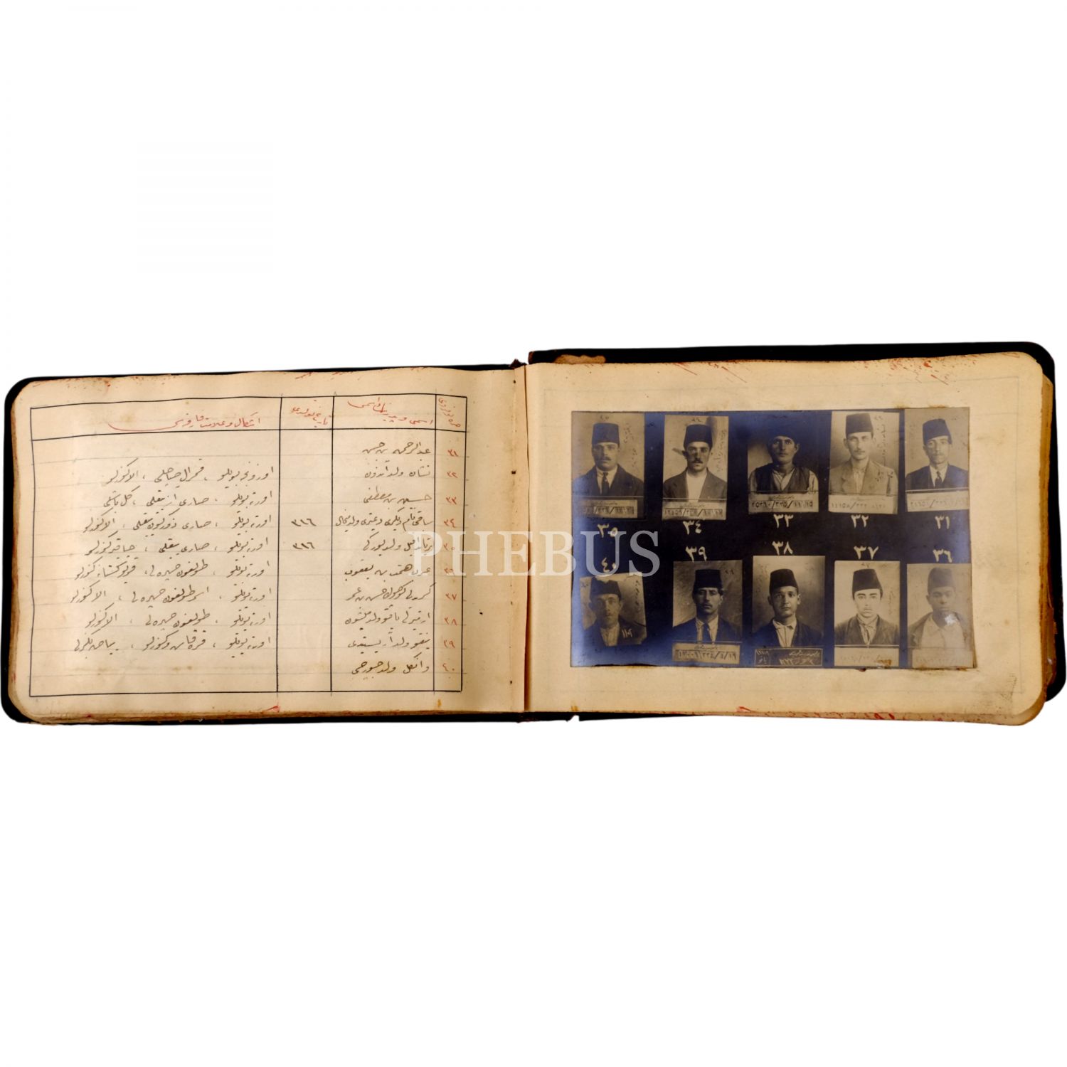 Osmanlı´nın son döneminde İstanbul´da faaliyet gösteren 550 yankesicinin kaydedildiği; suçluların Polis Müdüriyeti tarafından çekilmiş sabıka fotoğraflarıyla birlikte, sabıka numaralarının, isimlerinin, doğum tarihlerinin ve eşkallerinin yazılı olduğu defter, "Yankesici Koleksiyonu" yazılı orijinal cildinde, defter 16x10 cm, fotoğraflar 11x7,5 cm...