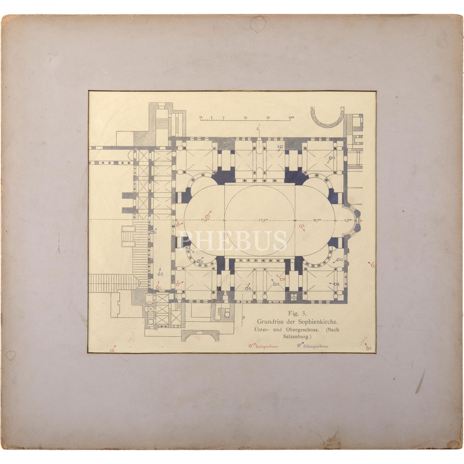 Albüm içinde Wilhelm Salzenberg'in çalışmalarından esinlenilerek hazırlanmış, Ayasofya'nın alt ve üst katlarını gösteren kat planı çizimi (29x32 cm) ve (ortalama) 37x37 cm boyutunda 17 büyük; (ortalama) 17x18 cm boyutunda 2 küçük fotoğraf yer almaktadır. Her bir fotoğraf paspartuya yerleştirilmiştir. Fotoğraflar dönemin en ileri ölçü-görüntü tekniklerinden biri olan fotogrametri yöntemi kullanılarak çekilmiştir.