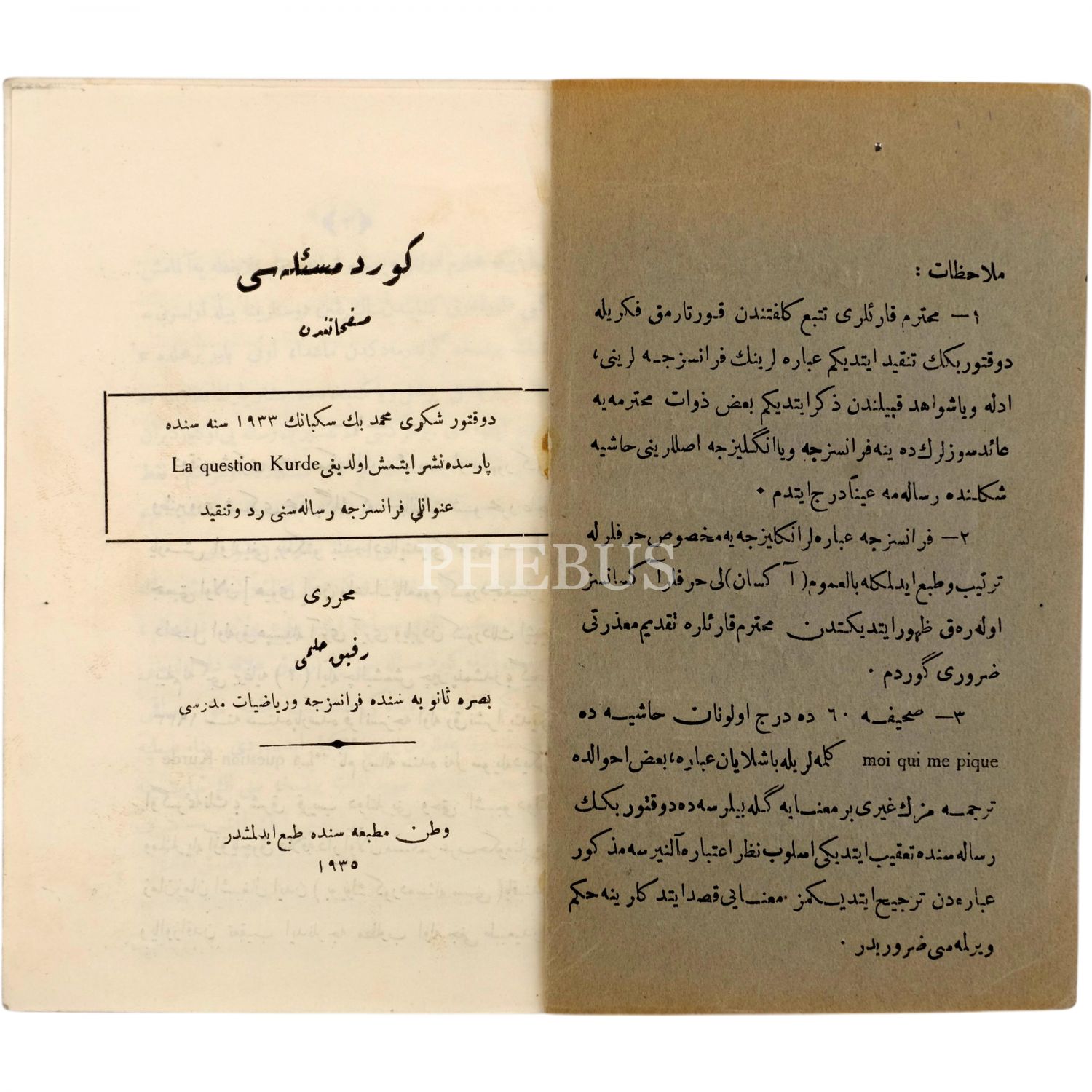 2. KÜRT MESELESİ, Refik Hilmi, 1935, Vatan Matbaası, 102 sayfa, 13x19 cm...