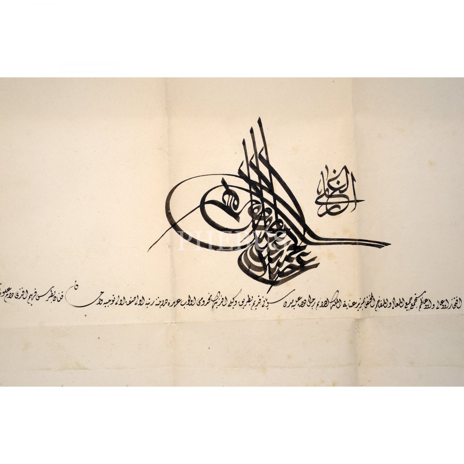Süryani-i Kadim Patrik Vekili´nin oğlu Petros Fehim Efendi´nin, Osmanlı´da bir mülkiye rütbesi olan rütbe-i ulâ sınıf-ı ulâ rütbesine tevcih edildiğine dair el çekme Sultan İkinci Abdülhamid tuğralı beratı, 1907, 57x82 cm...