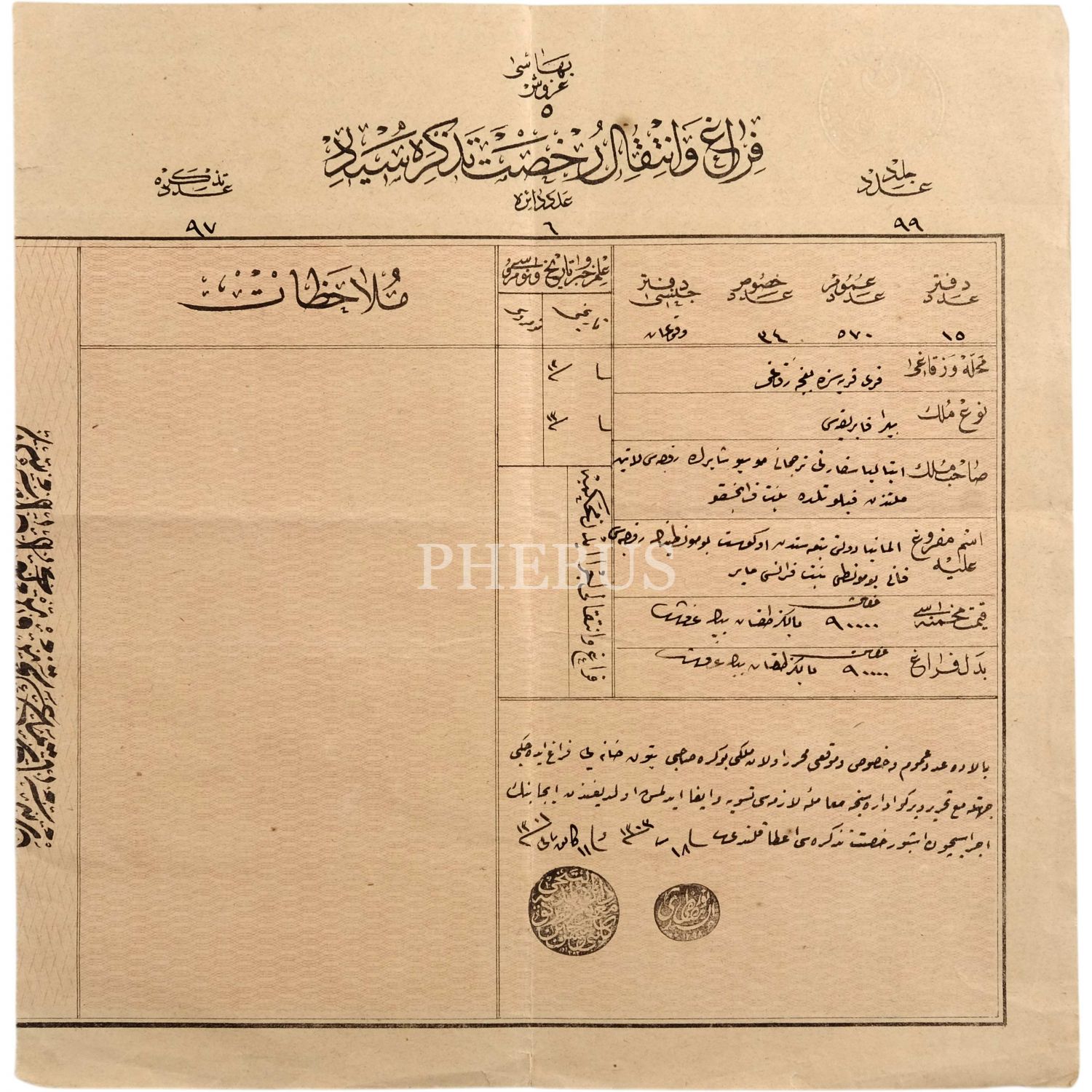 İtalya Sefareti Tercümanı Şayer´in eşi tarafından Bomonti Ailesi´ne satılan Feriköy´deki bira fabrikasının tapusu, 23 Ocak 1886, 25x26 cm...