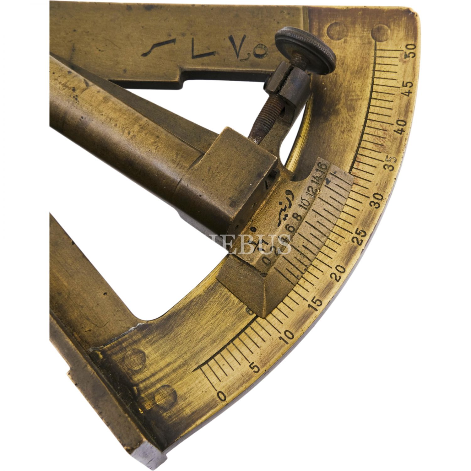 Osmanlı Donanması´nda enlem ve boylamı tespit etmek amacıyla kullanılan, pirinçten mamul sekstant, 12x12 cm...
