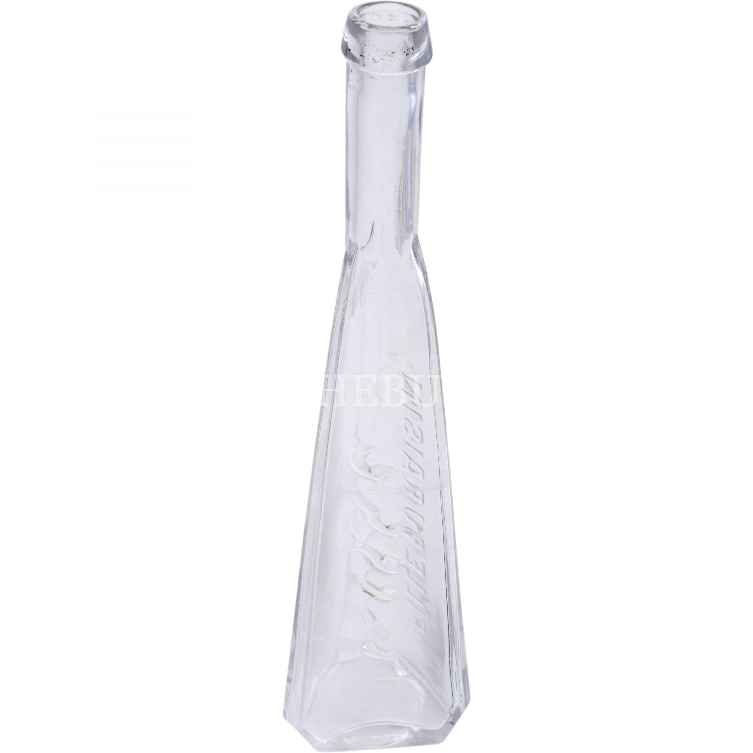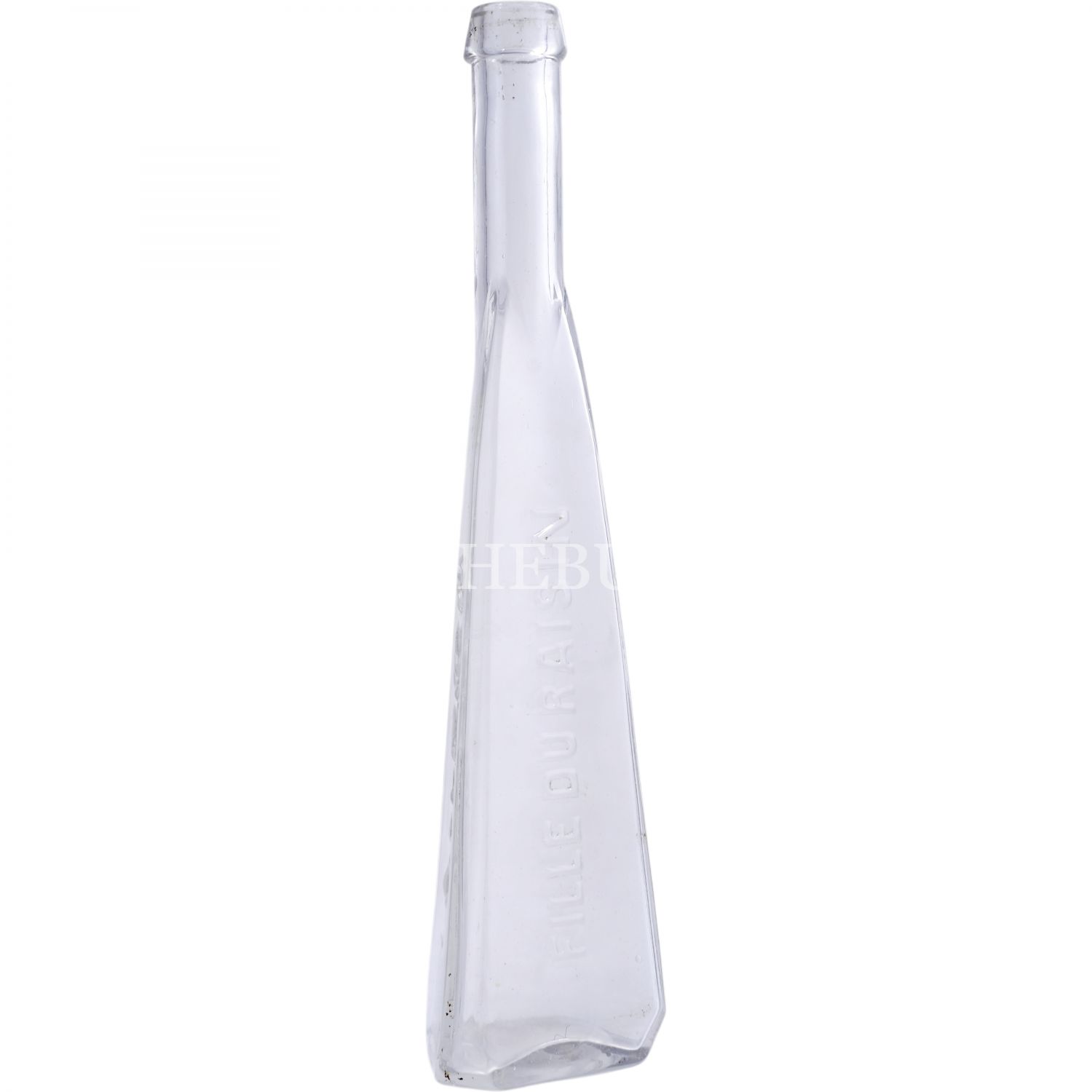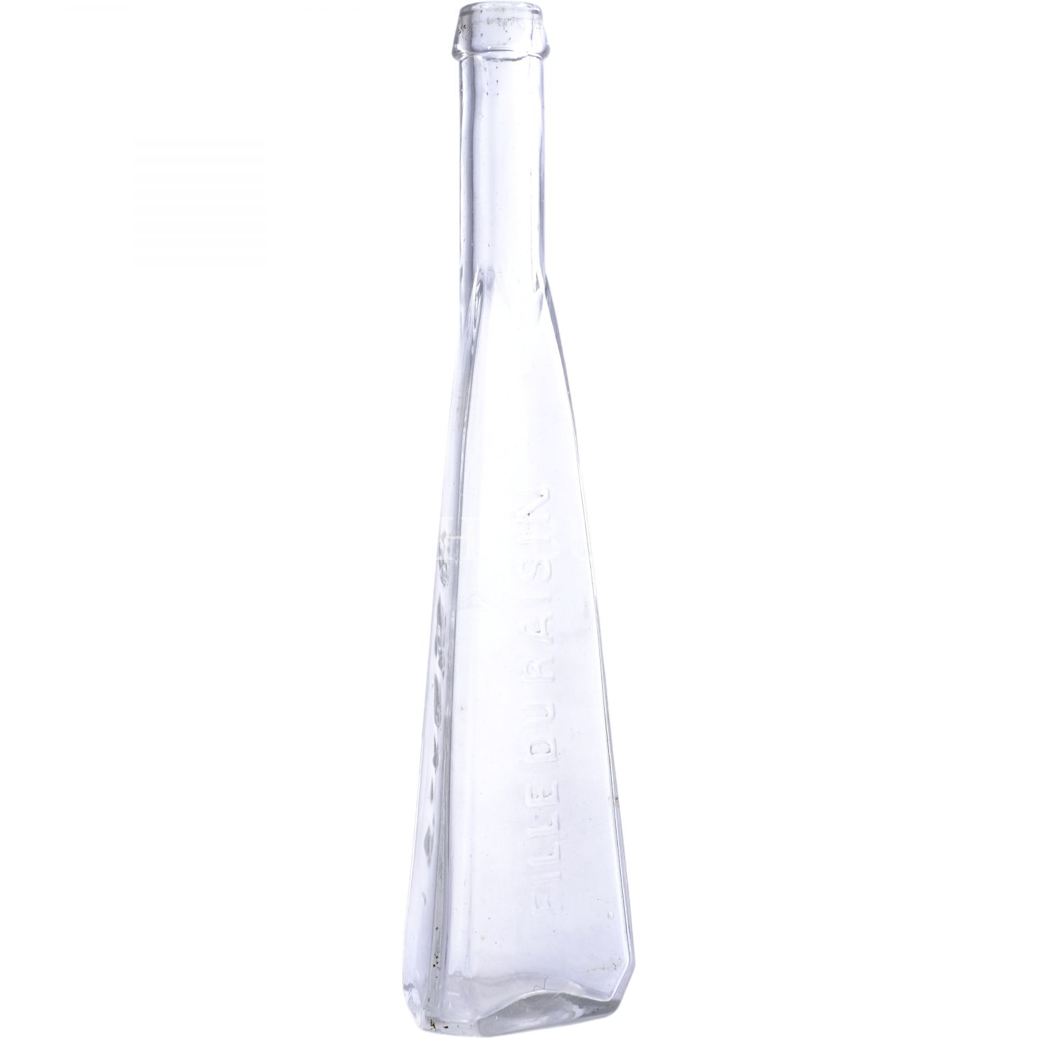 Osmanlı Devleti´nin son dönemlerinde üretilmeye başlanan "Üzüm Kızı" (Fille Du Raisin) rakısının Osmanlıca ve Fransızca kabartma yazılı cam şişesi, 26x6x6 cm...