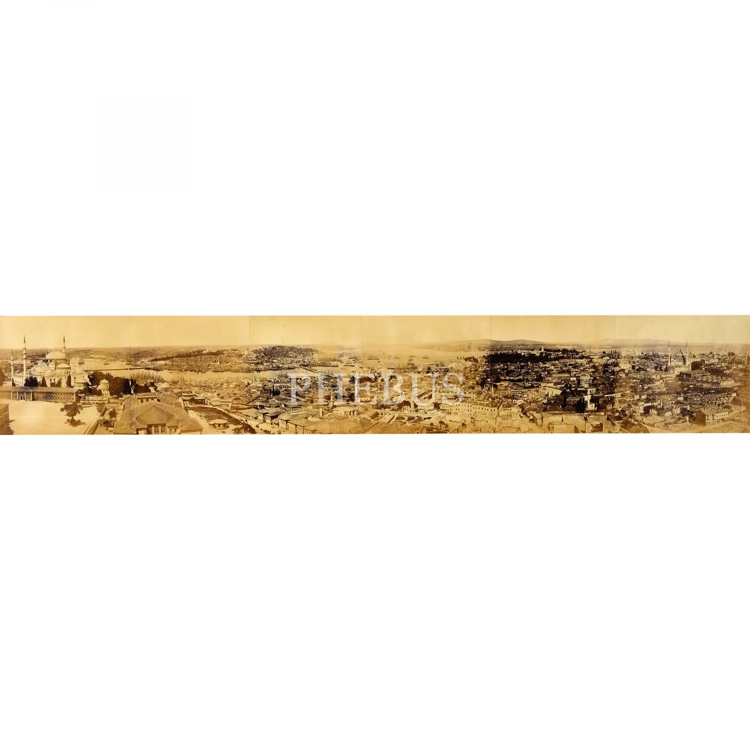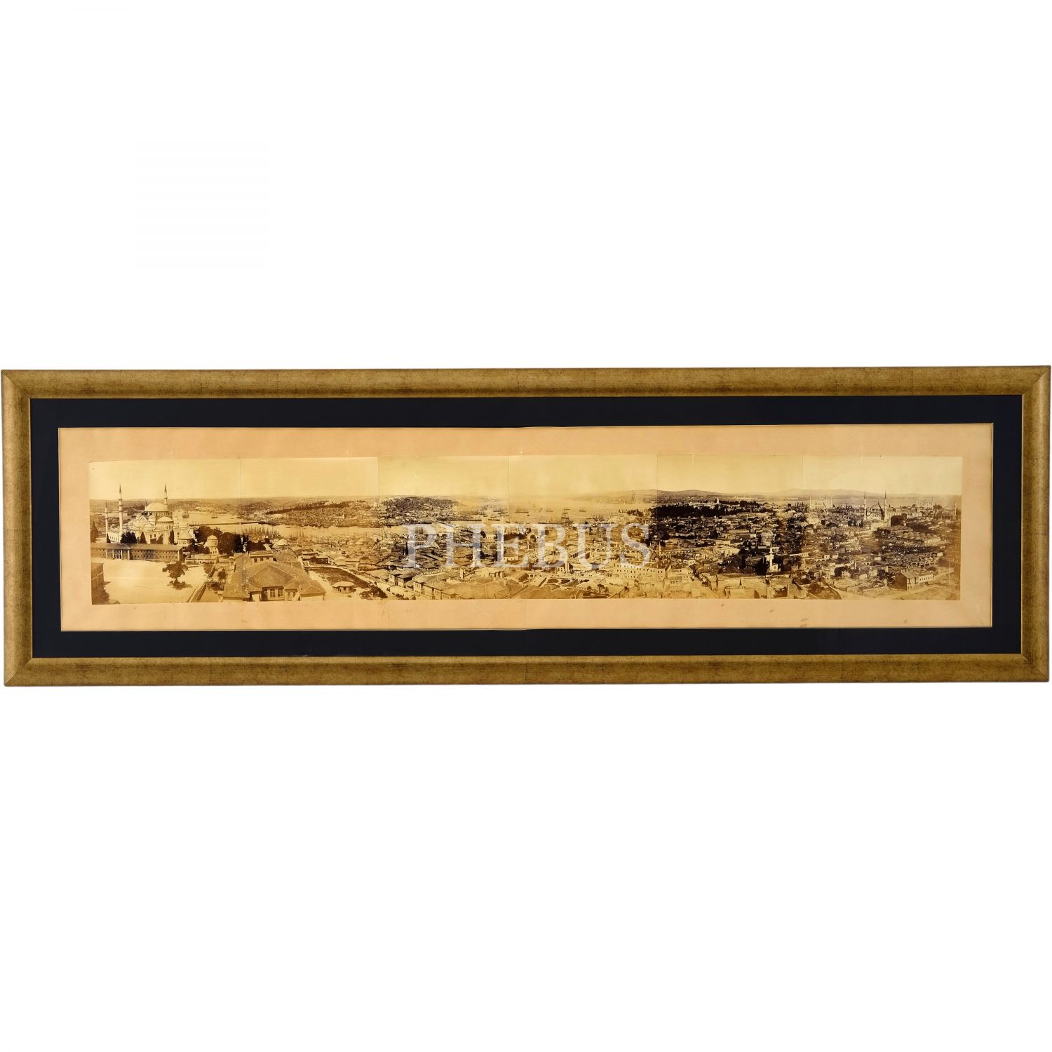 Beyazıt Yangın Kulesi´nden alınmış, albümin baskı altı parça fotoğraftan oluşan İstanbul panoraması, panorama 142x24 cm, çerçeve 170x53 cm...