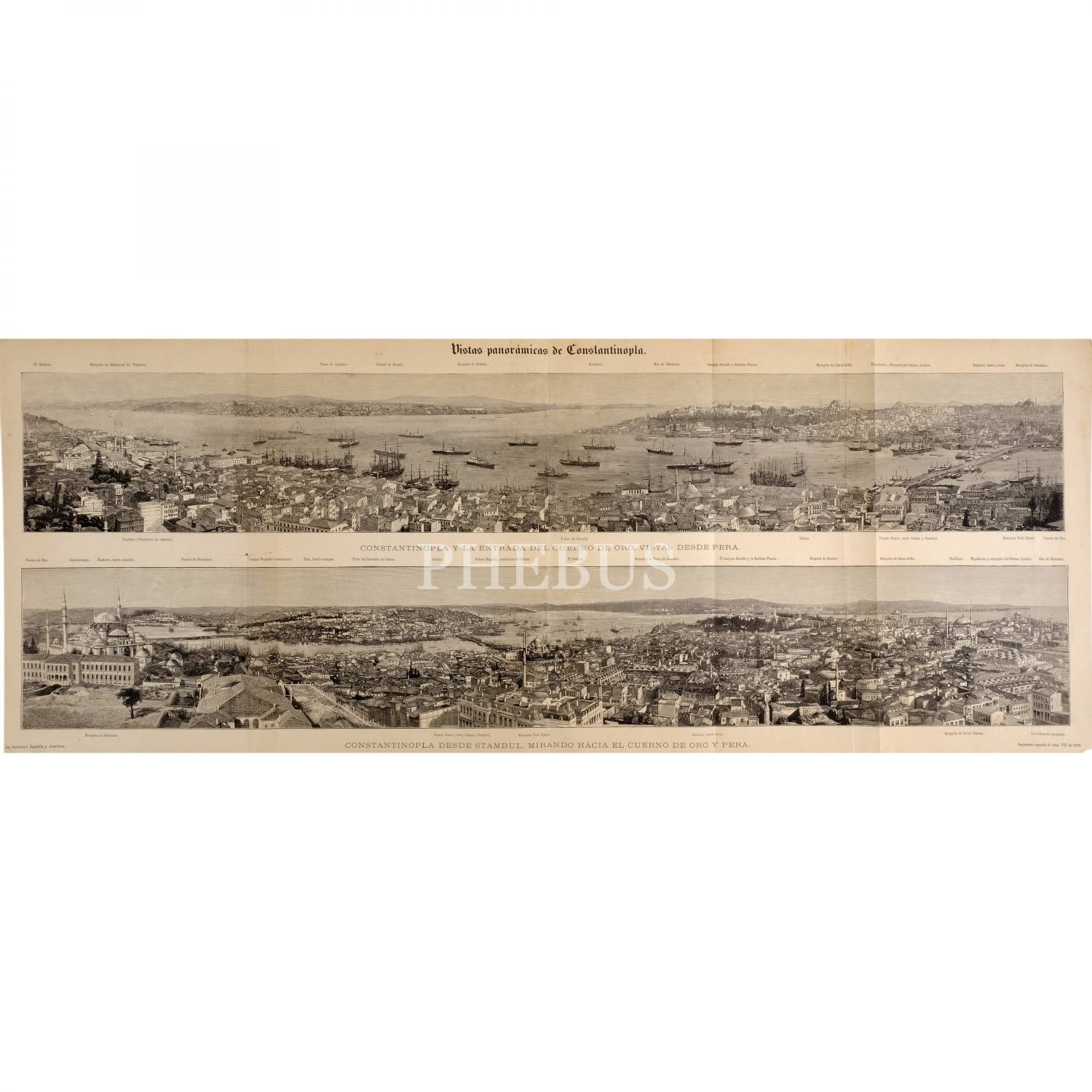 Galata Kulesi ve Beyazıt Yangın Kulesi üzerinden İstanbul´un panoramik manzaralarının yer aldığı gravür, 104x41 cm...