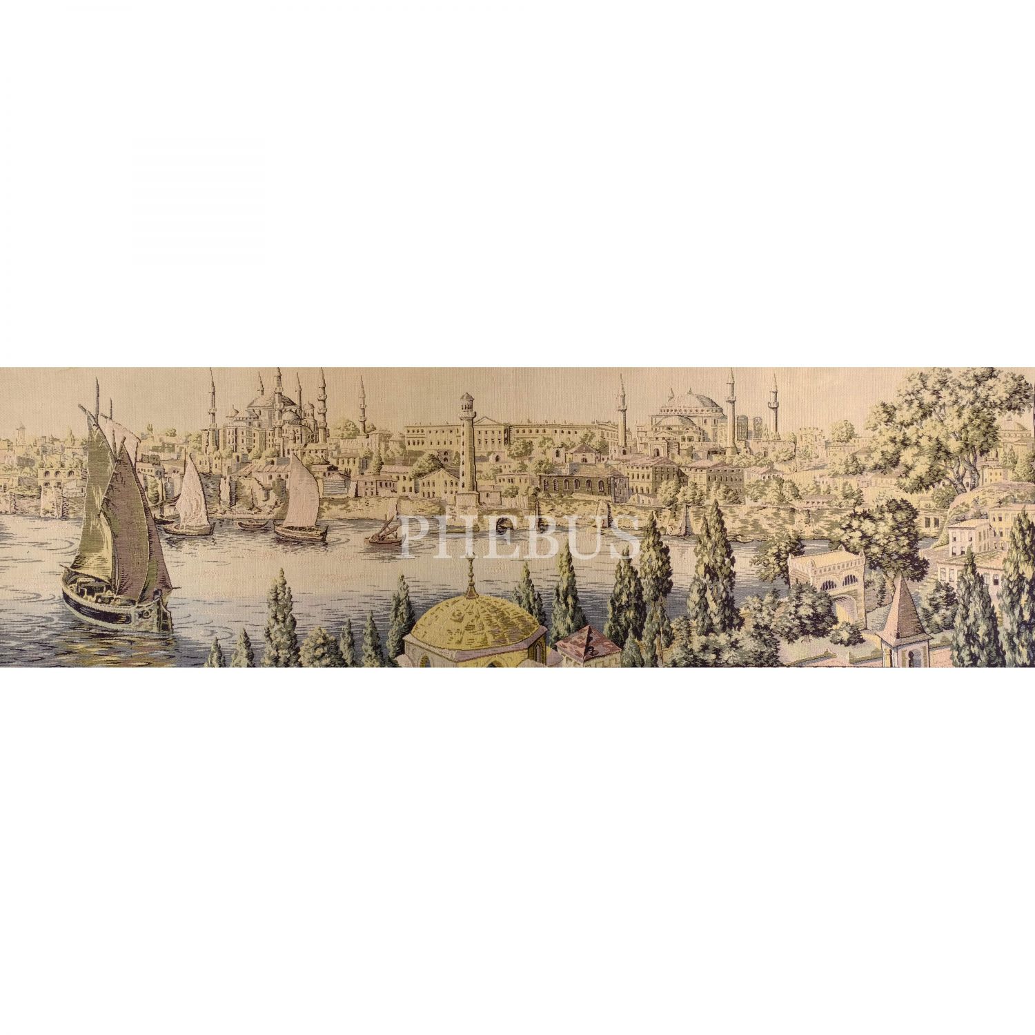 19. yüzyıl başlarından, panoramik İstanbul (Constantinople), Sarayburnu tasvirli goblen halı, 138x46 cm...