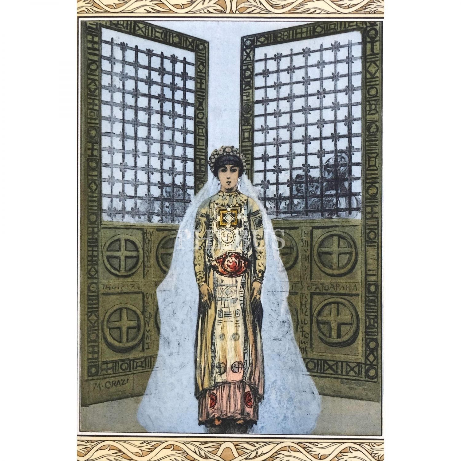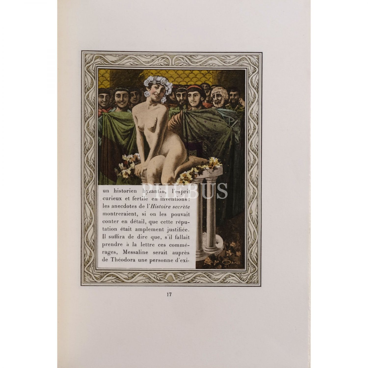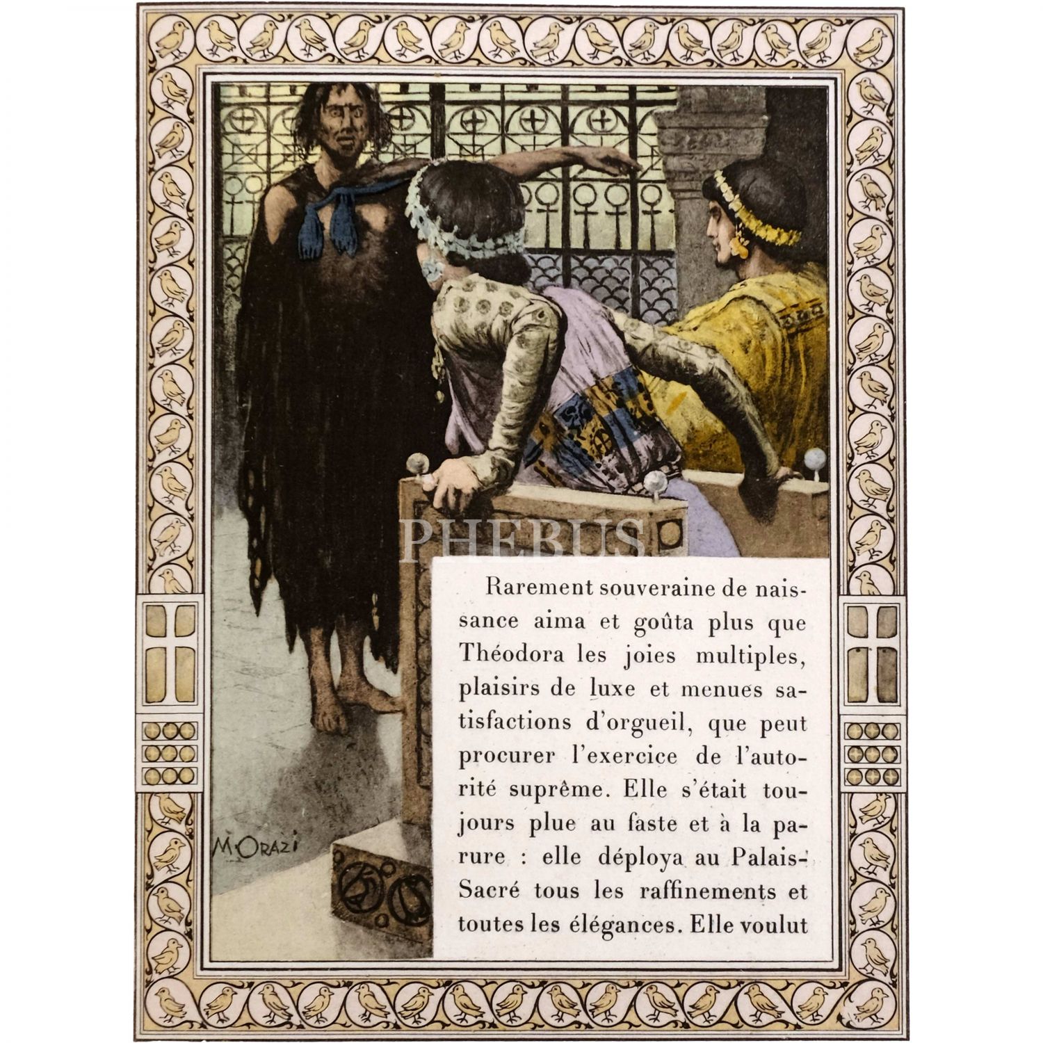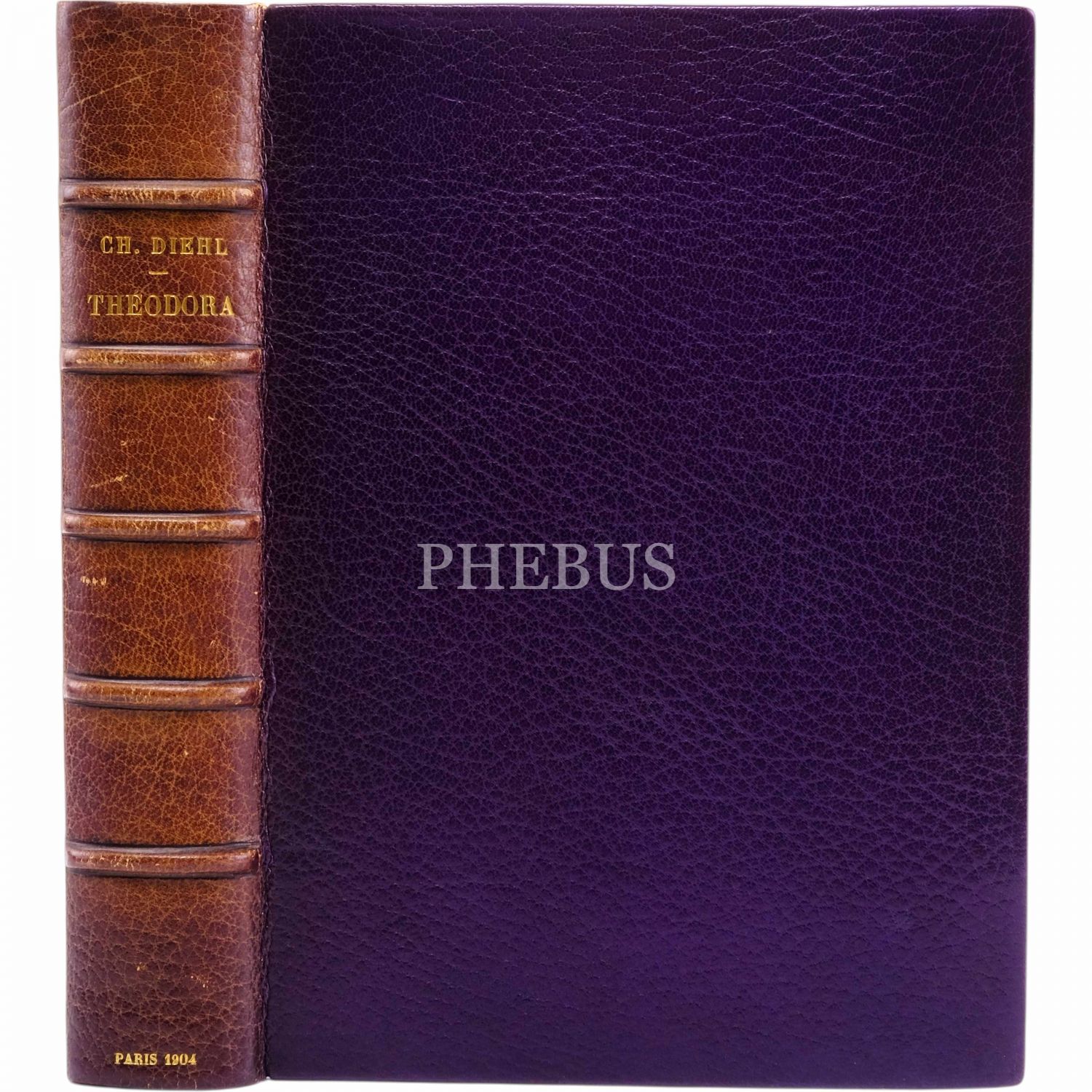 Bizans sanatı ve tarihi üzerine çok sayıda çalışmaya imza atan Fransız tarihçi ve Bizantolog Charles Diehl´ın (1859-1944), Bizans İmparatoru I. Justinianus´un, Bizans tarihinin en ilginç figürlerinden biri olan eşi Theodora üzerine kaleme aldığı eserinin, sınırlı sayıda basılmış özel nüshası... Tarihi, sanatsal ve koleksiyon değerleri açısından önemli bir edisyon olan kitapta, Manuel Orazi imzalı çok sayıda gözalıcı renkli resim yer almaktadır. Blanchet Kardeşler ve Kleber tarafından el yapımı, yüksek kaliteli velim kâğıda basılmış ve 41´den 300´e kadar numaralandırılmış 260 kopyanın 268 numaralı nüshası... Sırtı panelli ve altın yaldız başlıklı, iç kapakları altın yaldız tezyinatlı ve mor kadife kaplı, giriş ve bitiş sayfaları ebru desenli deri cildinde. Ebru desenli özel kutusuyla birlikte.