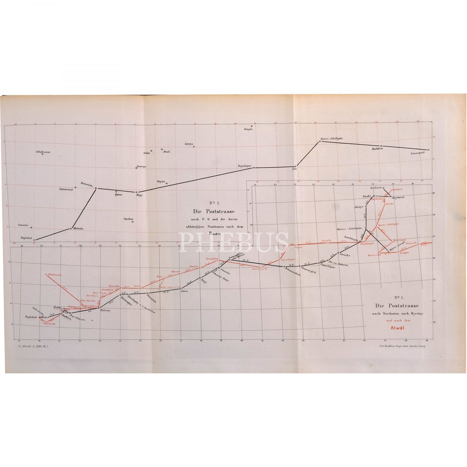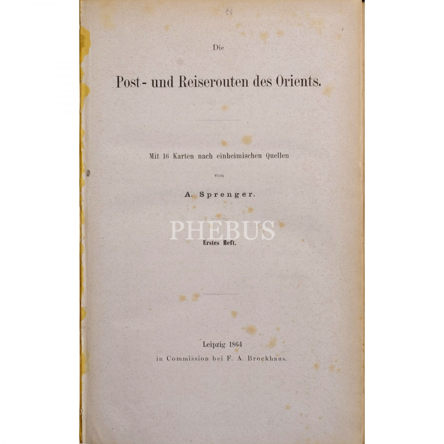 Avusturyalı/Alman doğubilimci ve İslam araştırmacısı Aloys (Alois) Sprenger´in (1813–1893), Orta Doğu’nun tarihi posta yolları, seyahat güzergâhları ve ulaşım ağları üzerine kaleme aldığı ve 16 adet katlanır harita ile desteklediği çalışması.