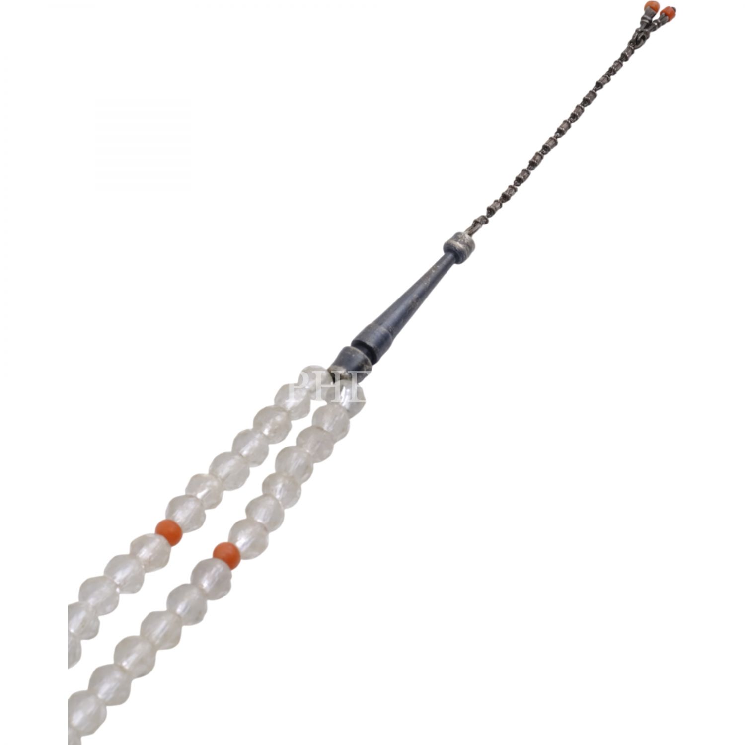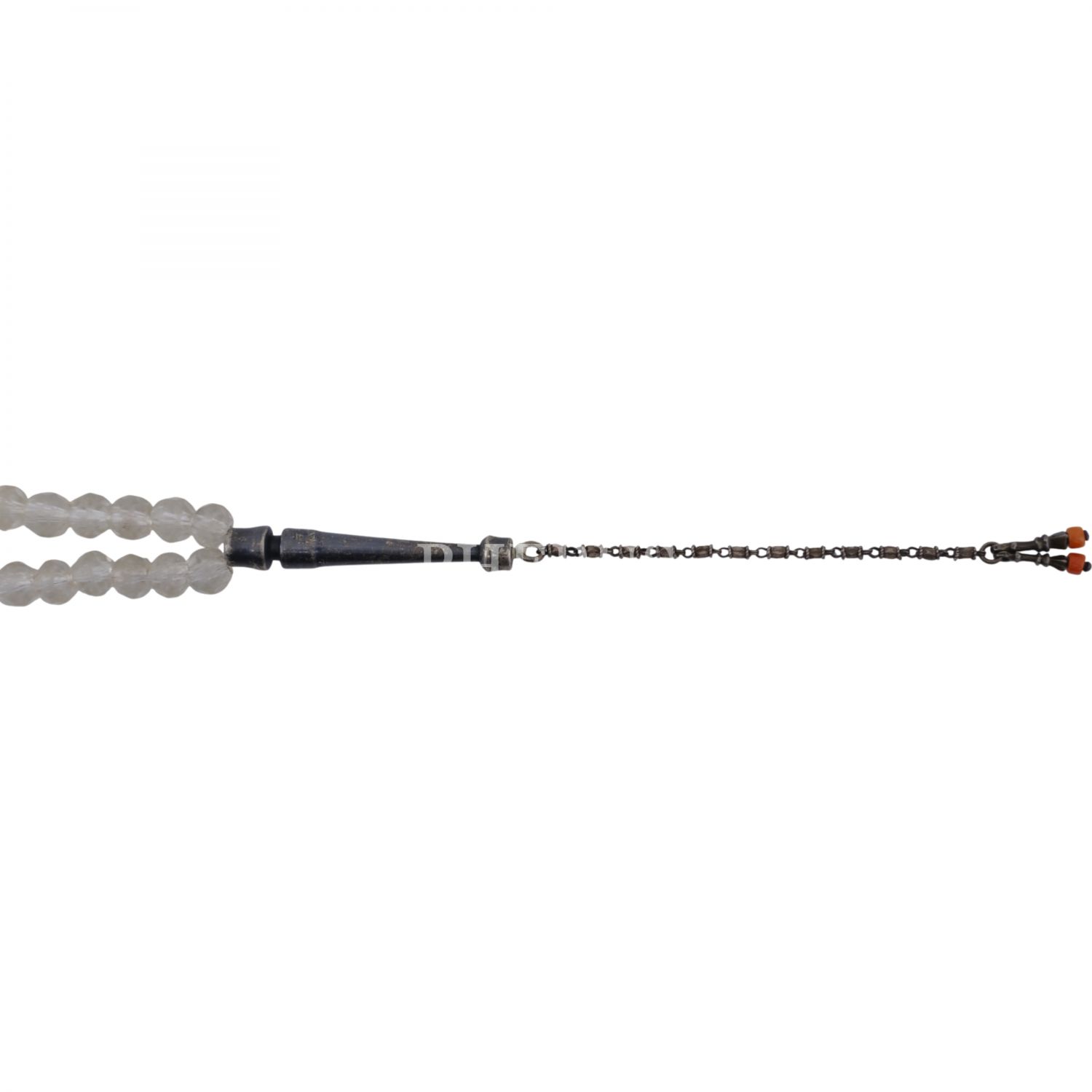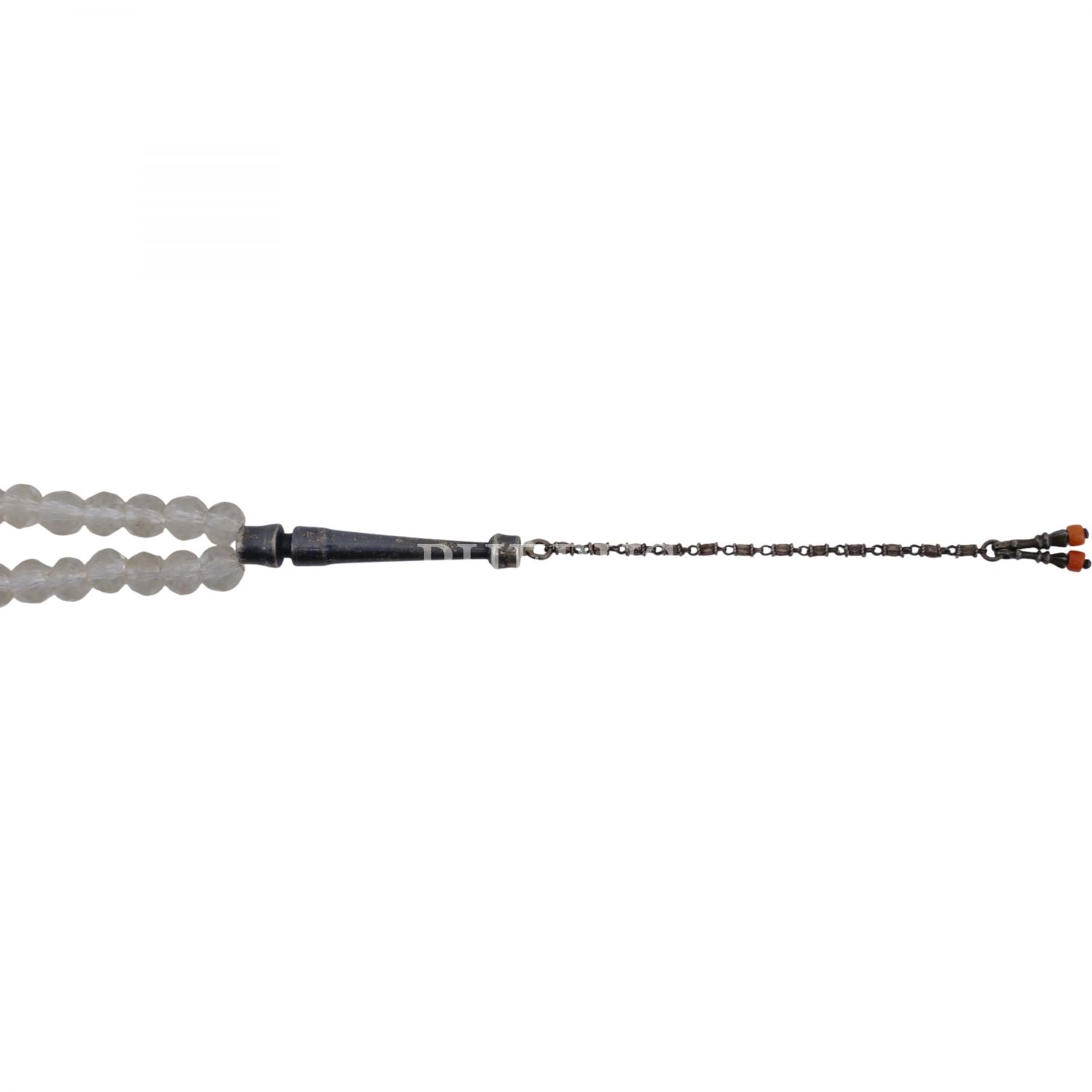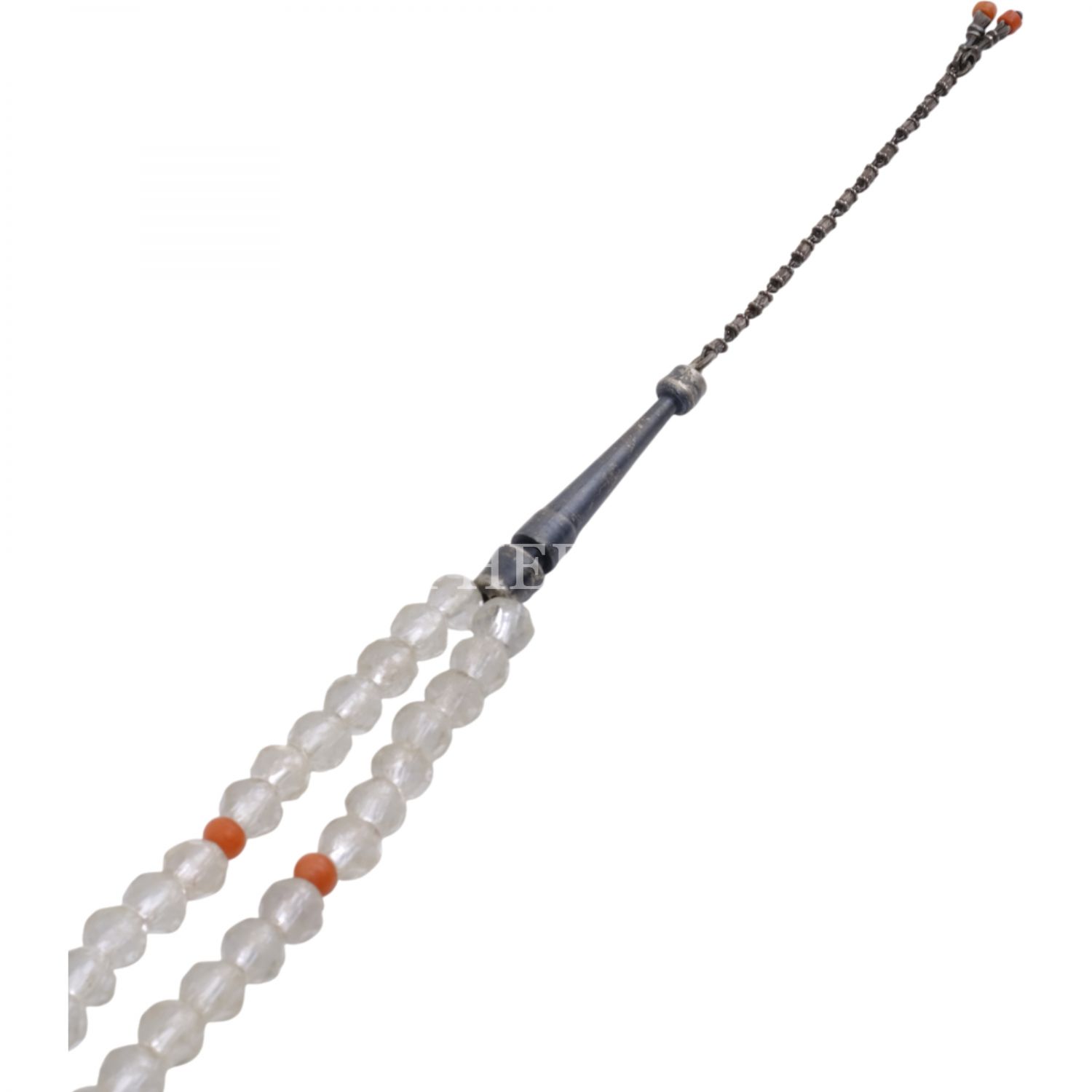 Osmanlı döneminden, fasetli necef tespih, imame ve durakları gümüşten mamul, Mevlevi tarzında yapılmış, mercanlarla süslenmiş...