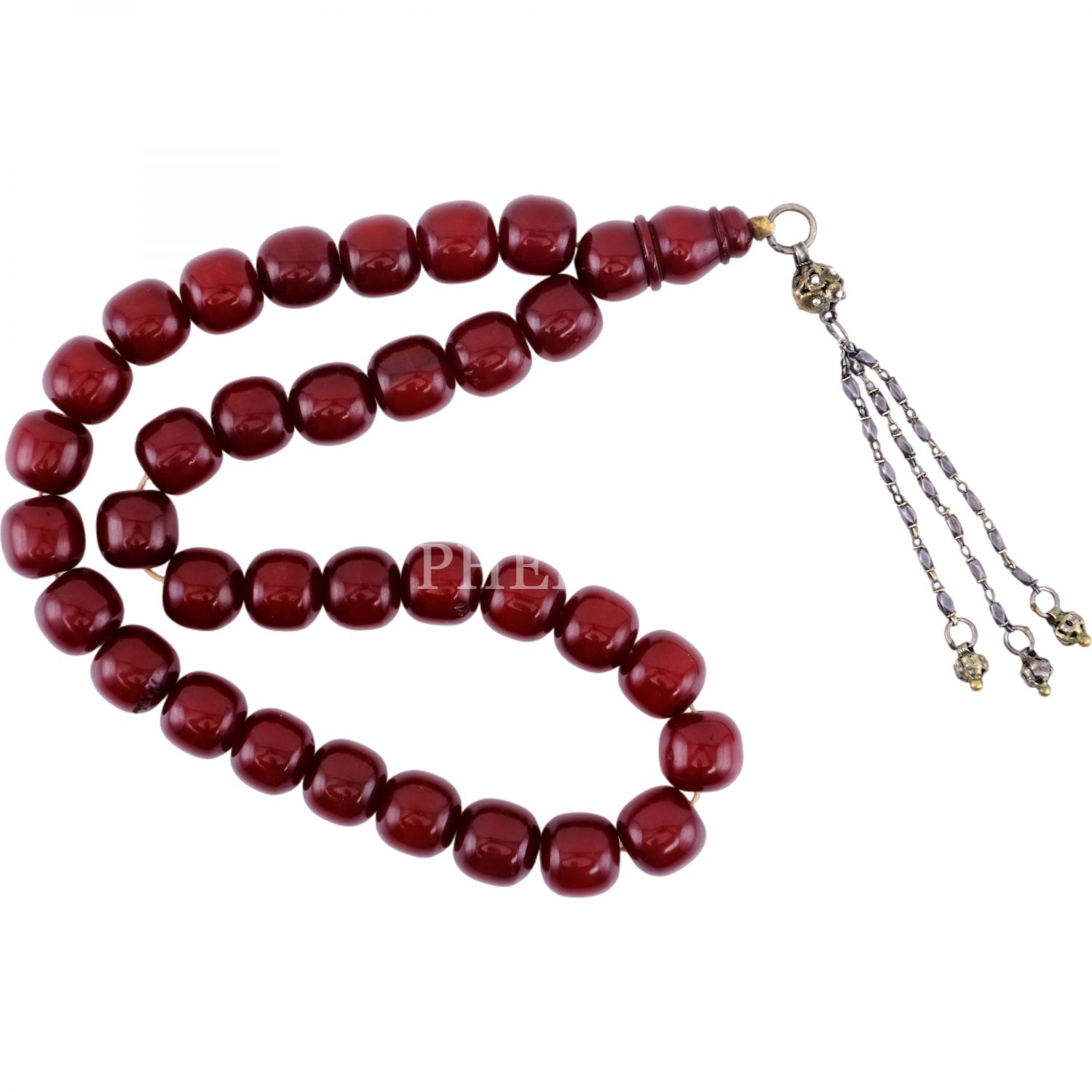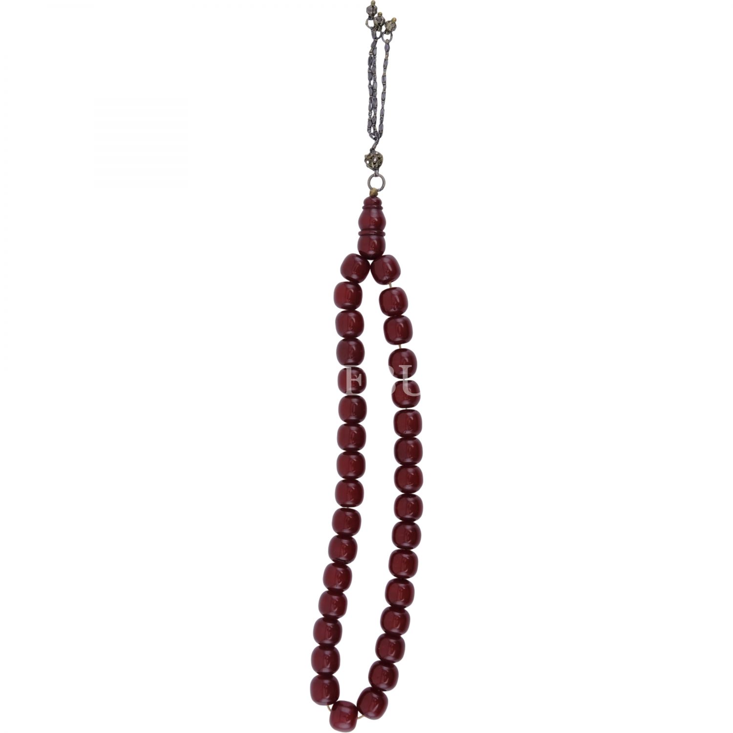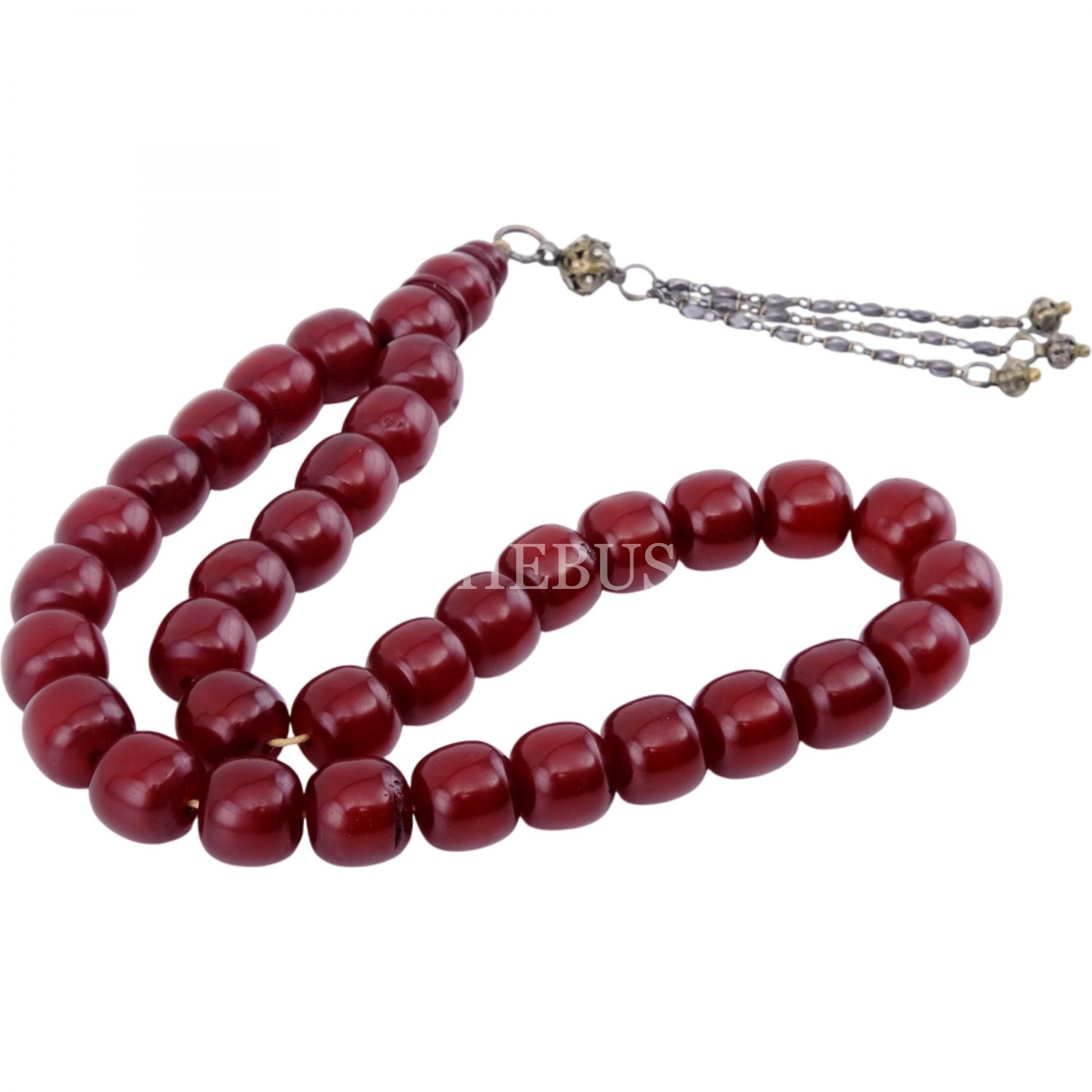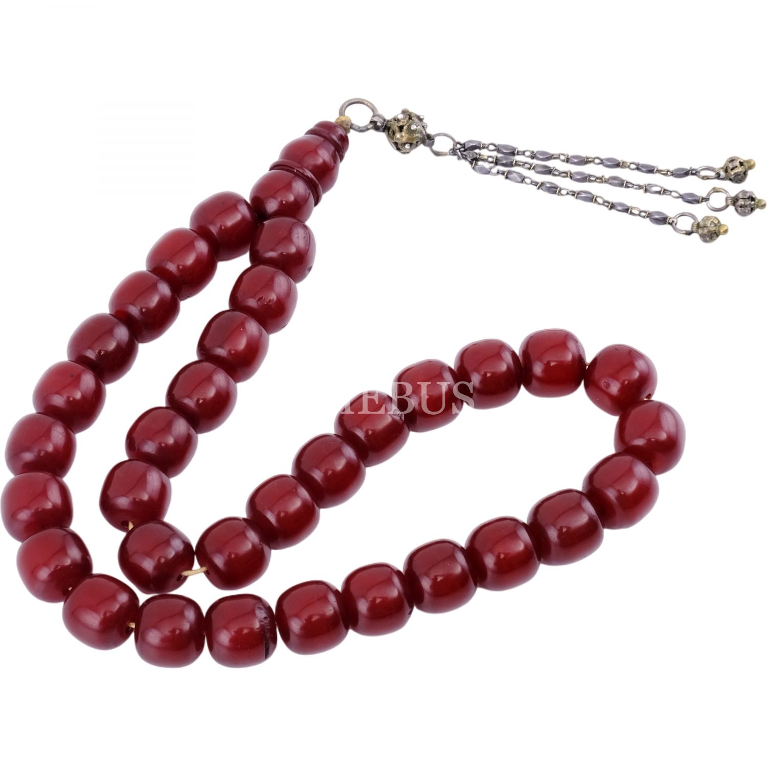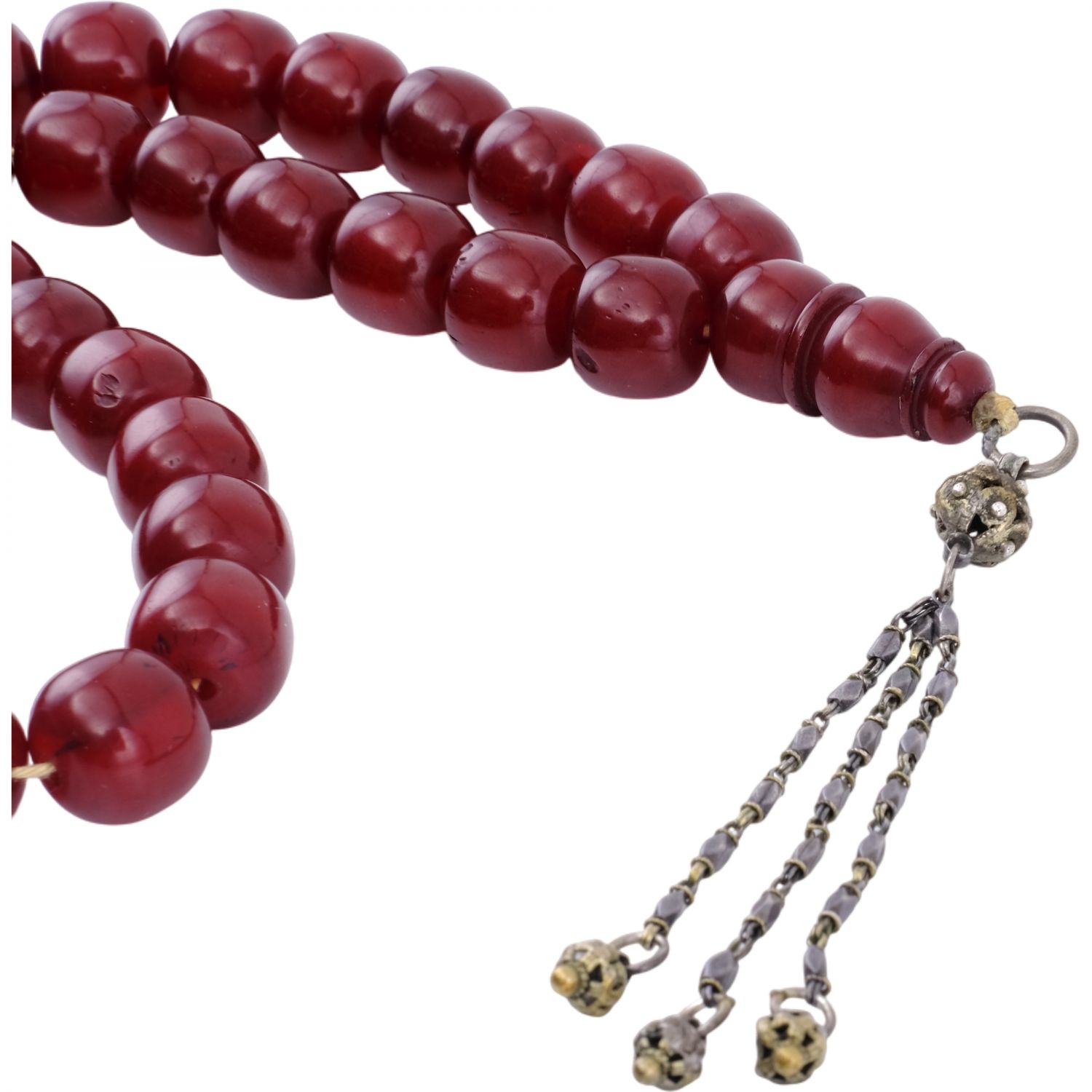 Osmanlı´nın son döneminde İstanbul ustaları tarafından yapılmış, helezon hareli sıkma kehribar tespih, dönem işçiliğiyle hazırlanmış gümüş püskülü yer yer altın vermeylidir...