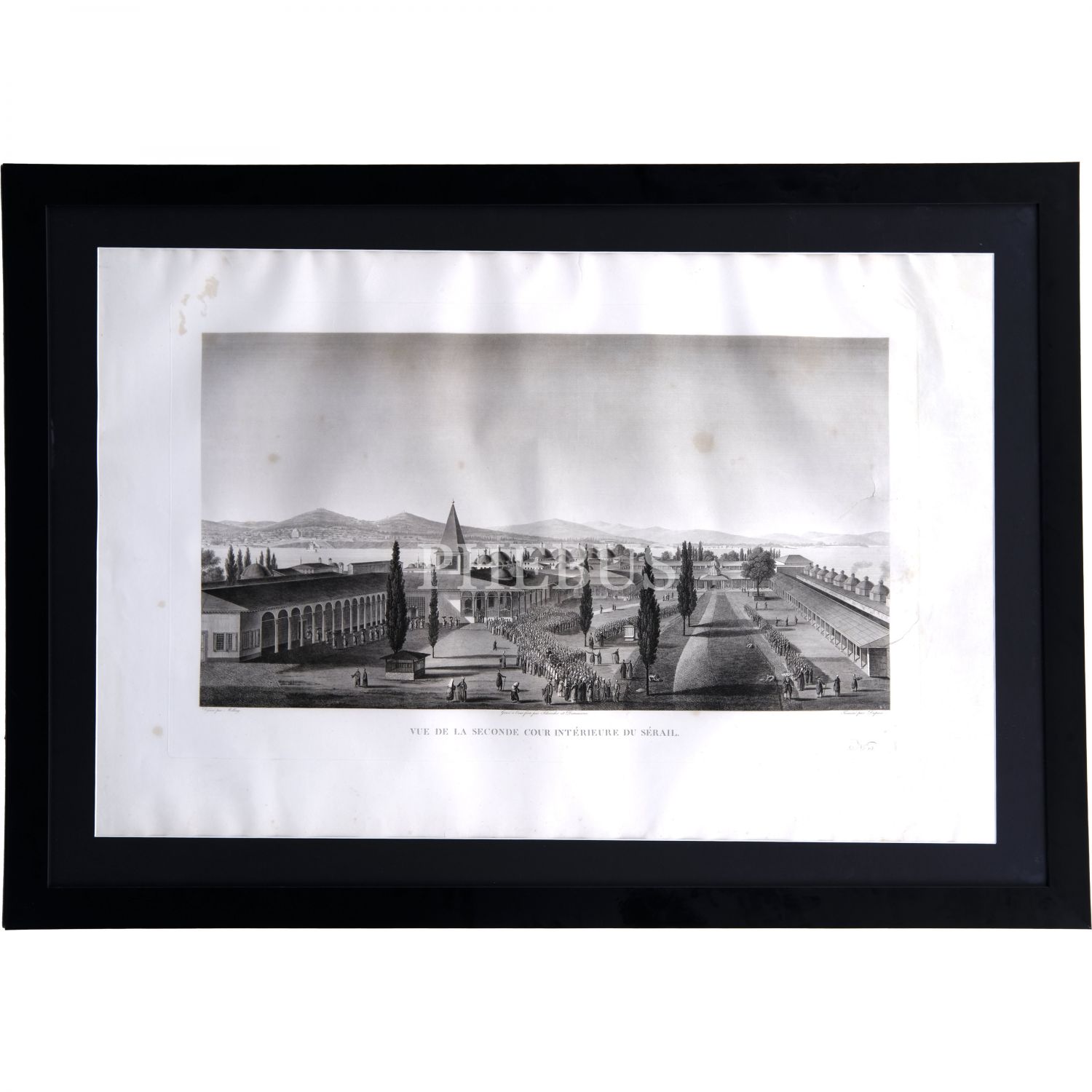 Antoine Ignace Melling gravürü: Topkapı Sarayı´nın ikinci iç avlusunun görünümü, "Vue de la Seconde Cour Intérieure du Sérail", gravür 101x65 cm, çerçeve 121x85 cm...
