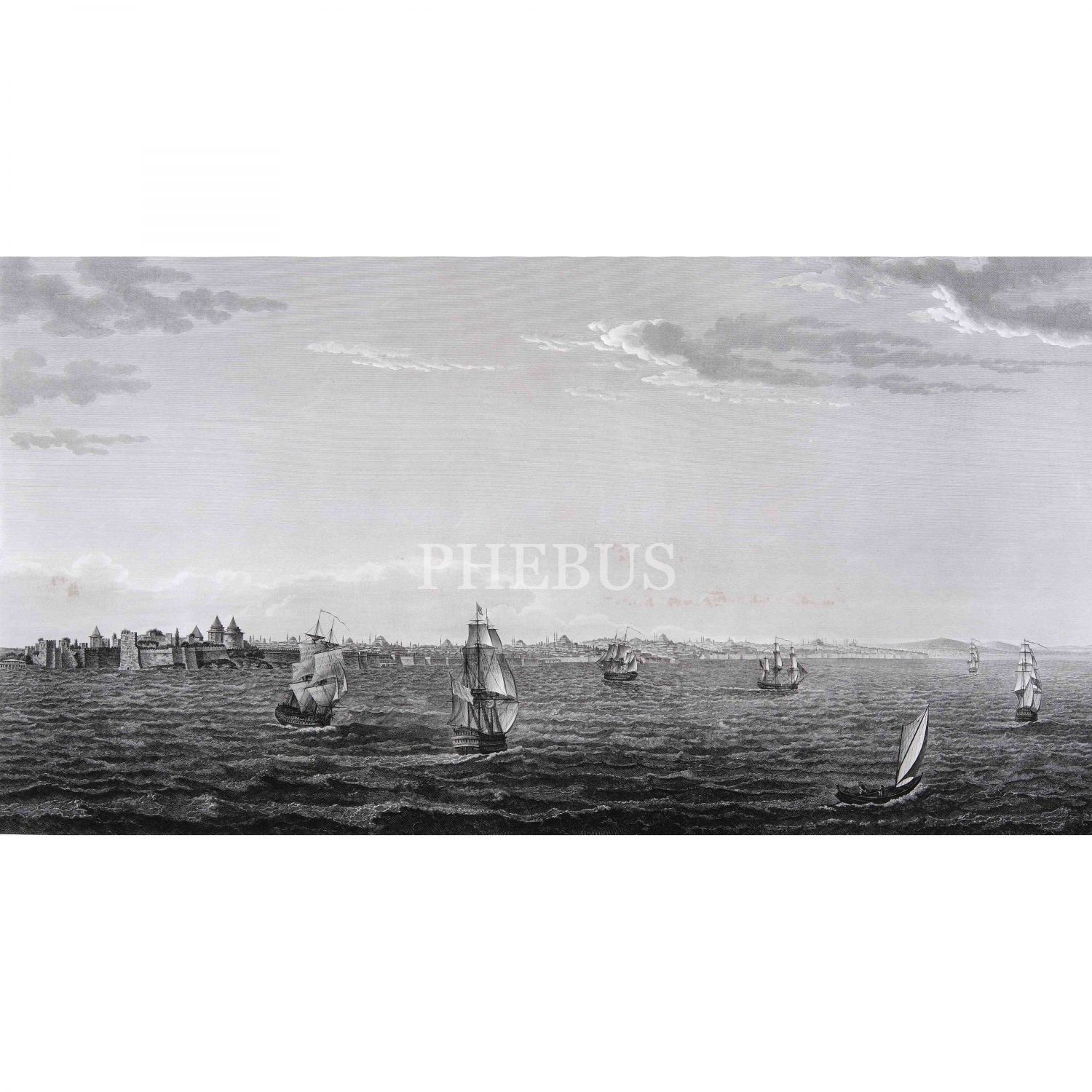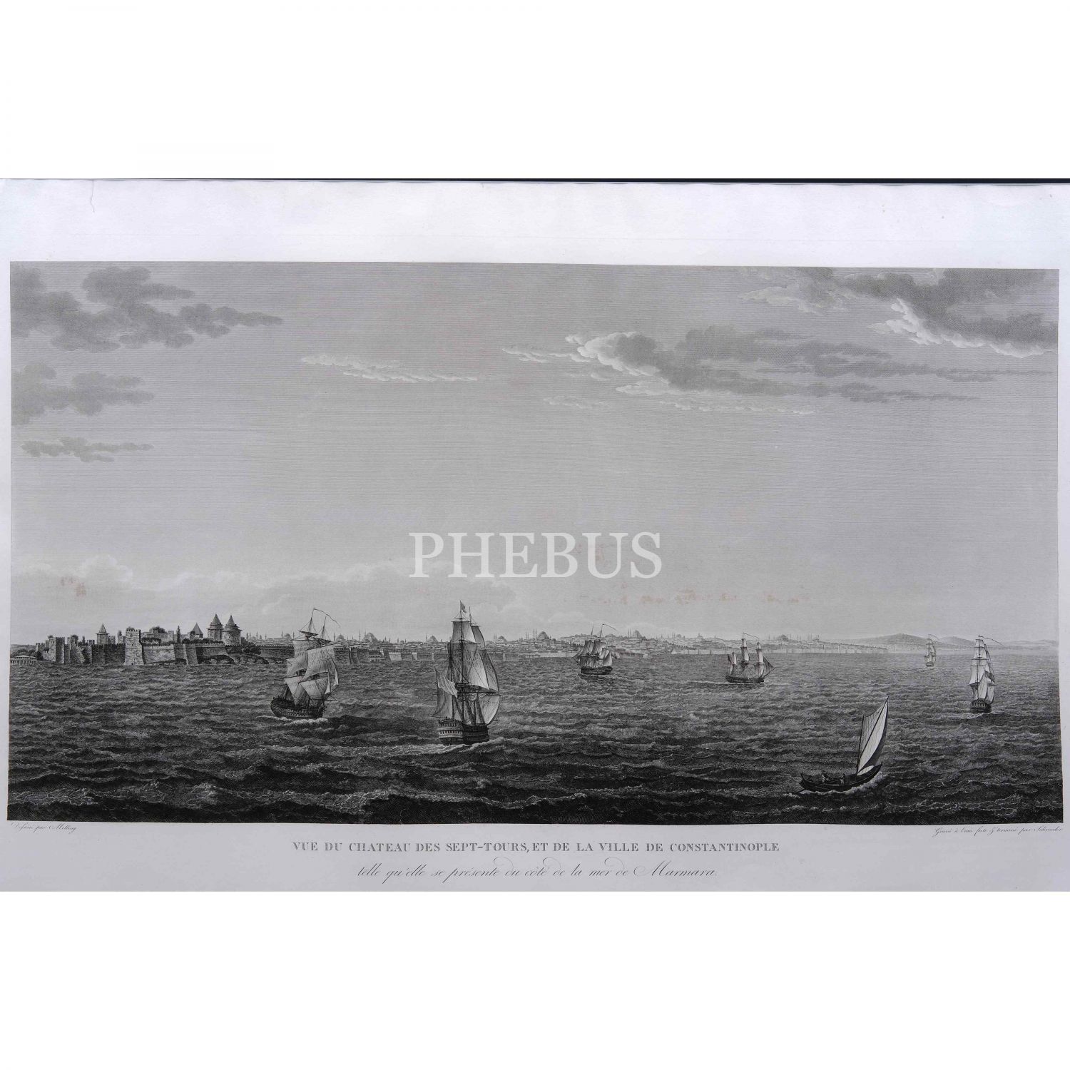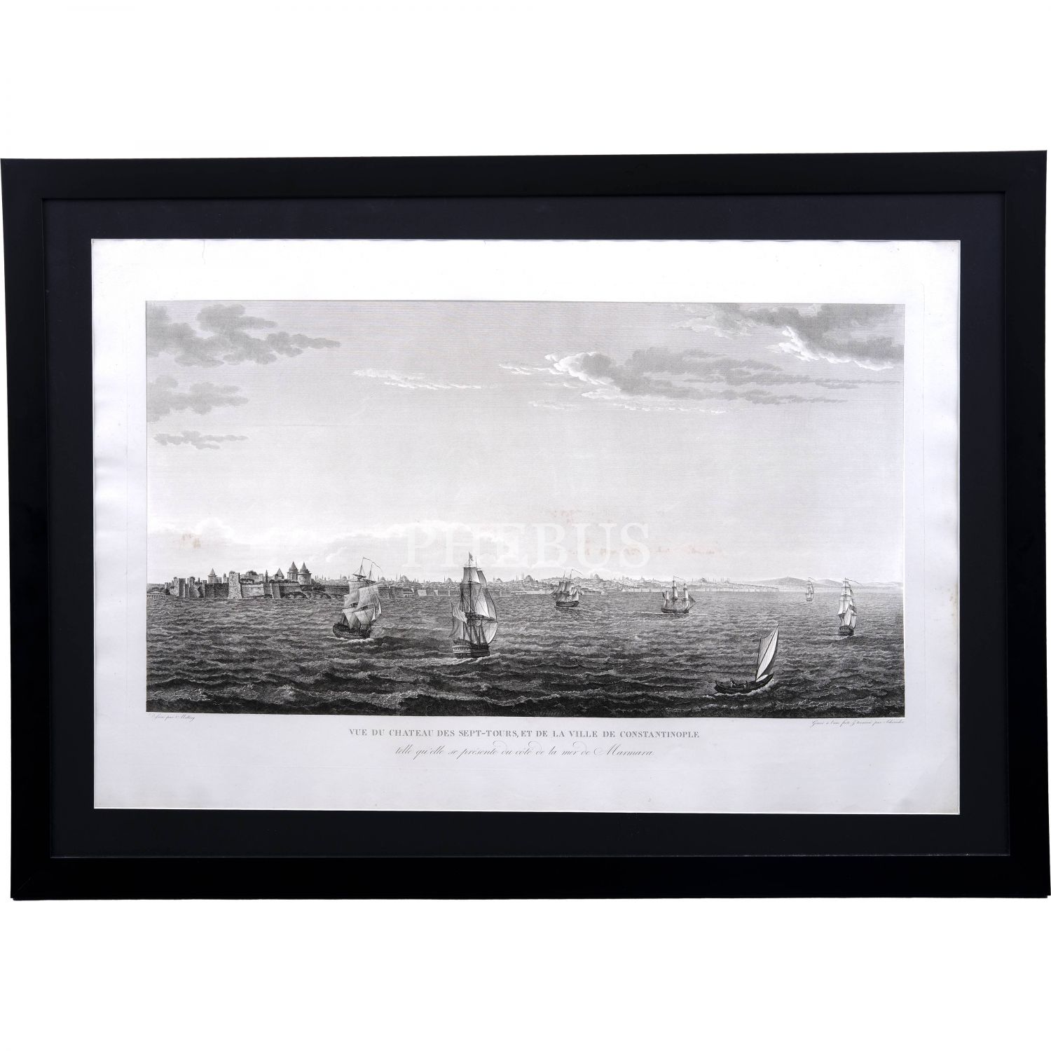 Antoine Ignace Melling gravürü: Marmara Denizi´nden Yedikule Zindanları´na ve Deniz Surlarıyla çevrili İstanbul´a bakış, "Vue du Chateau des Sept-Tours, et de la ville de Constantinople telle qu´elle se présente du côté de la mer de Marmar", gravür 94x65 cm, çerçeve 121x85 cm...
