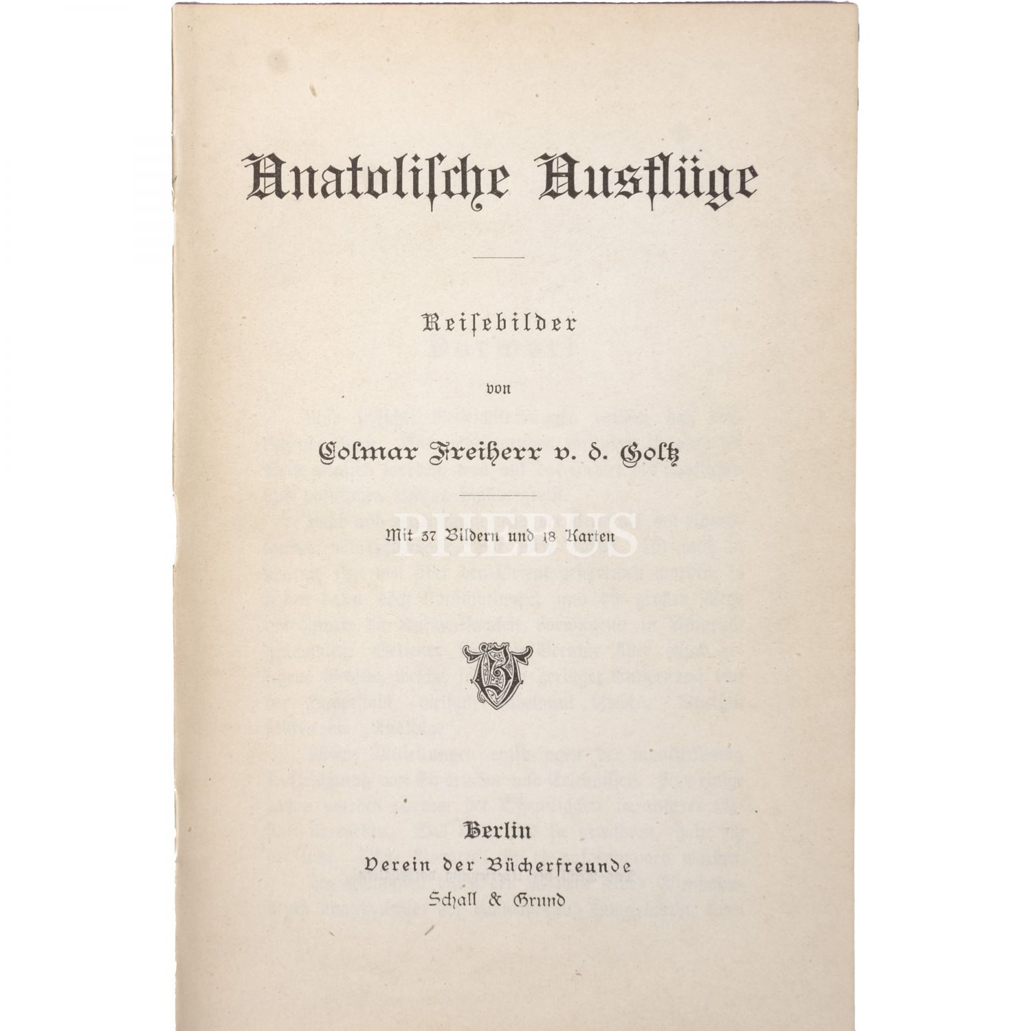 ANATOLISCHE AUSFLÜGE (Reisebilder), Colmar Freiherr von der Goltz, Verein der Bücherfreunde Schall & Grund, Berlin, 460 sayfa, 13x19 cm...